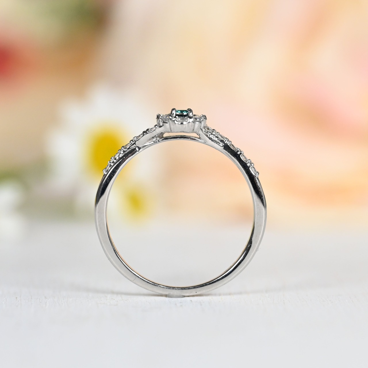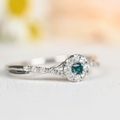 今や珍しい濃いめブルーグリーンがダイヤモンドの取り巻きの中心で存在感を放ちます✧