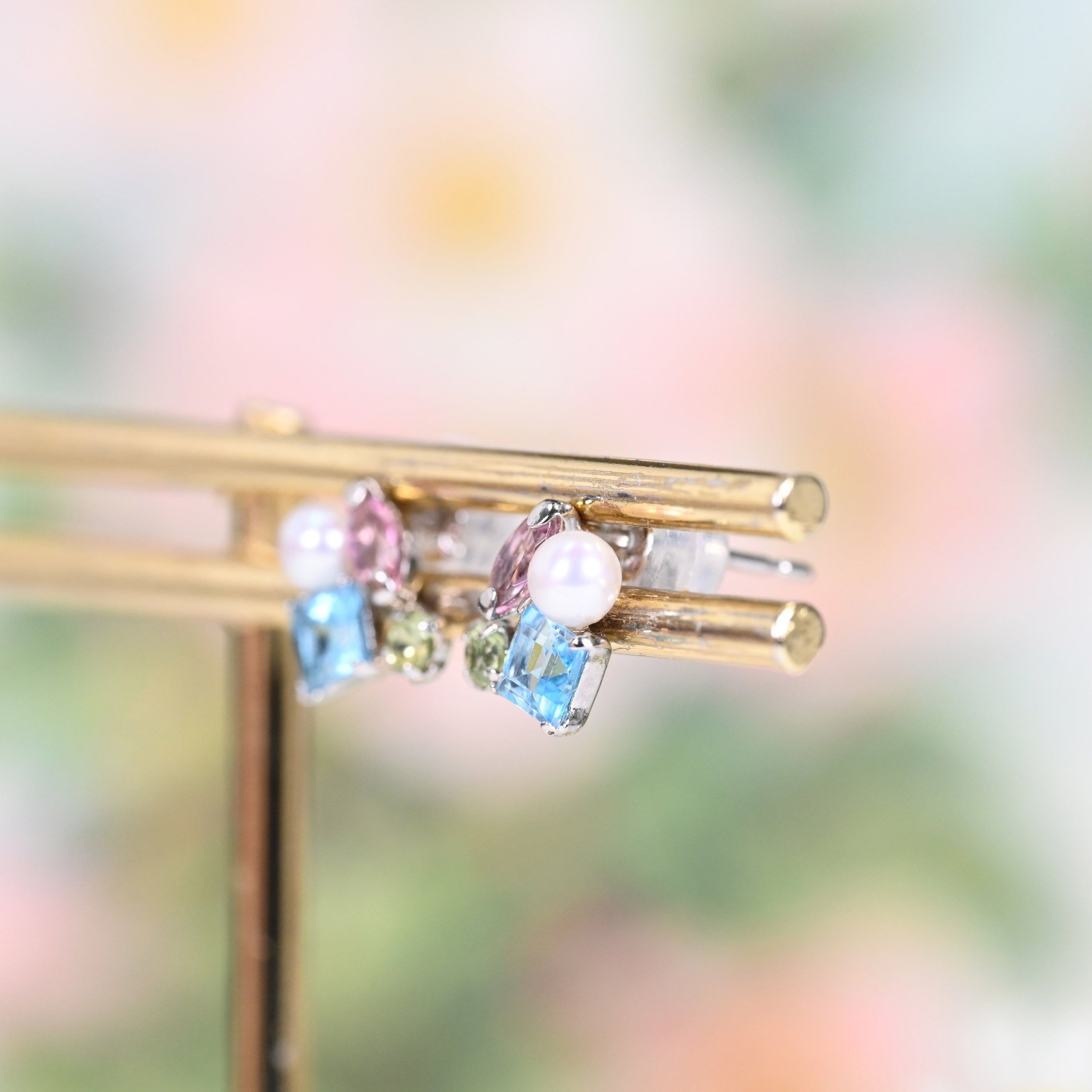 マルチストーンピアス(パステル・パール) Pt900(GH3171)
