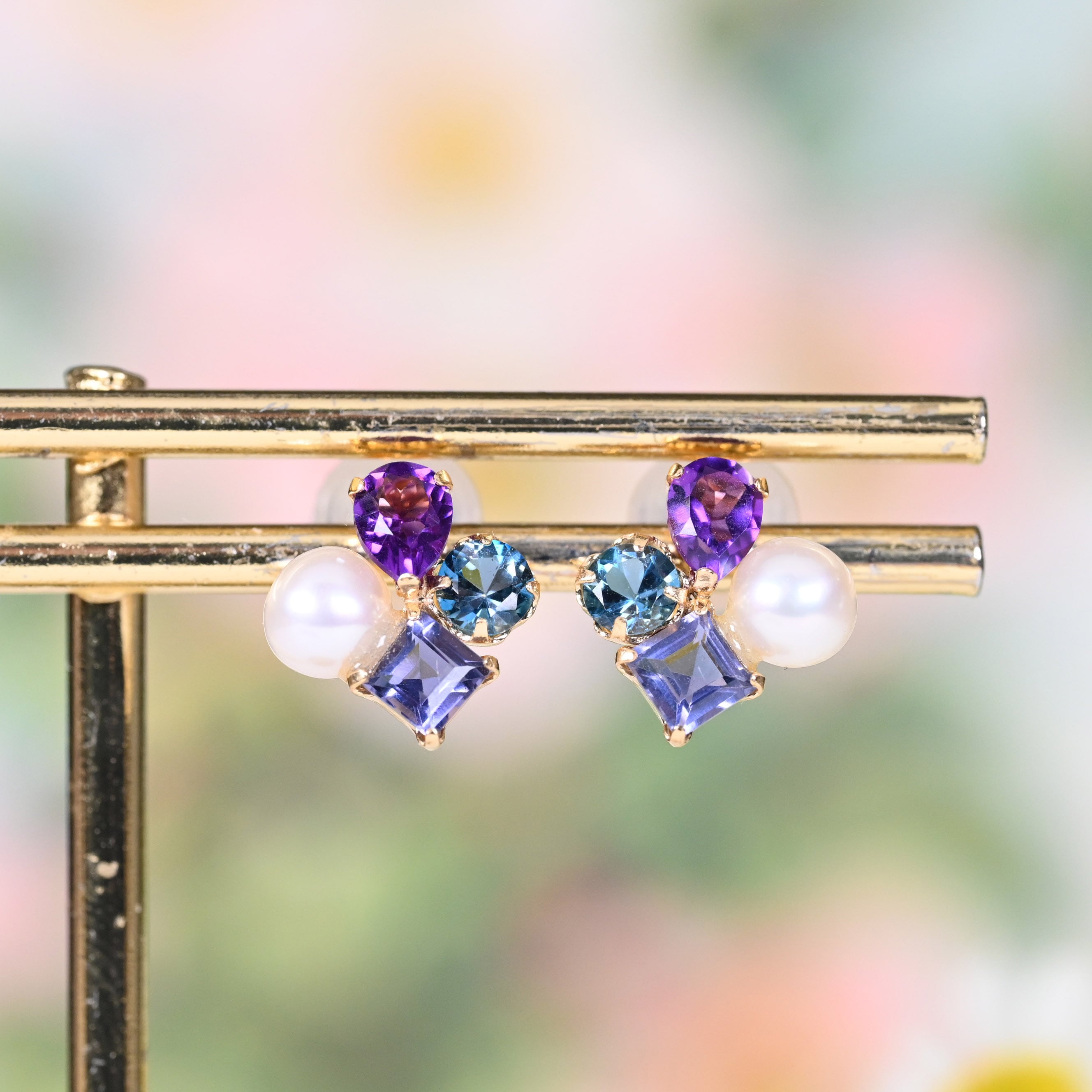 ♡♥マルチストーンピアス(シック・パール) K18YG(GH3187)♥♡