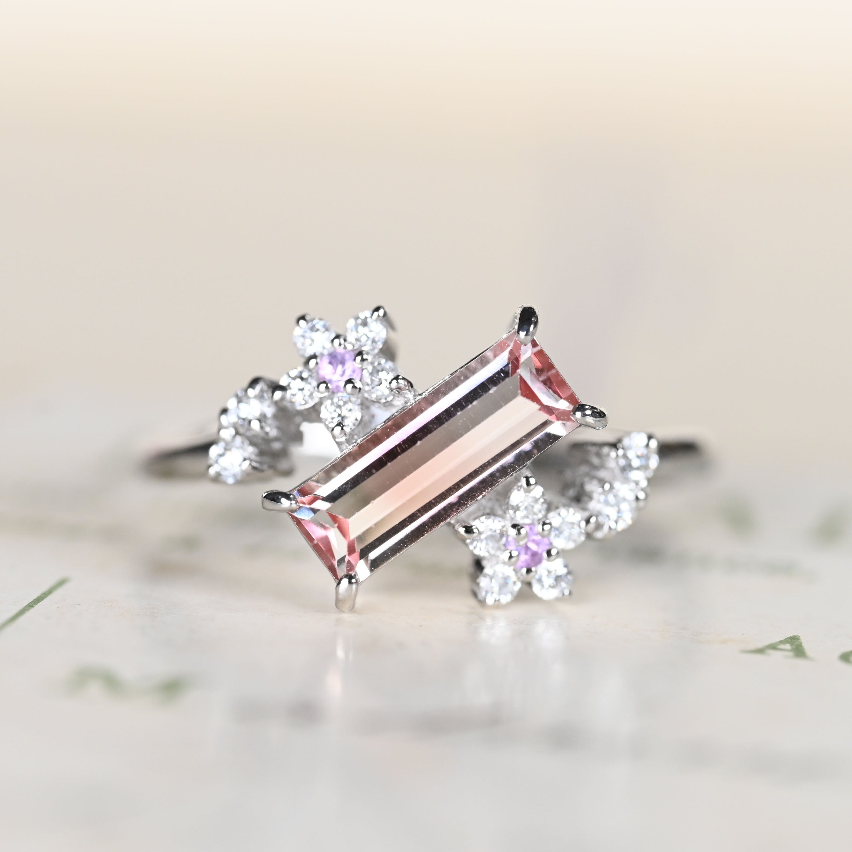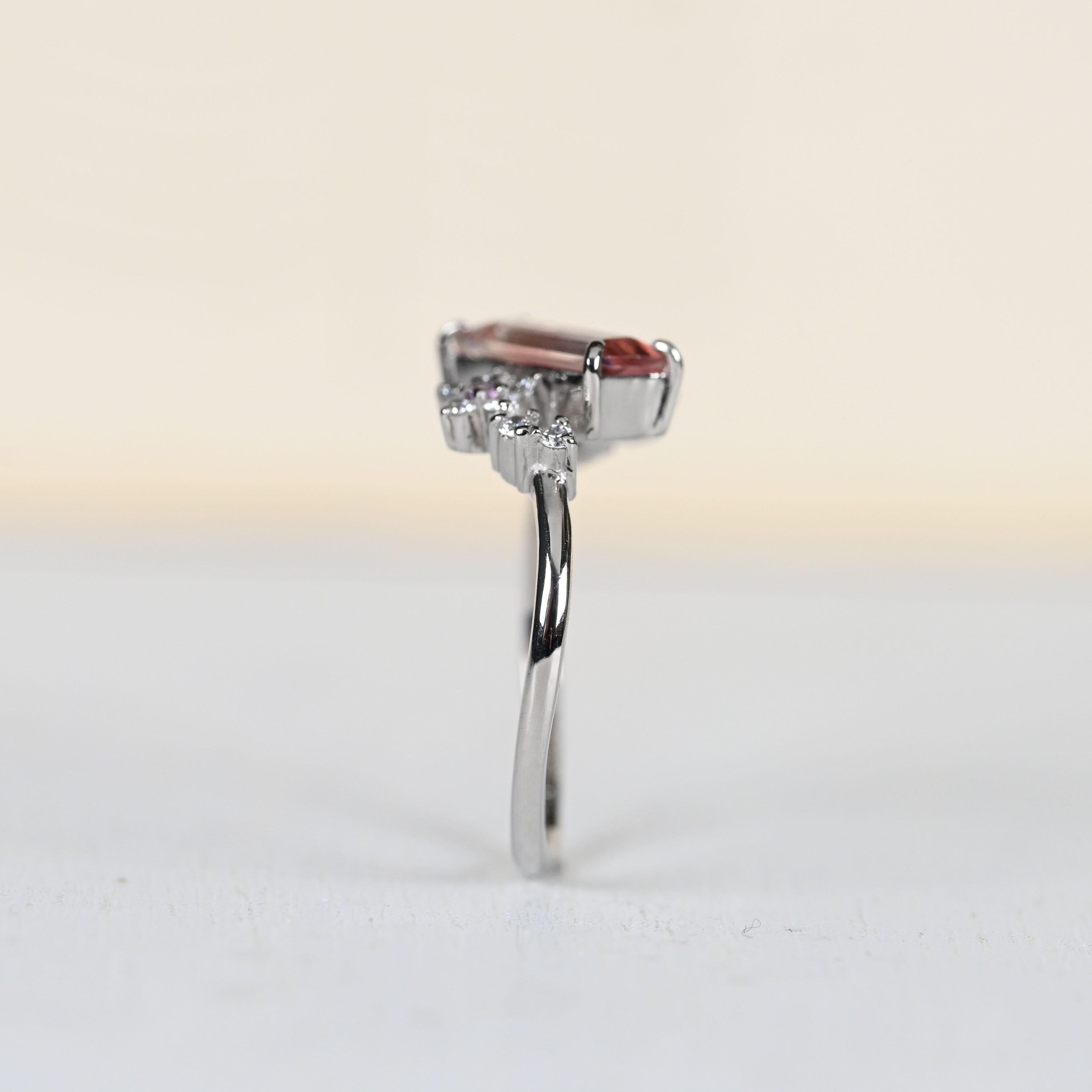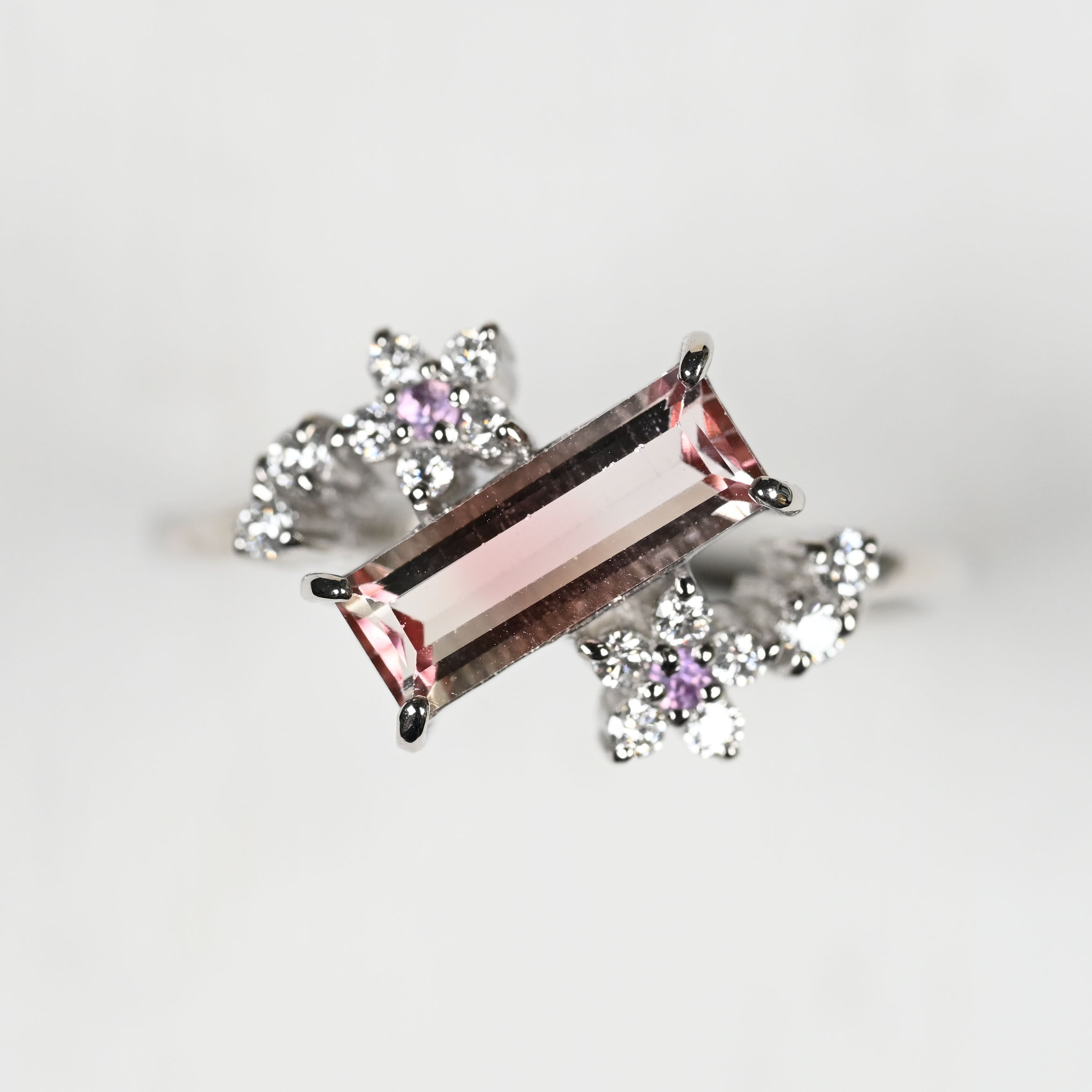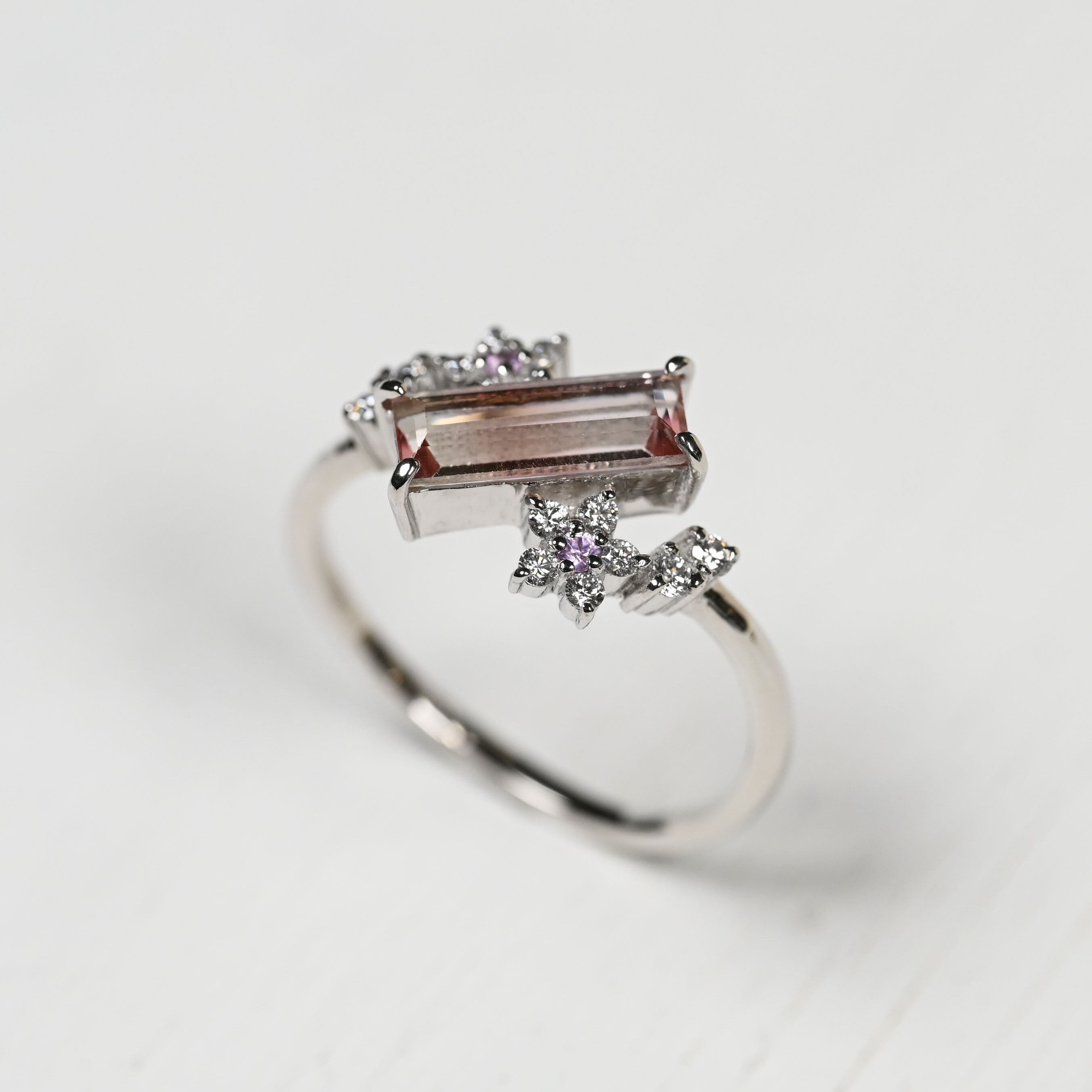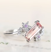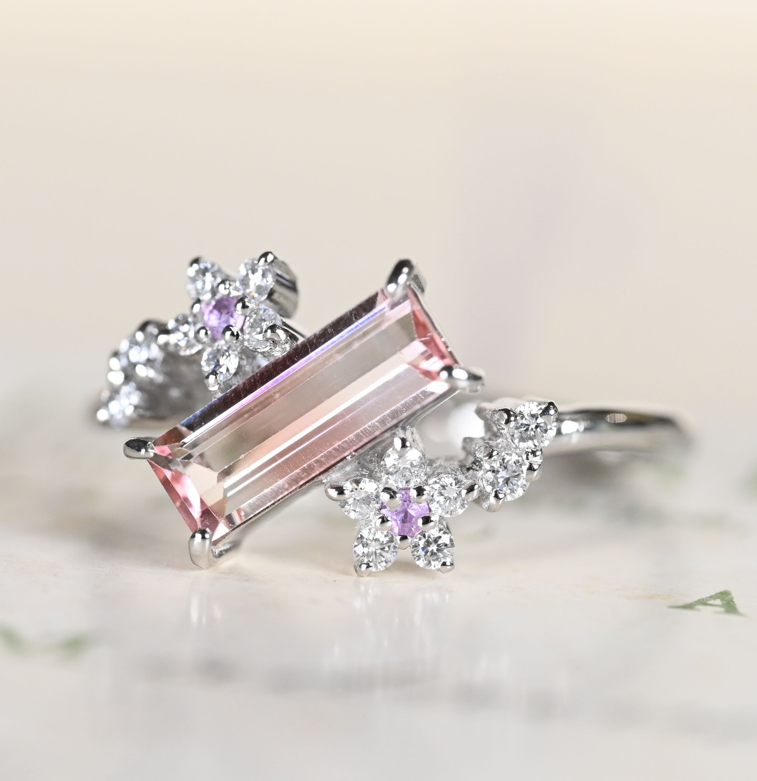 メインストーンには長め長方形の優しいピンク色系『バイカラートルマリン』