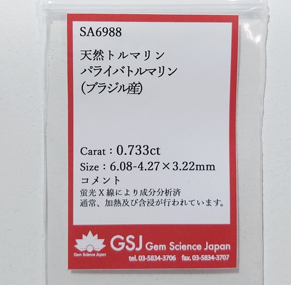 ☆お石:パライバトルマリン 0.733ct(バゲットカット)