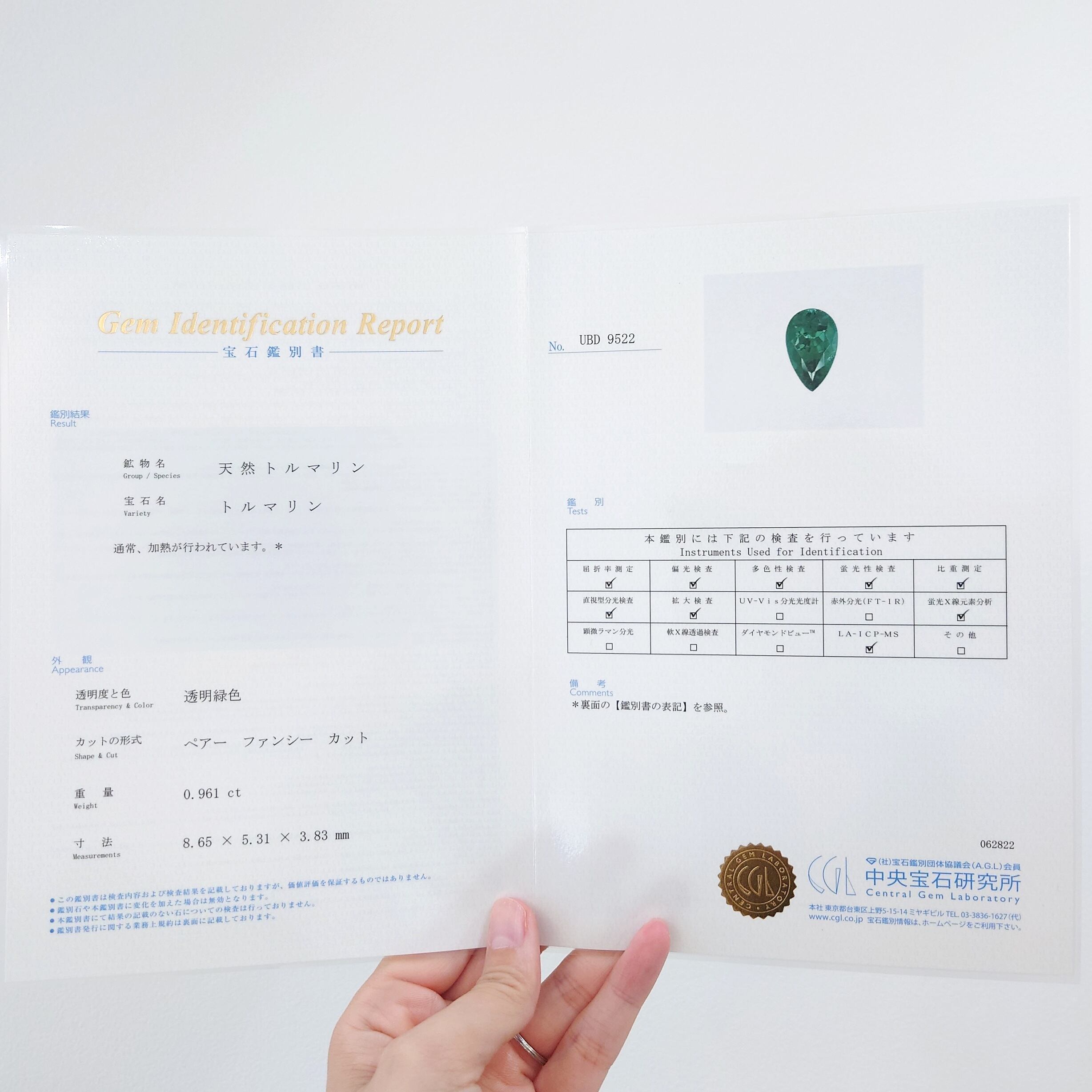 ☆お石:パライバトルマリン 0.961ct(ペアシェイプカット)