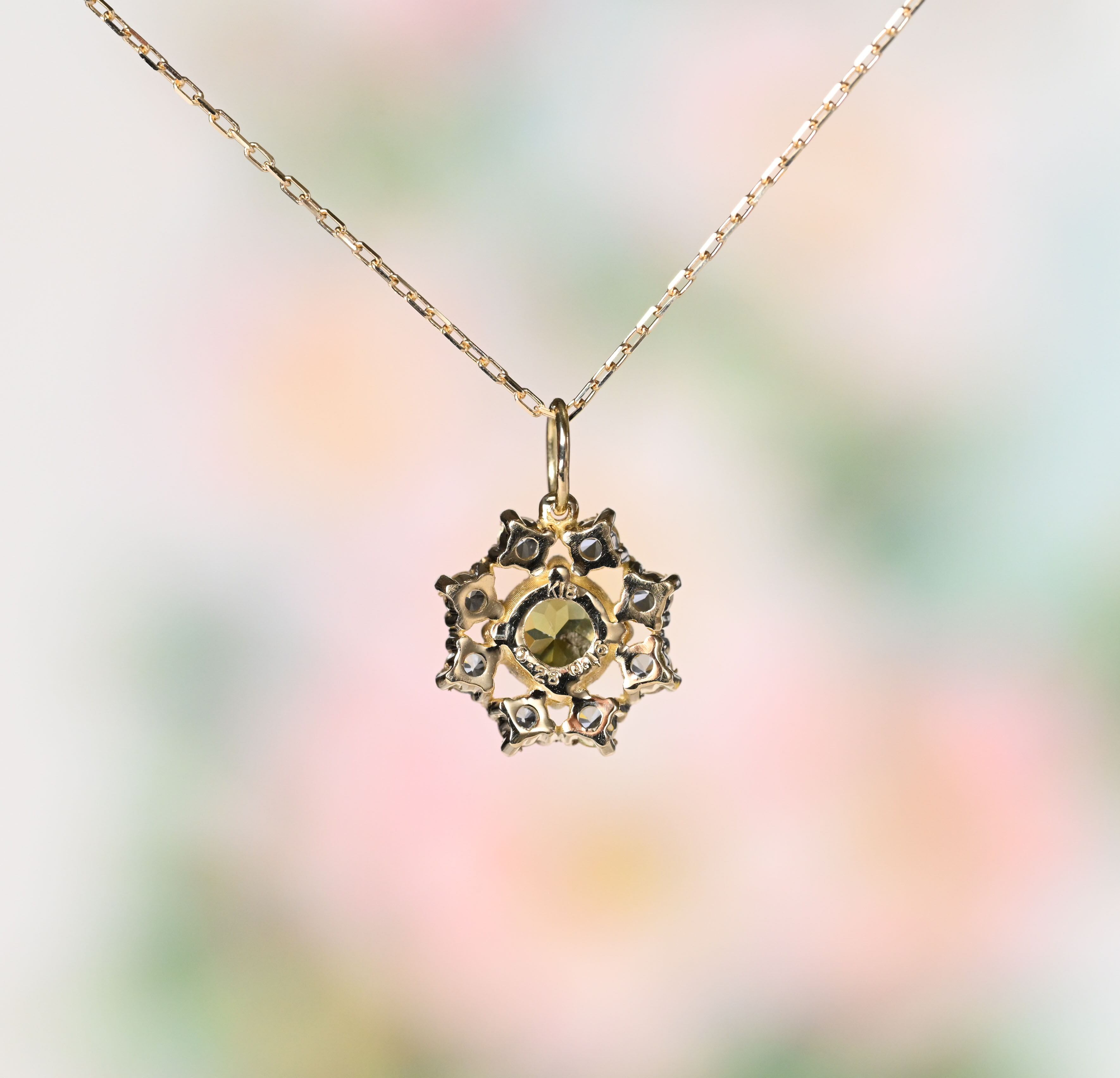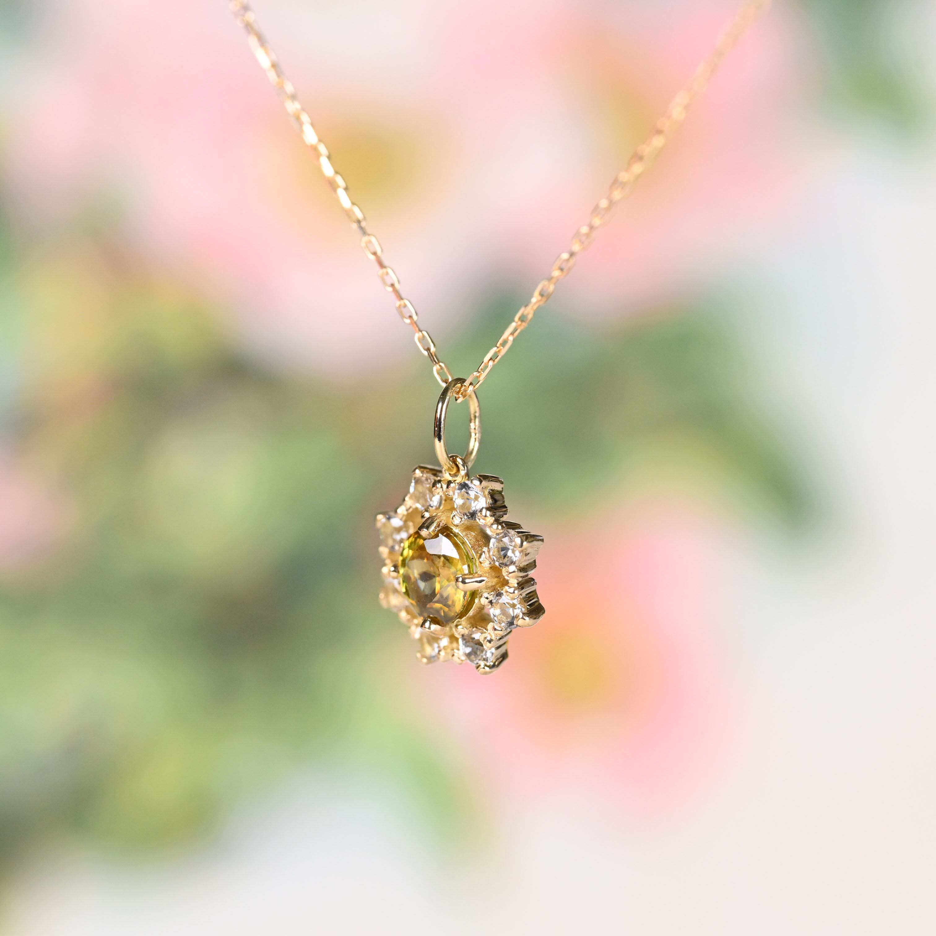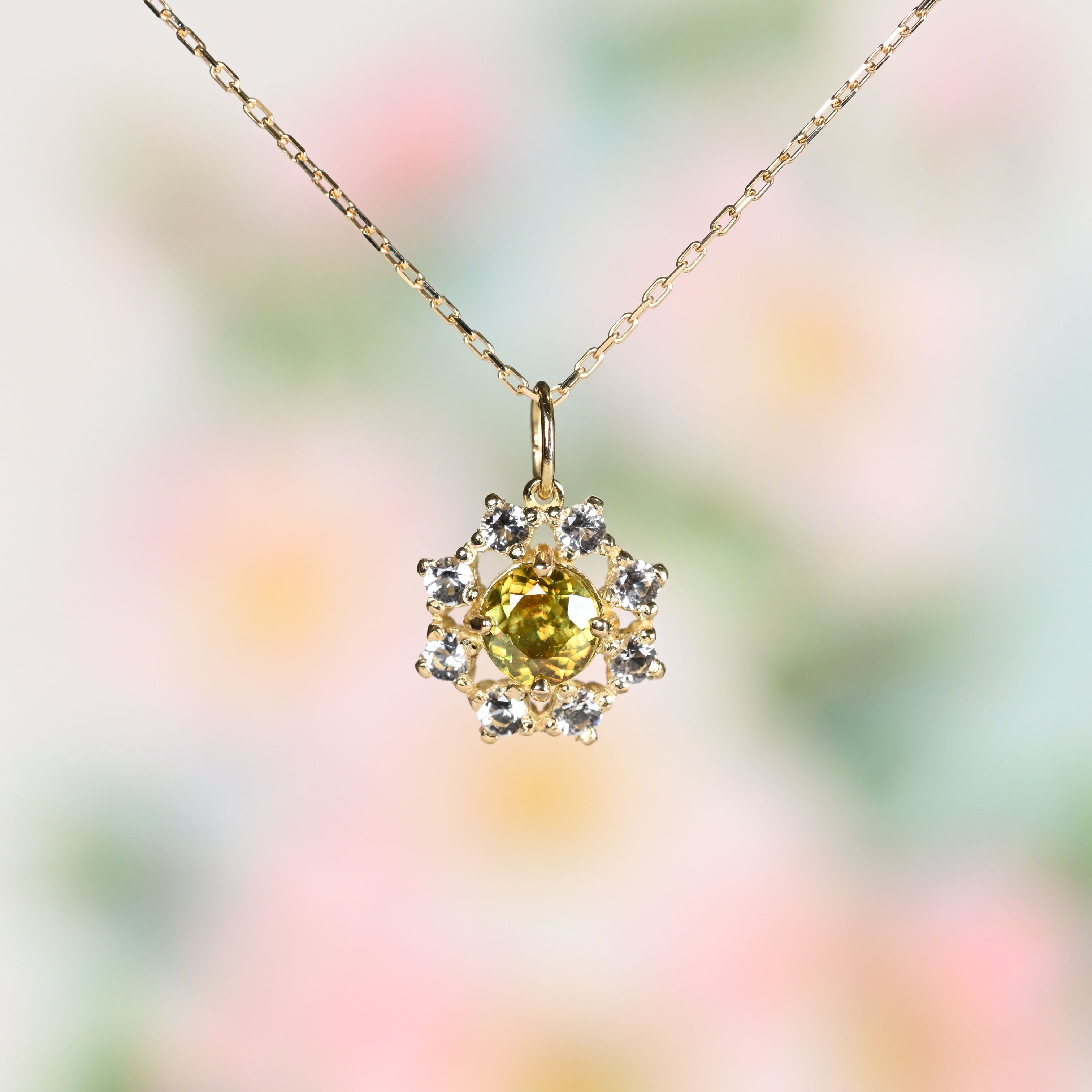 花びらのようにスフェーンの周りをホワイトトパーズが囲み華やぎのあるペンダント