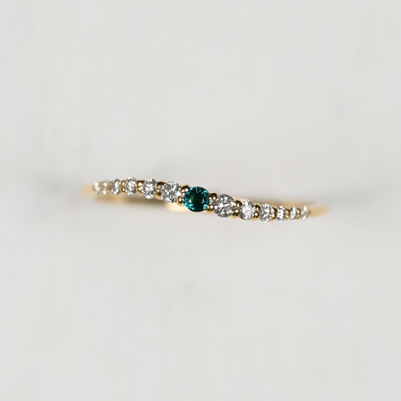 小粒ですが、今では珍しいグリーン濃いめのブルーグリーンのお石が存在感抜群です