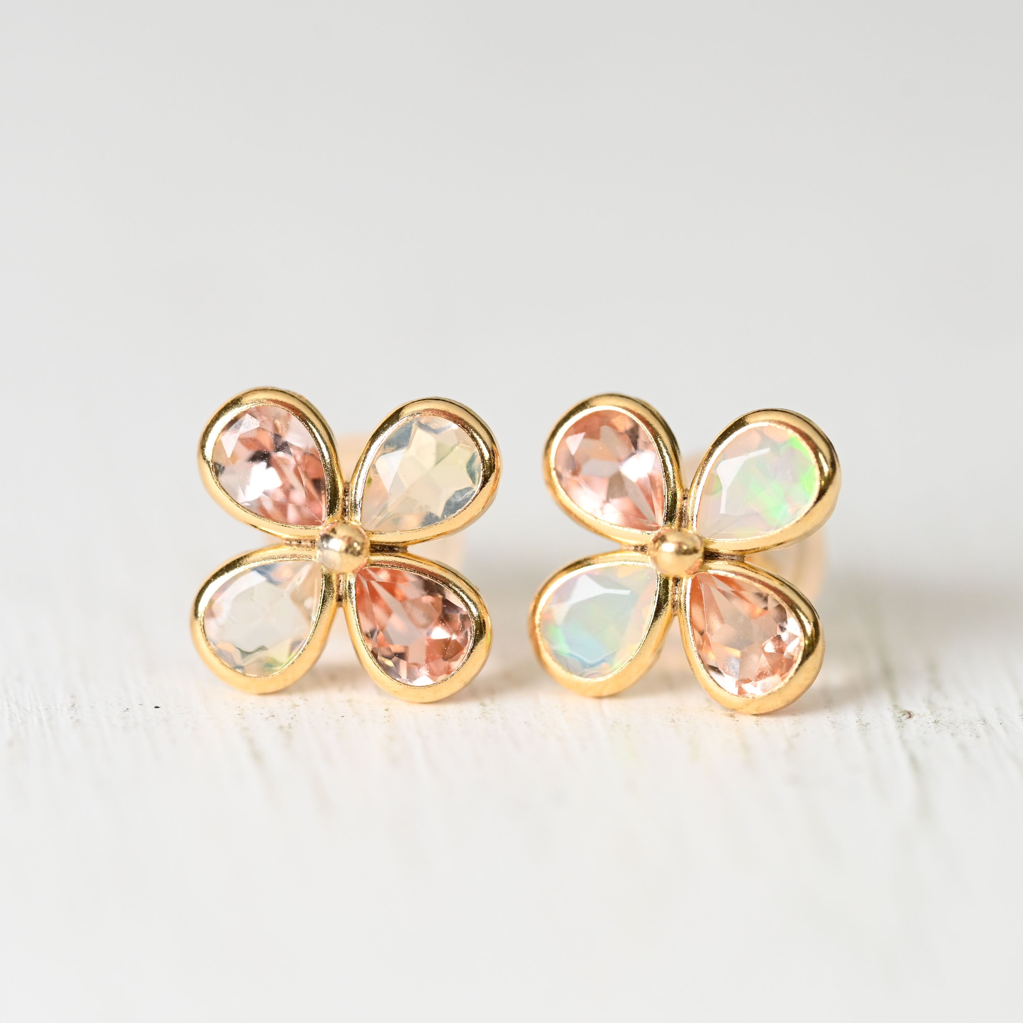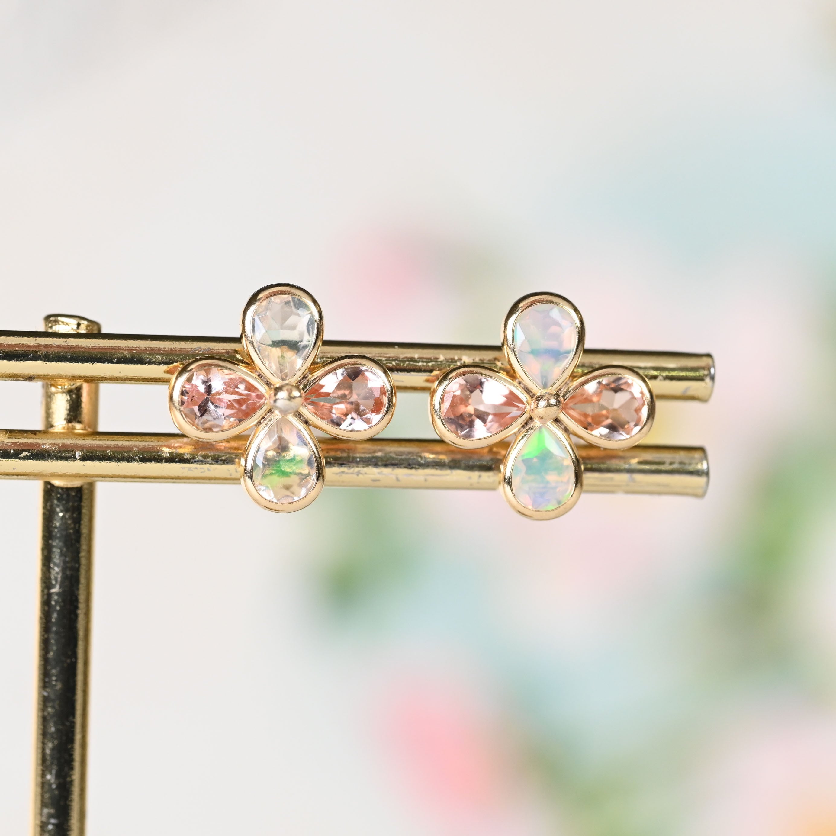 ♡♥インペリアルトパーズ&オパールのお花ピアス K18YG(GH3178)♥♡