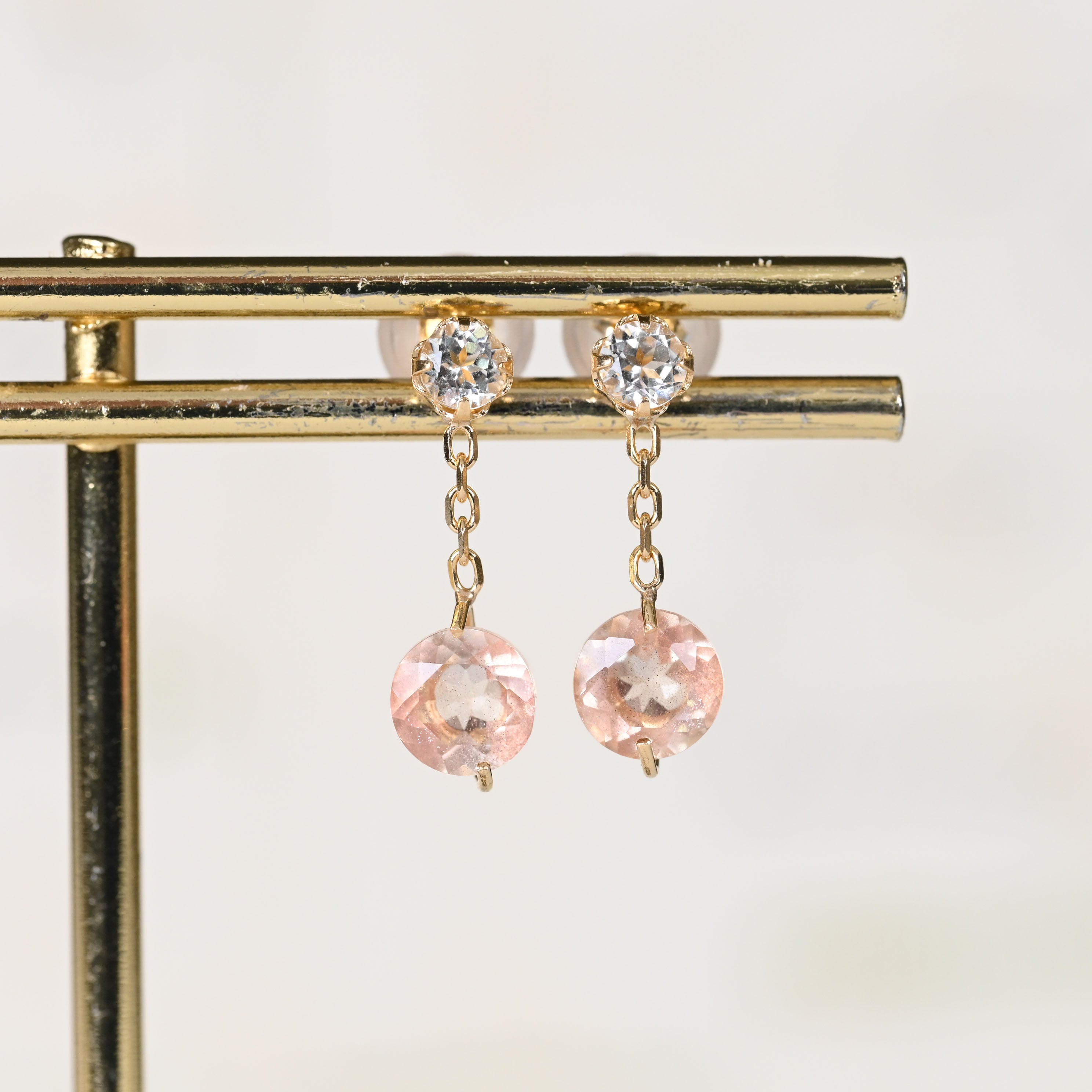 ホワイトトパーズ&オレゴンサンストーンのチェーンピアス K18YG(GH3179)