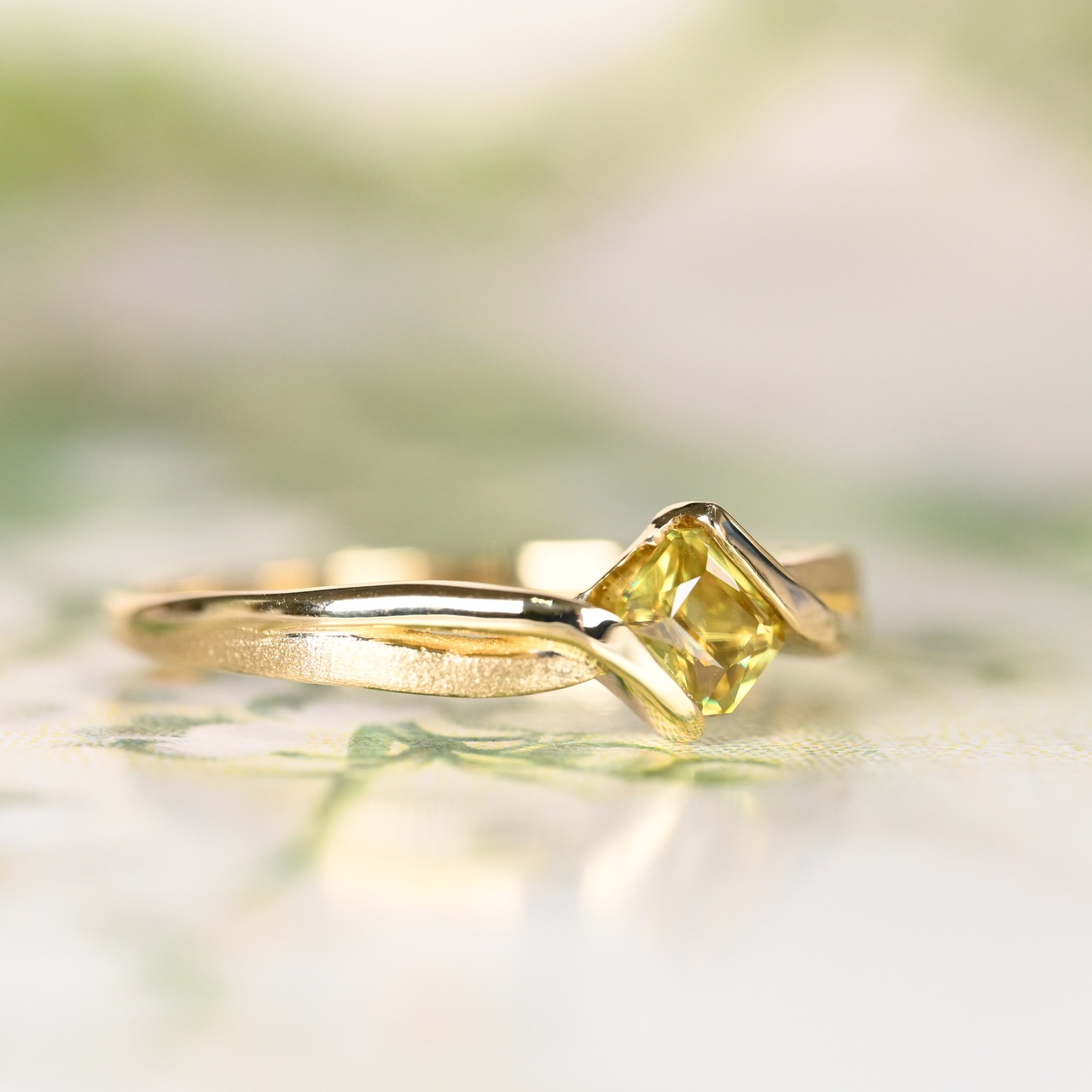 煌めきのスフェーンにアームのYG(イエローゴールド)の鏡面のツヤツヤと艶消し加工とのテクスチャーのコントラストが利いた素敵なデザイン