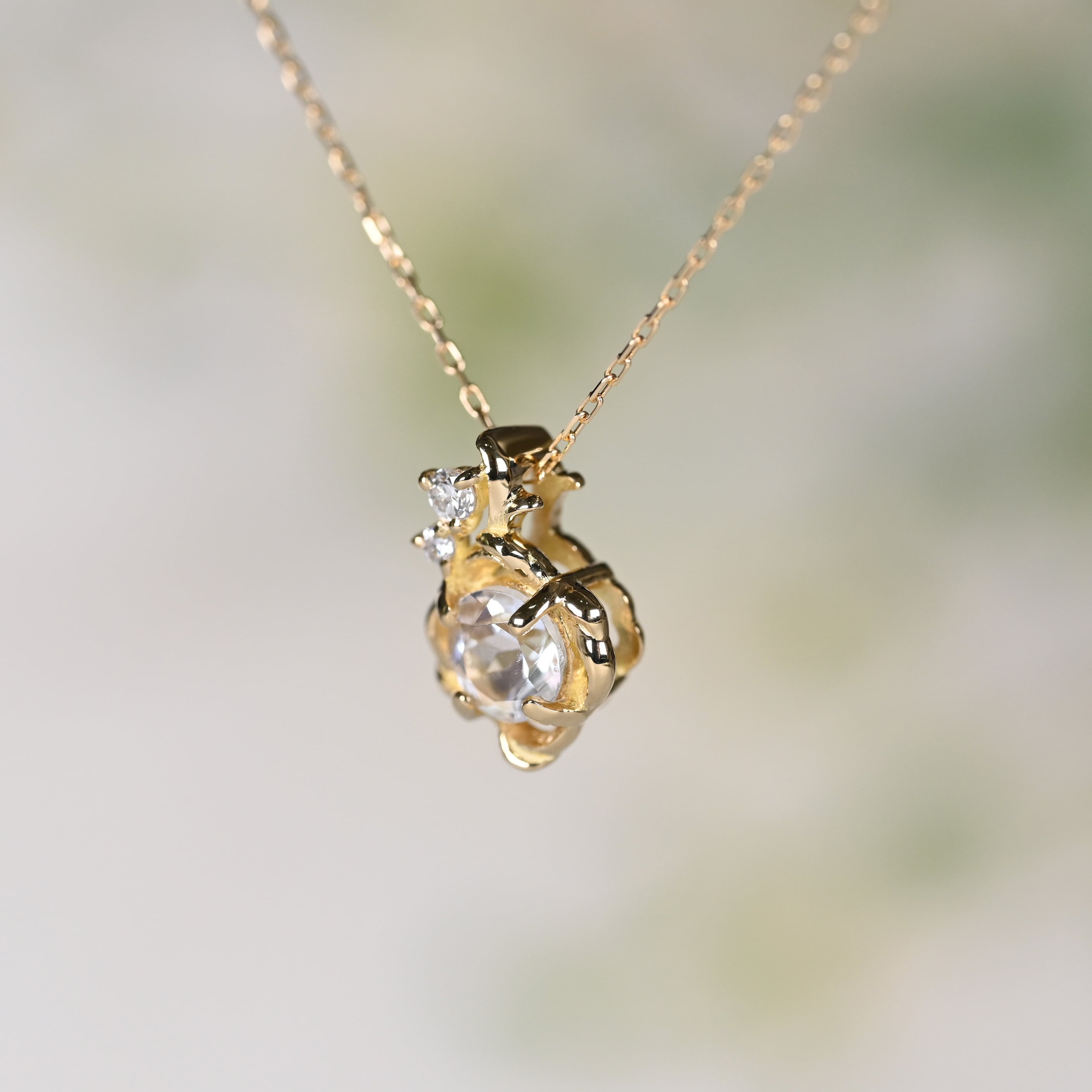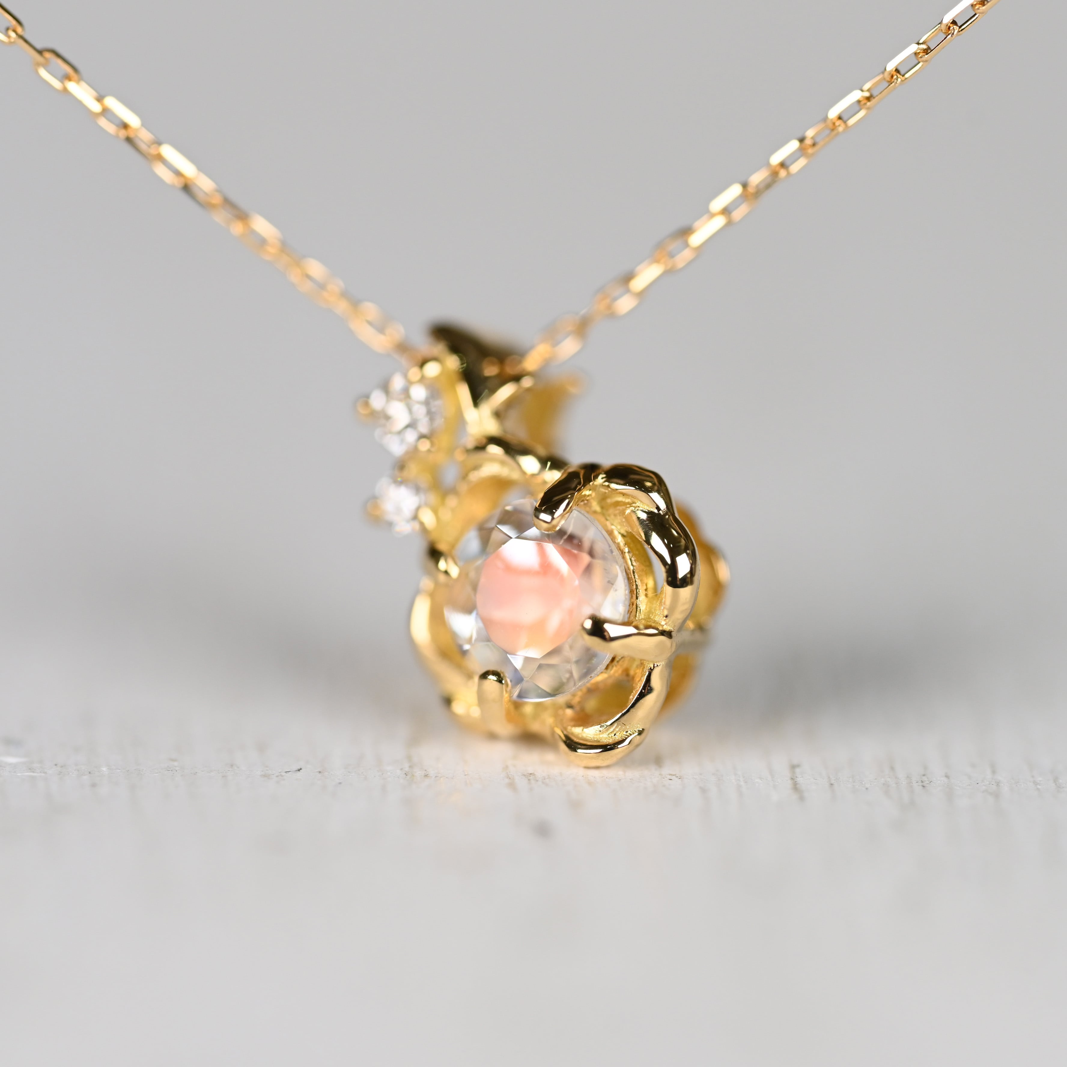 オレンジのシラーが特徴の『アンデシンラブラドライト』を主役にしたネックレス