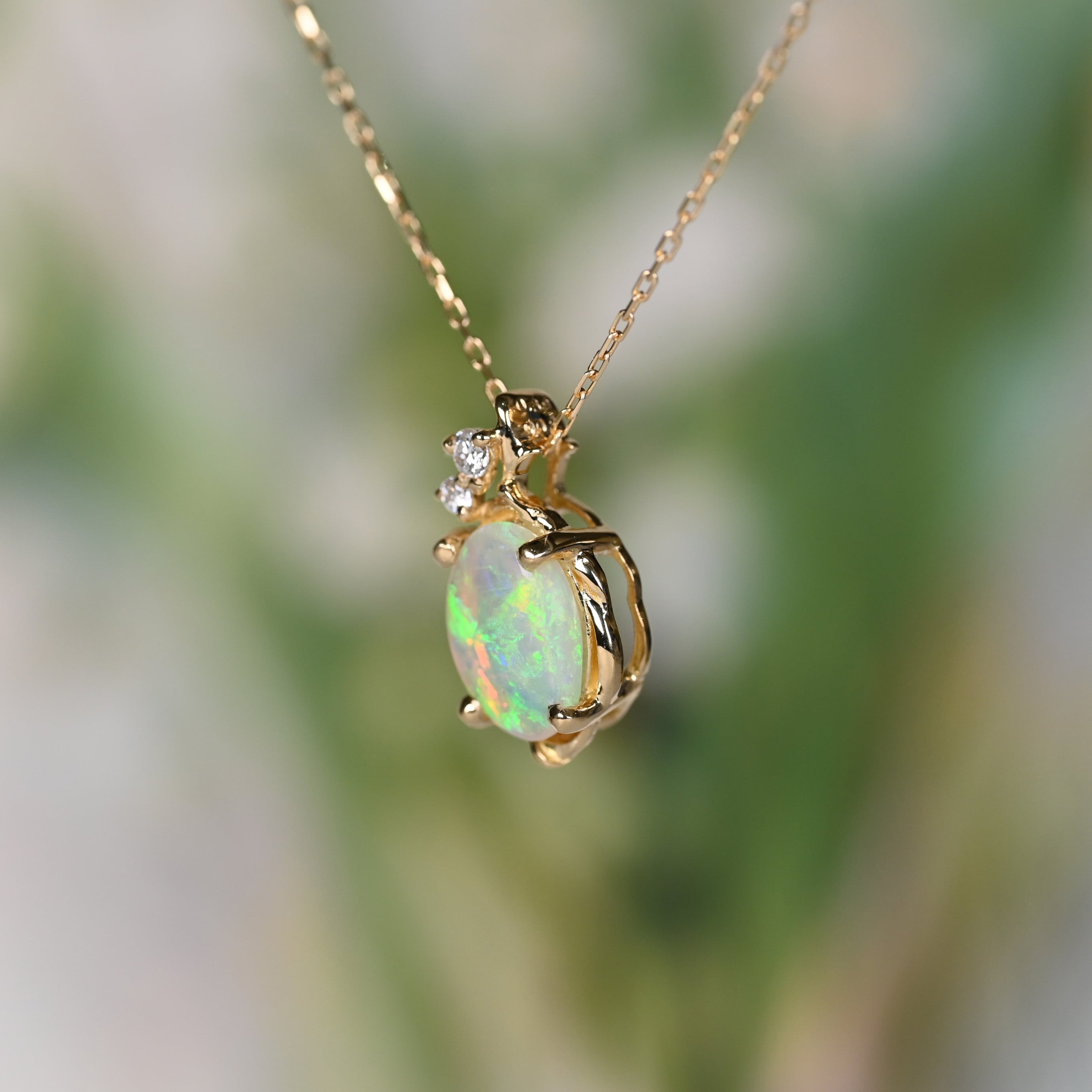 虹色の光が揺らめく、幻想的な『オパール』を主役にしたネックレス