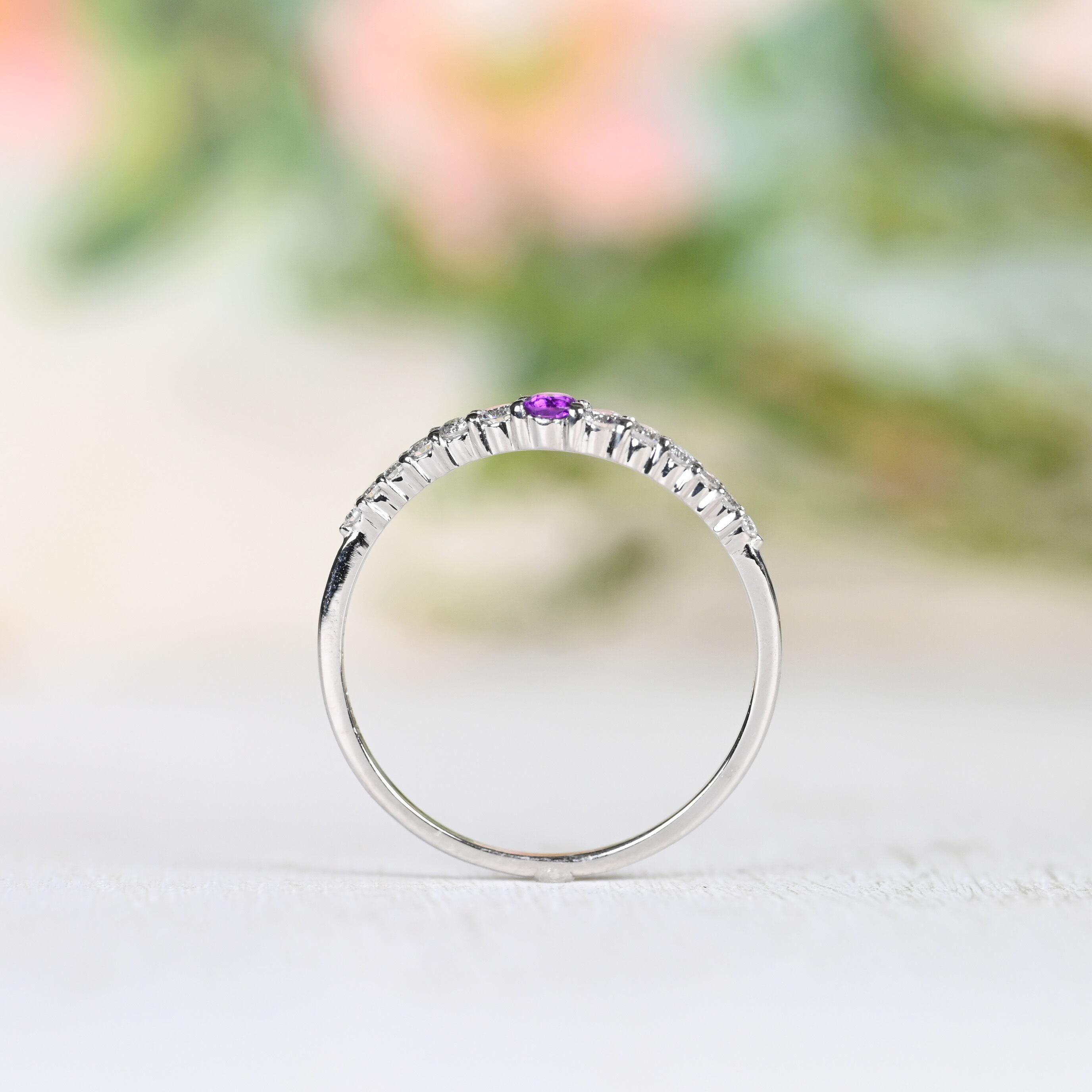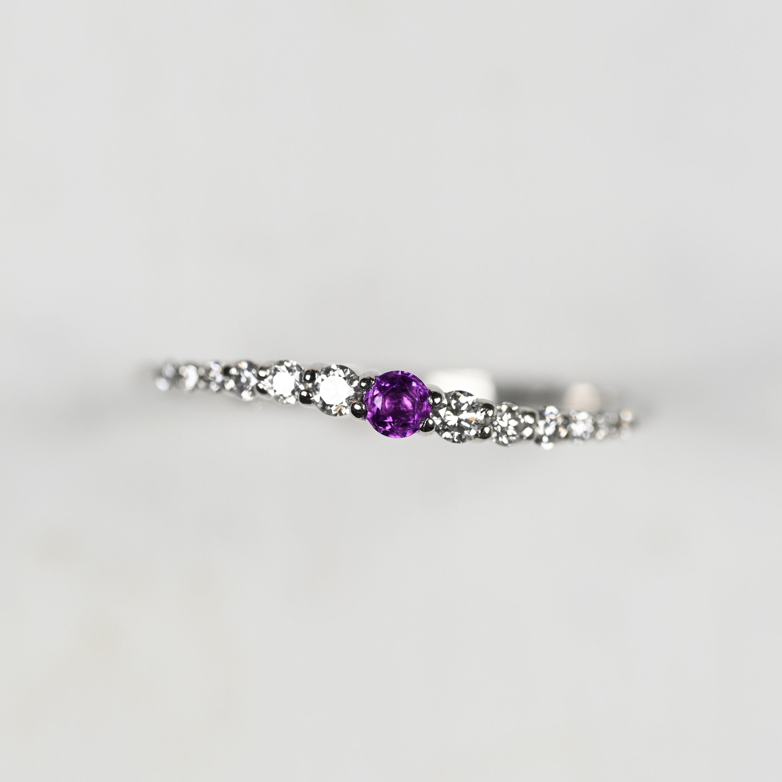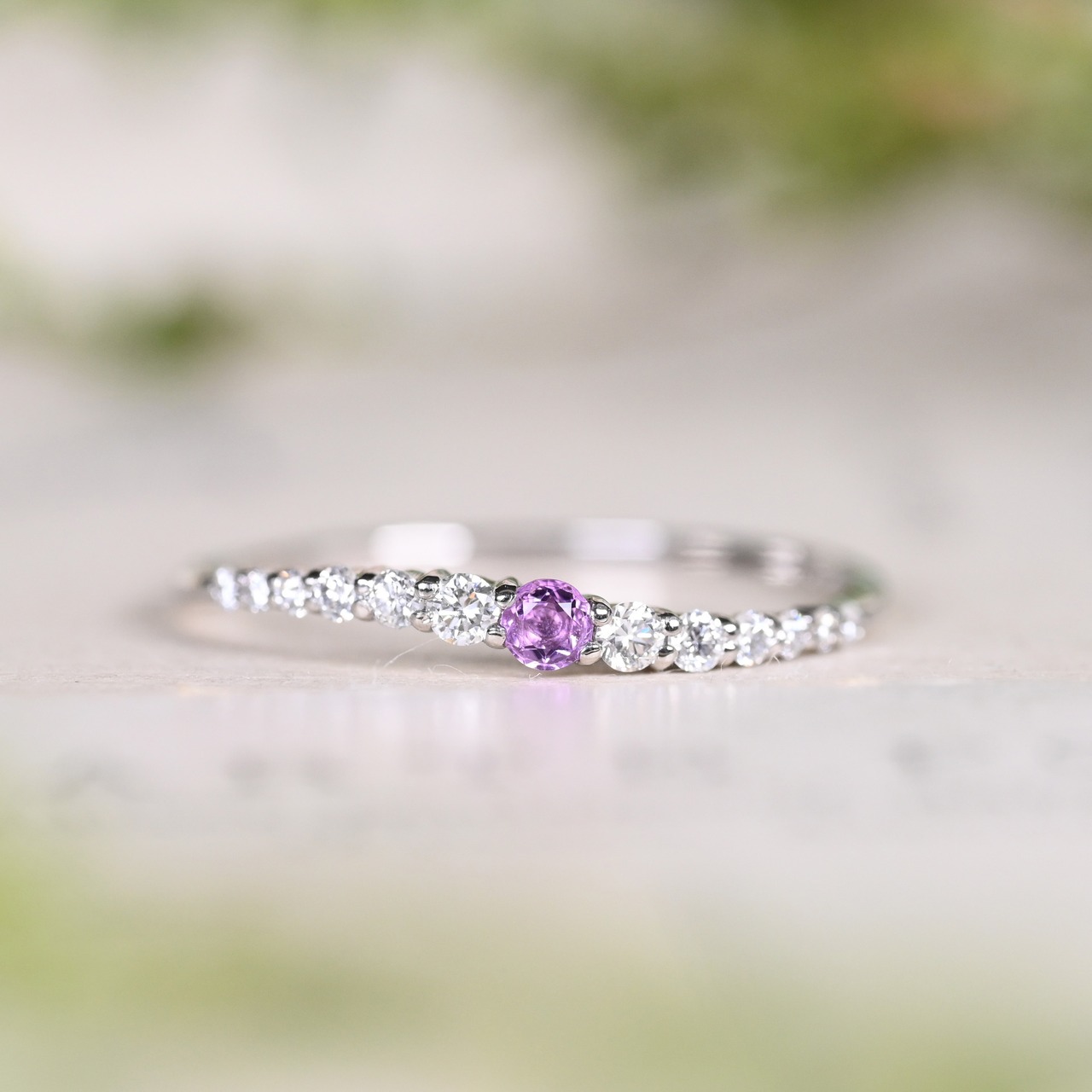 ピンク系薄紫のハックマナイトを流れるようなウェーブラインとダイヤモンドの煌めきが美しいリングで仕立てました