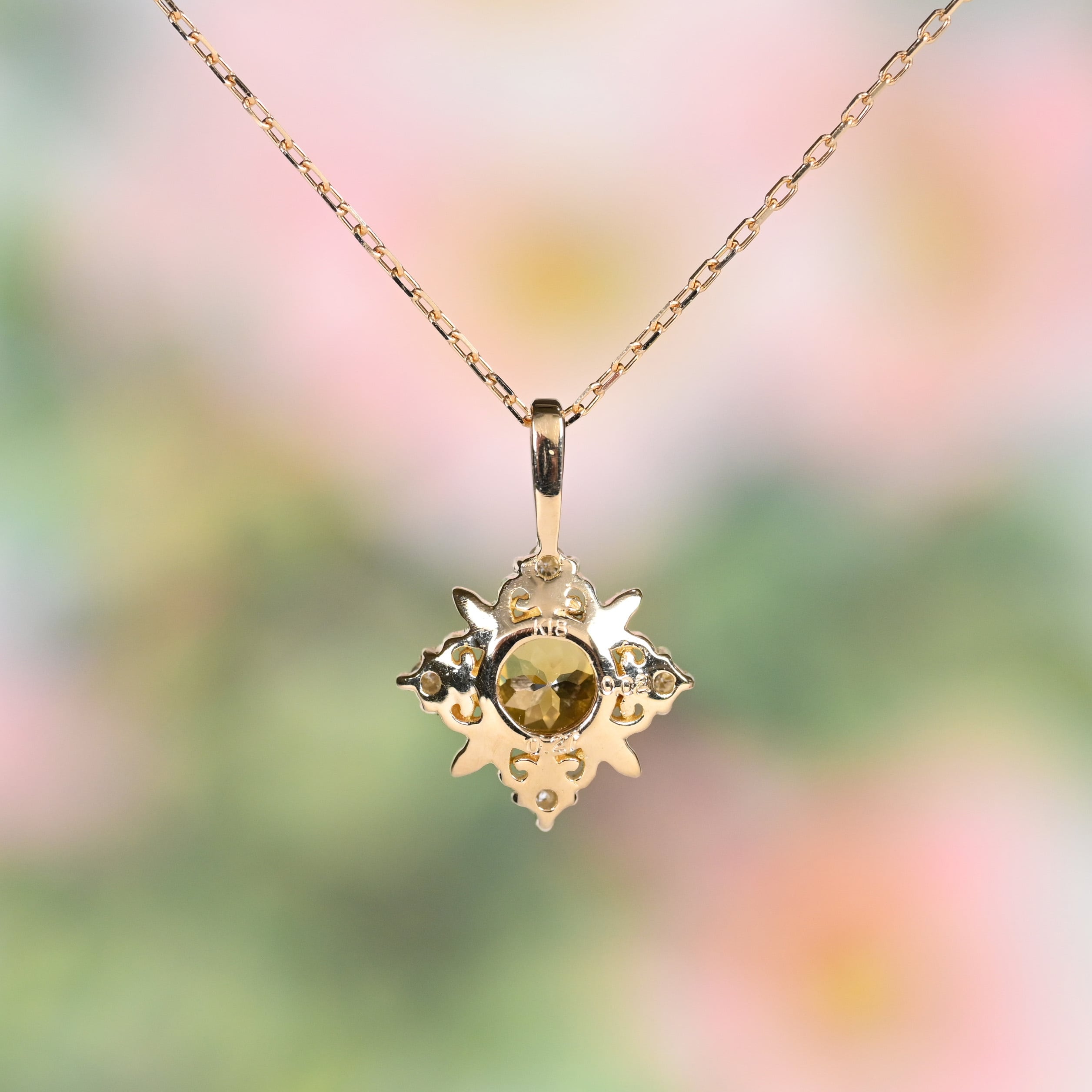 小粒ですがデザイン性の高いネックレスの枠で存在感アップ!