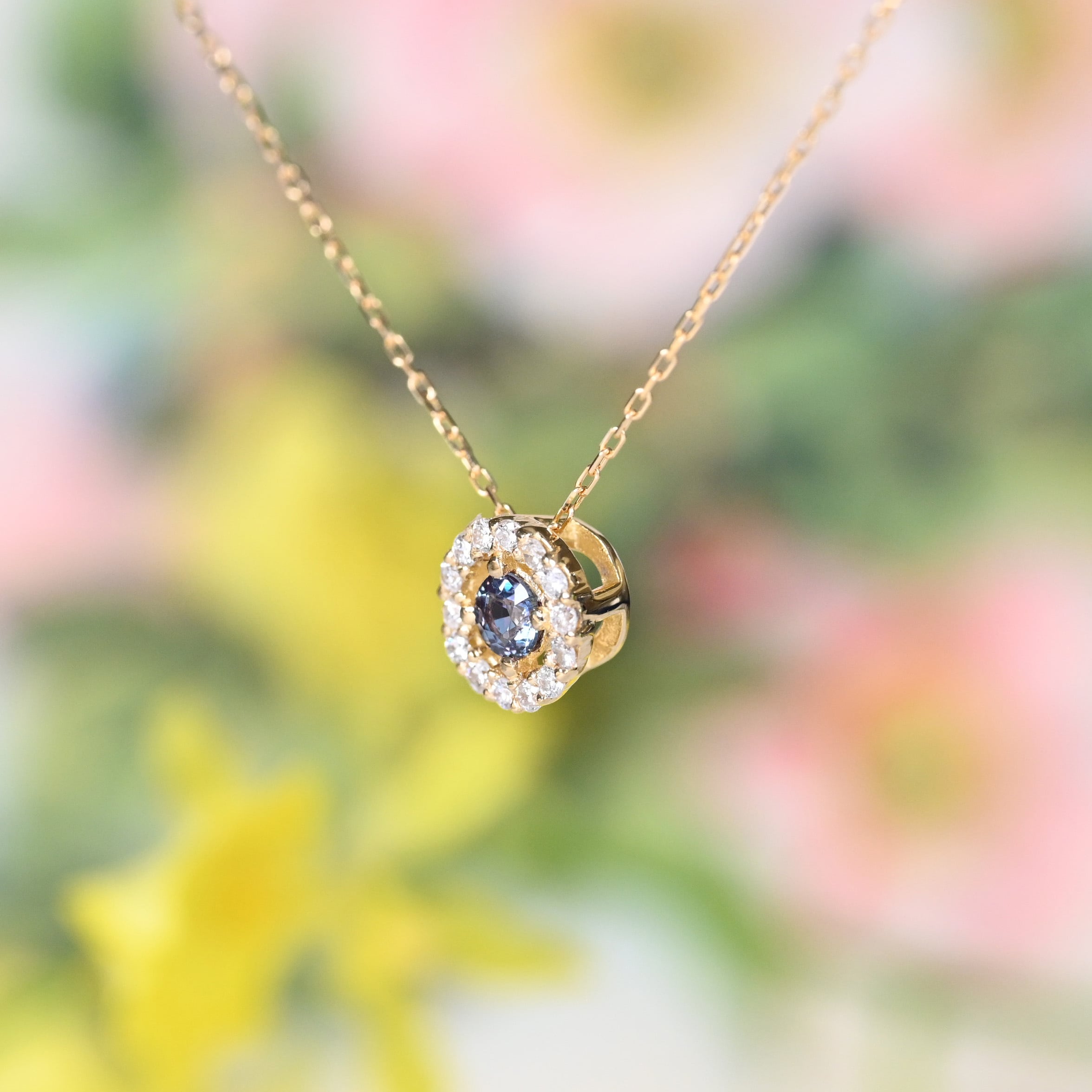 ダイヤモンドで取り巻き煌めきの華やかさで存在感のあるネックレスにしました