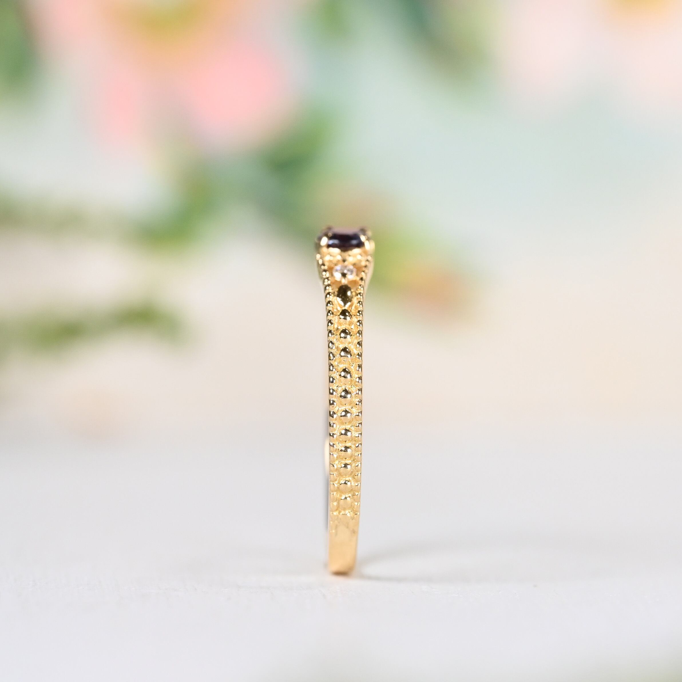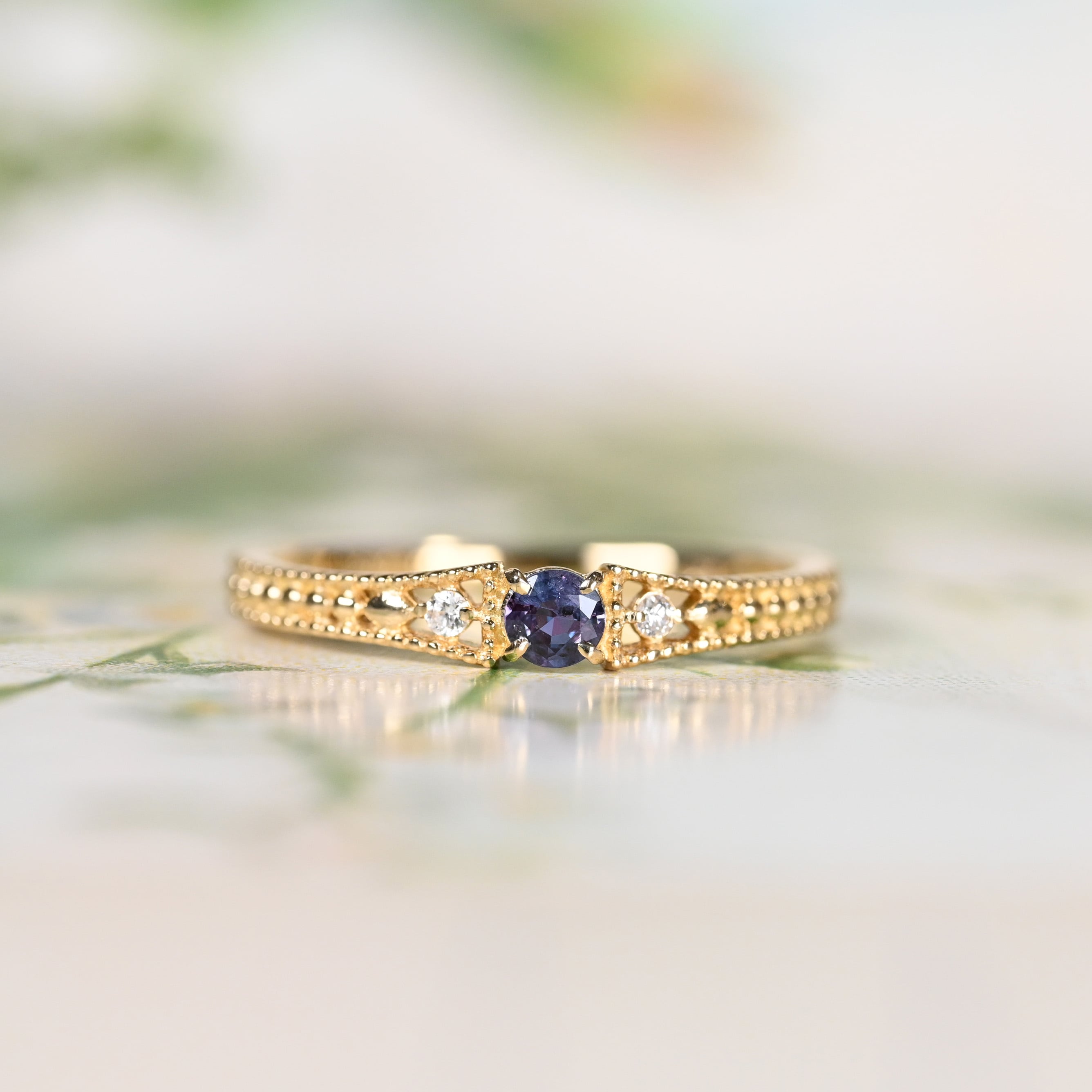 カラーチェンジもしっかりでるお石を地金しっかりめでミルのデザインが印象的なリングでお作りしました♪