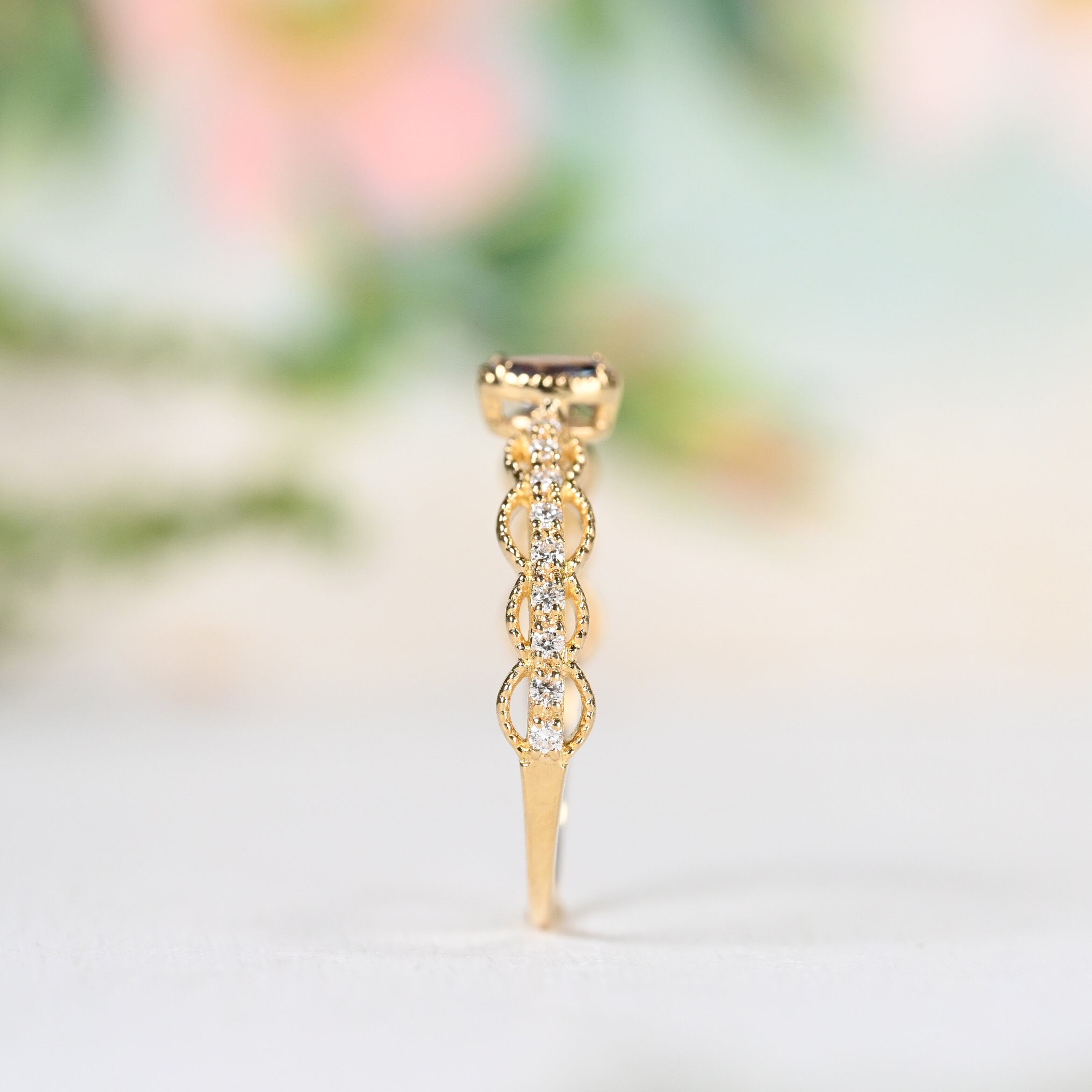 カラーチェンジも抜群のお石を透かしとダイヤモンドの煌めきが特徴のデザイン枠に合わせました