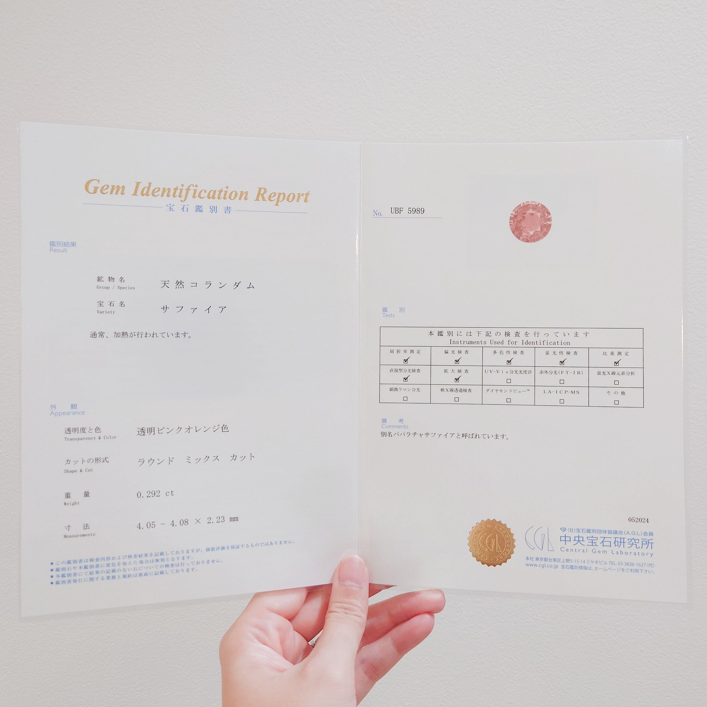 世界三大希少石のひとつでピンクとオレンジが絶妙に溶け合う色彩の『パパラチアサファイア』