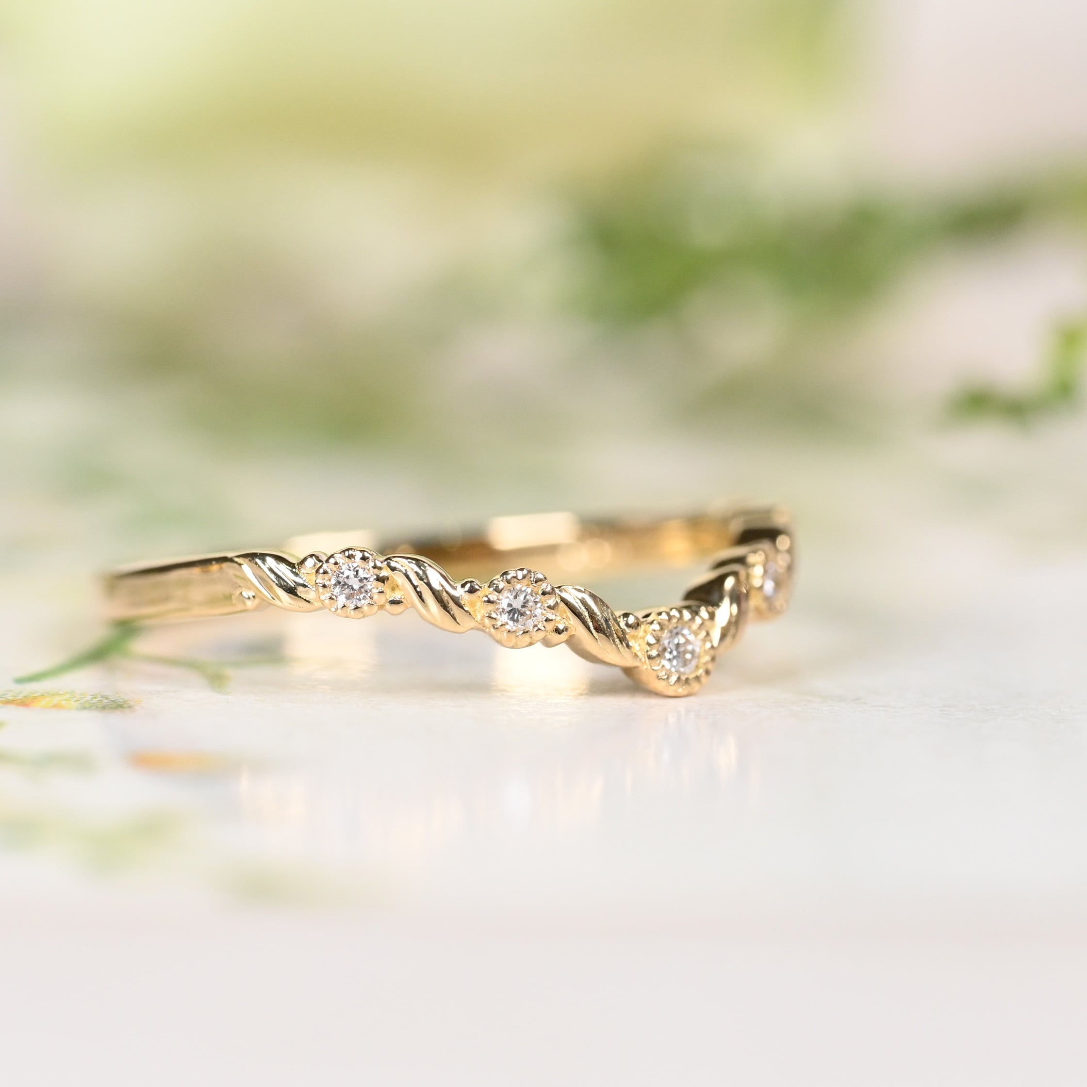繊細なクラシカルデザインと優美なV字ラインが指先をすらりと美しく魅せるリング