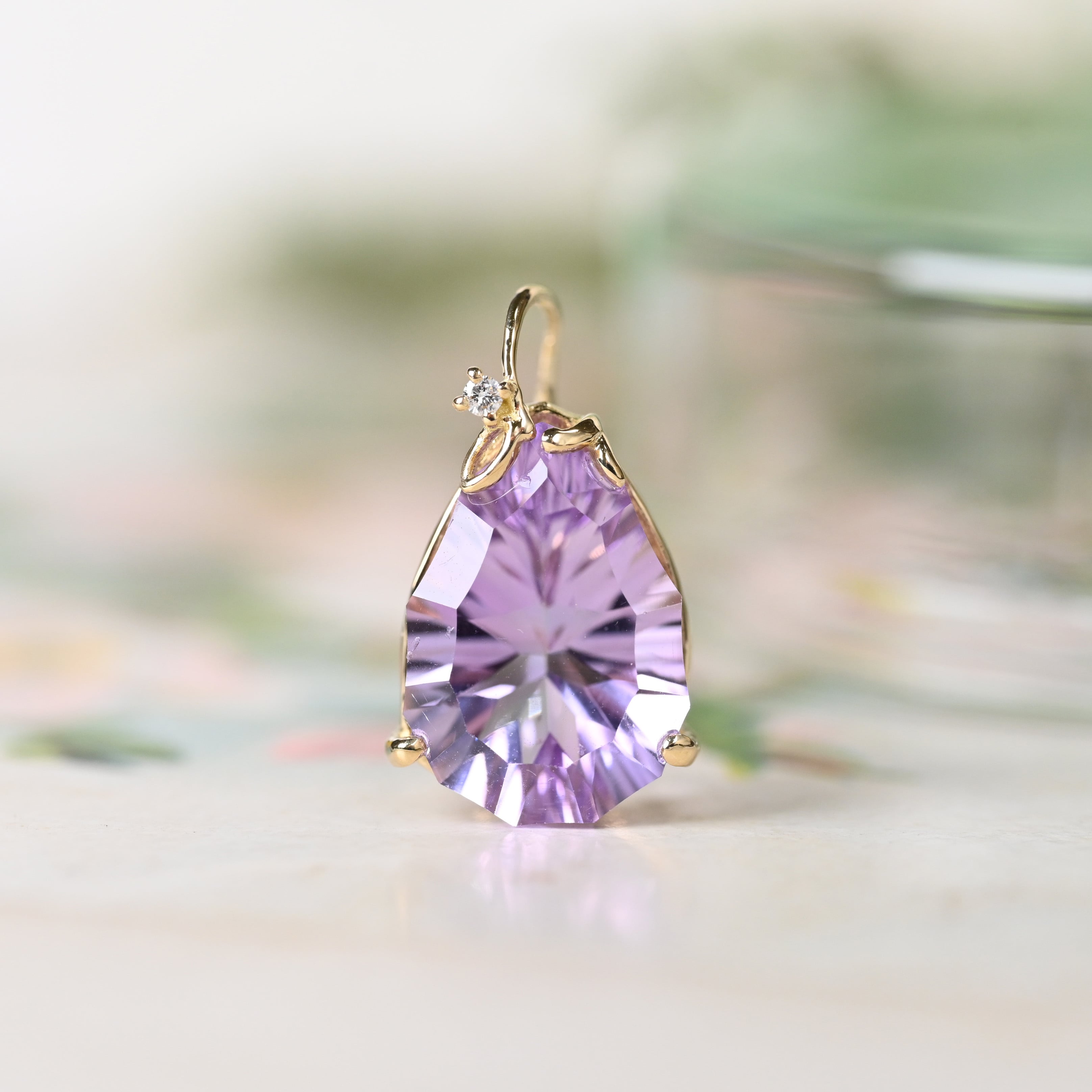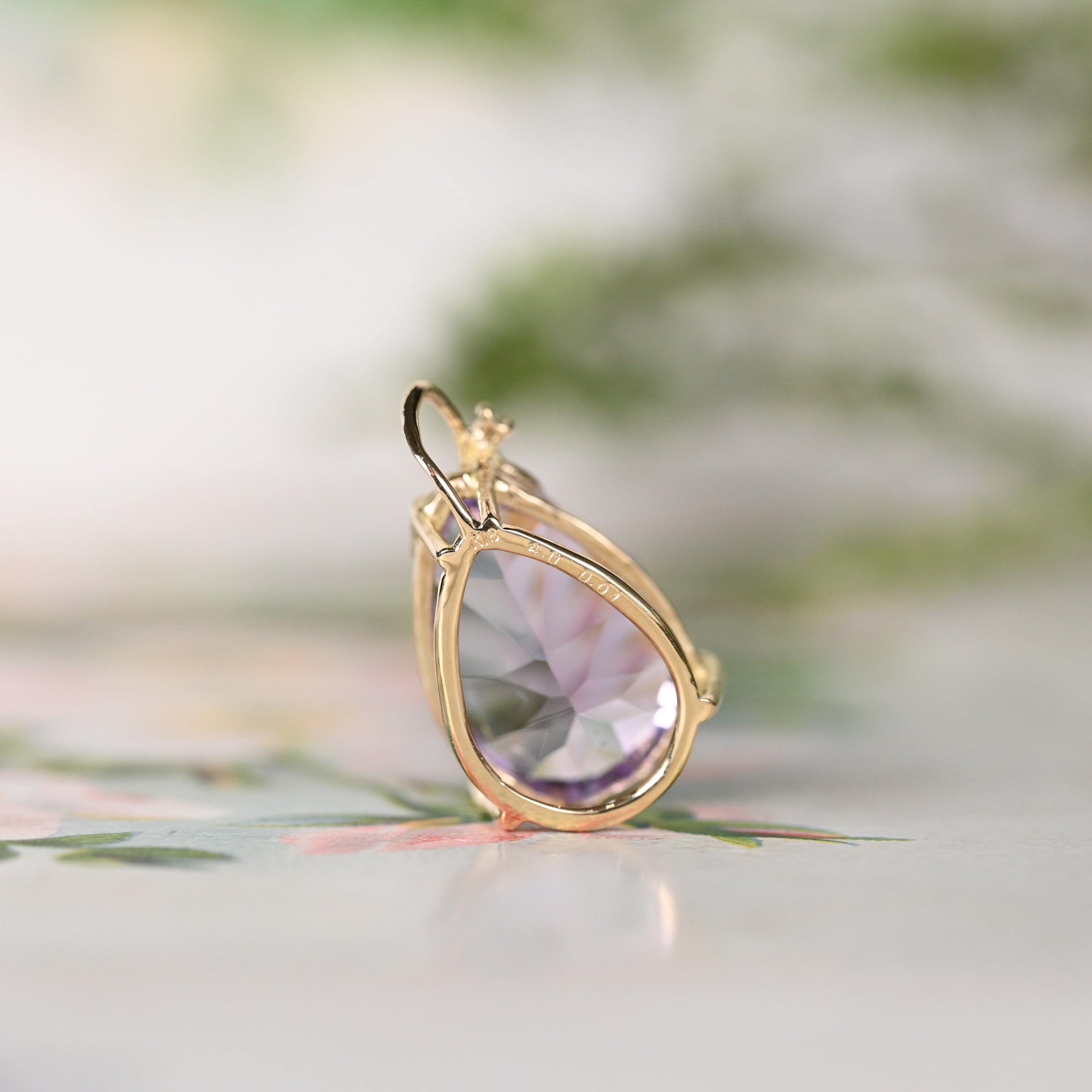 コンケーブカットの1ct超えアメジストを植物モチーフ枠でネックレスにしました