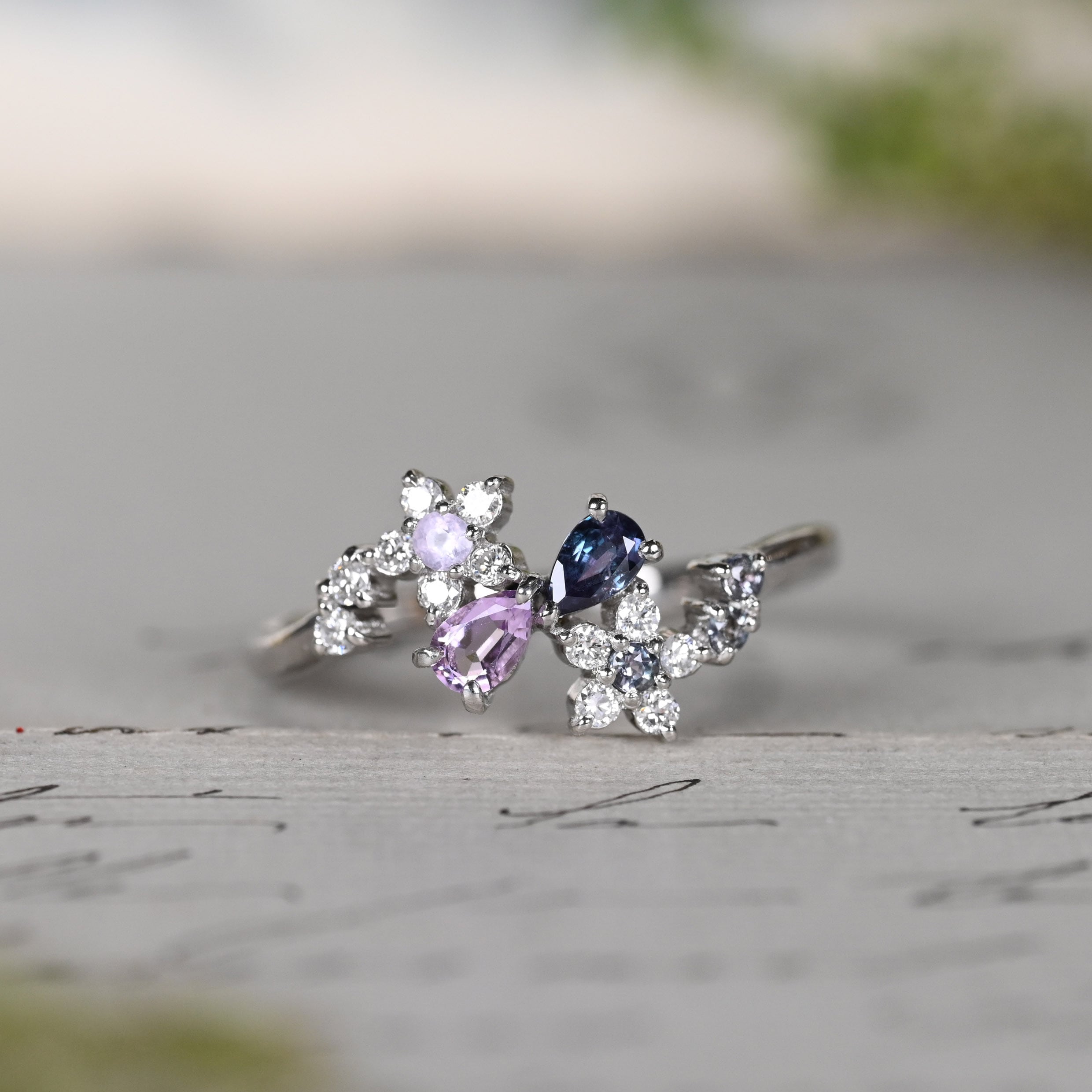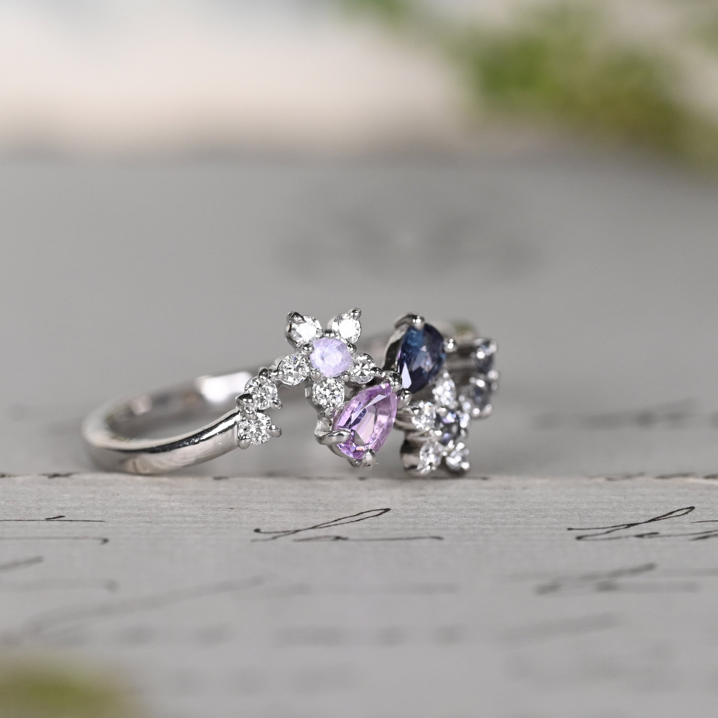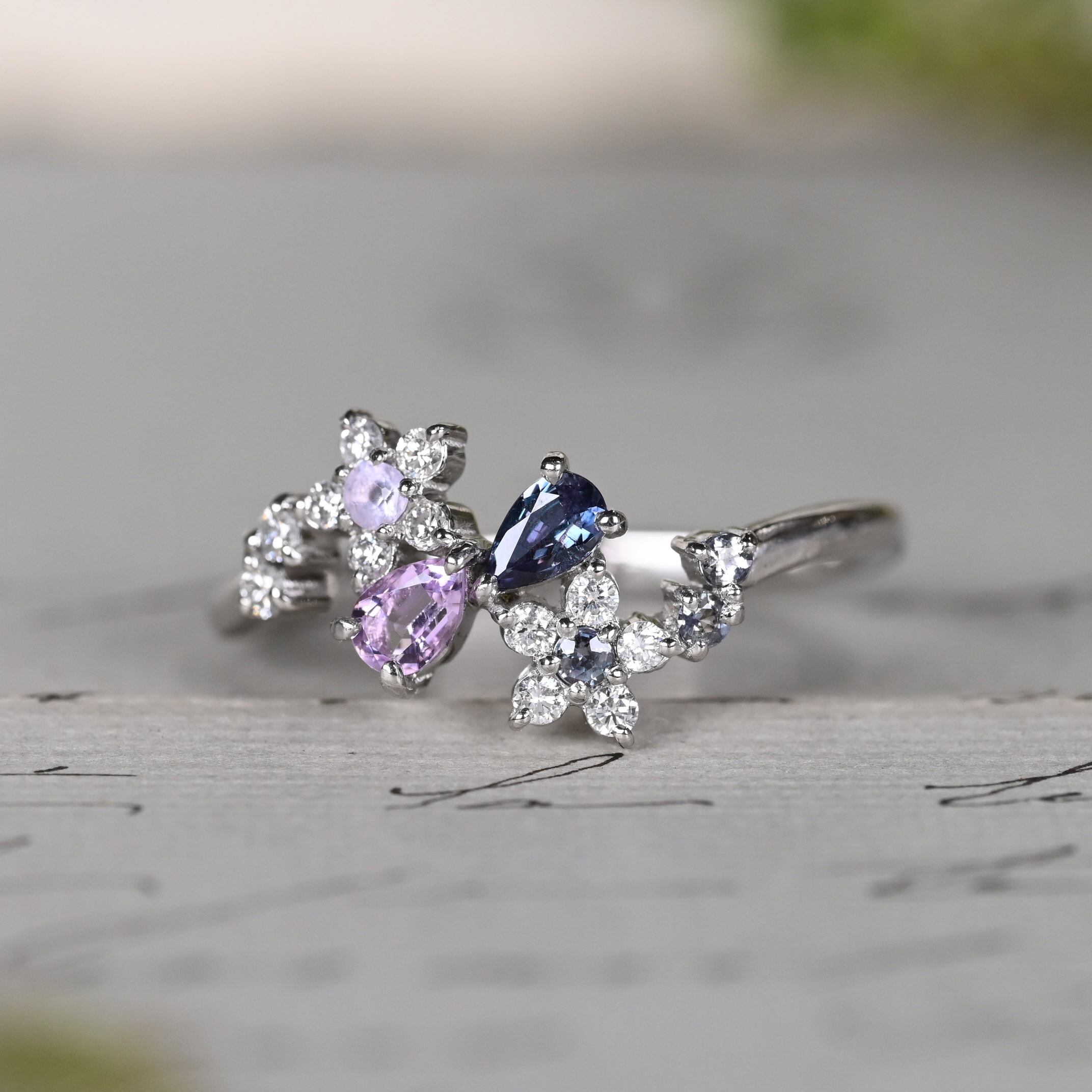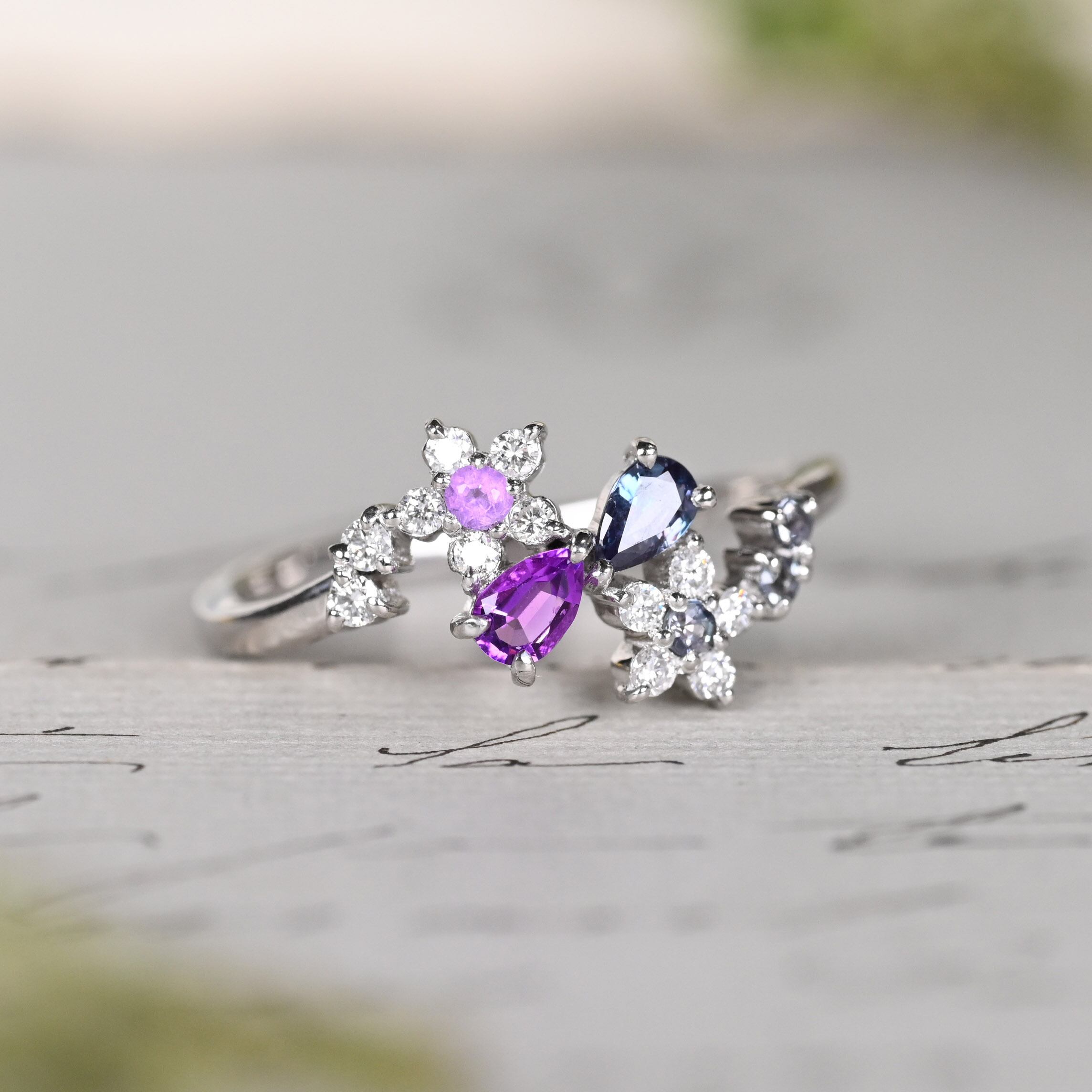 アレキサンドライトの方にはお花の中心と脇石にもあしらいさらに特別感アップ
