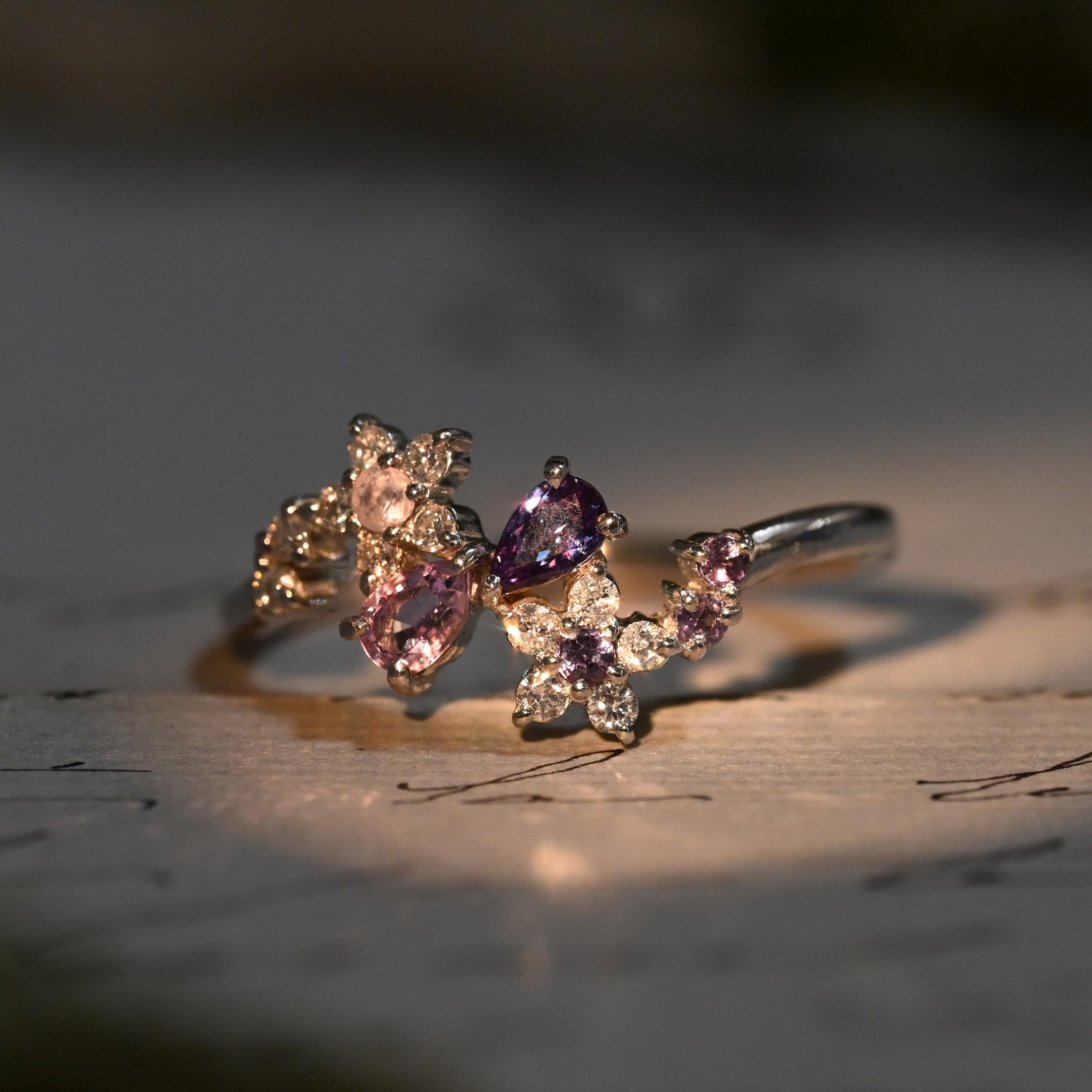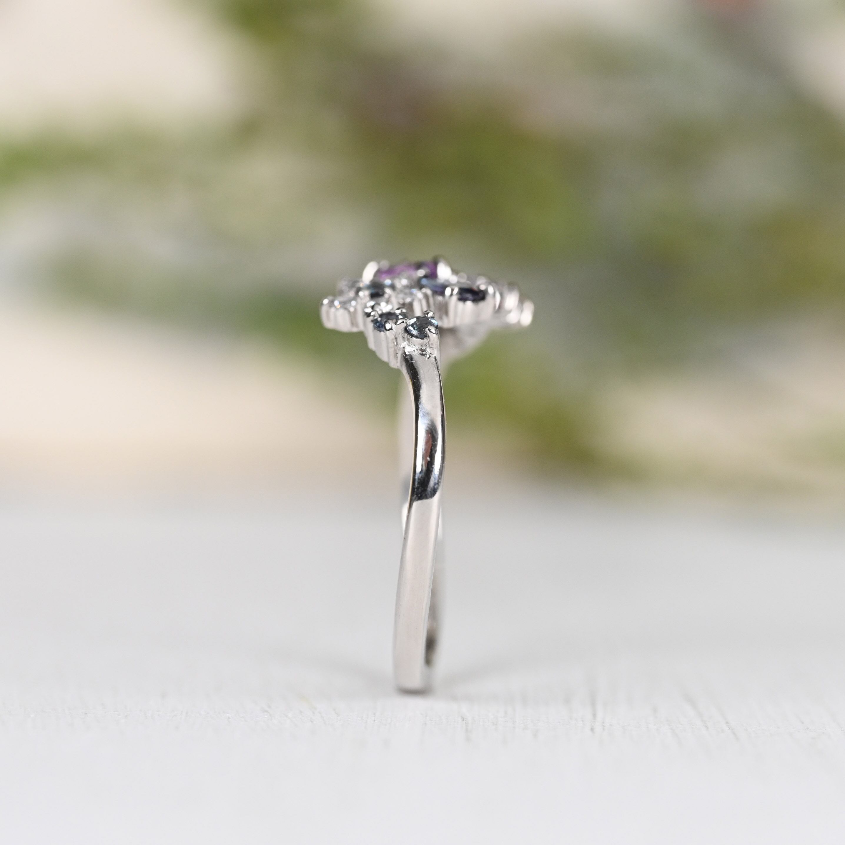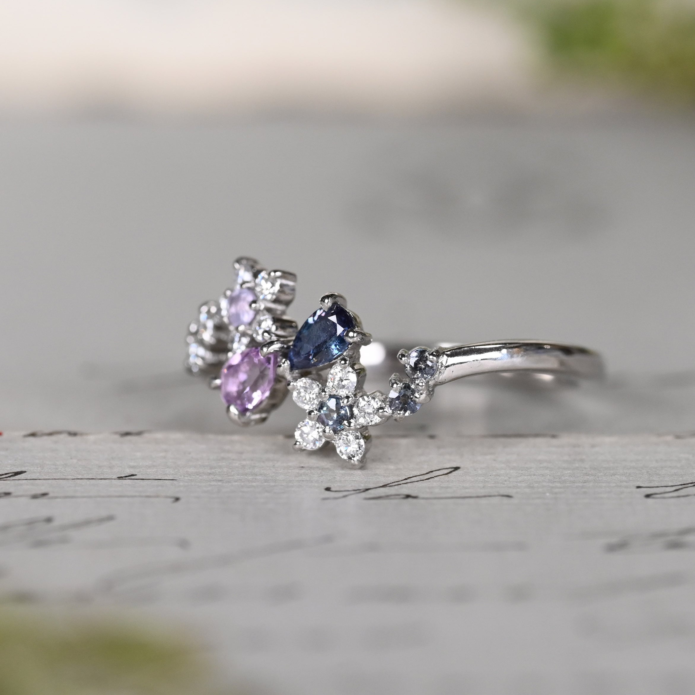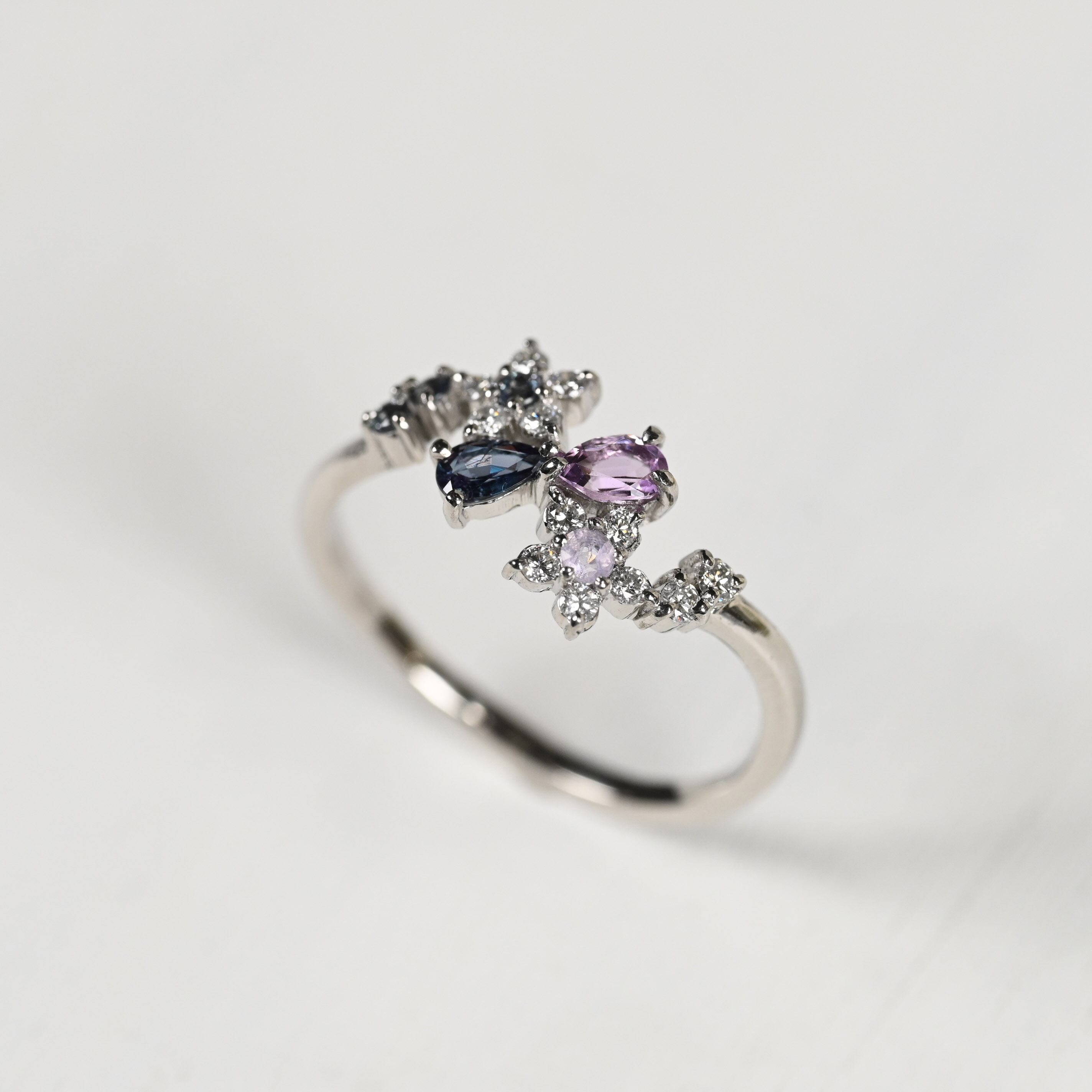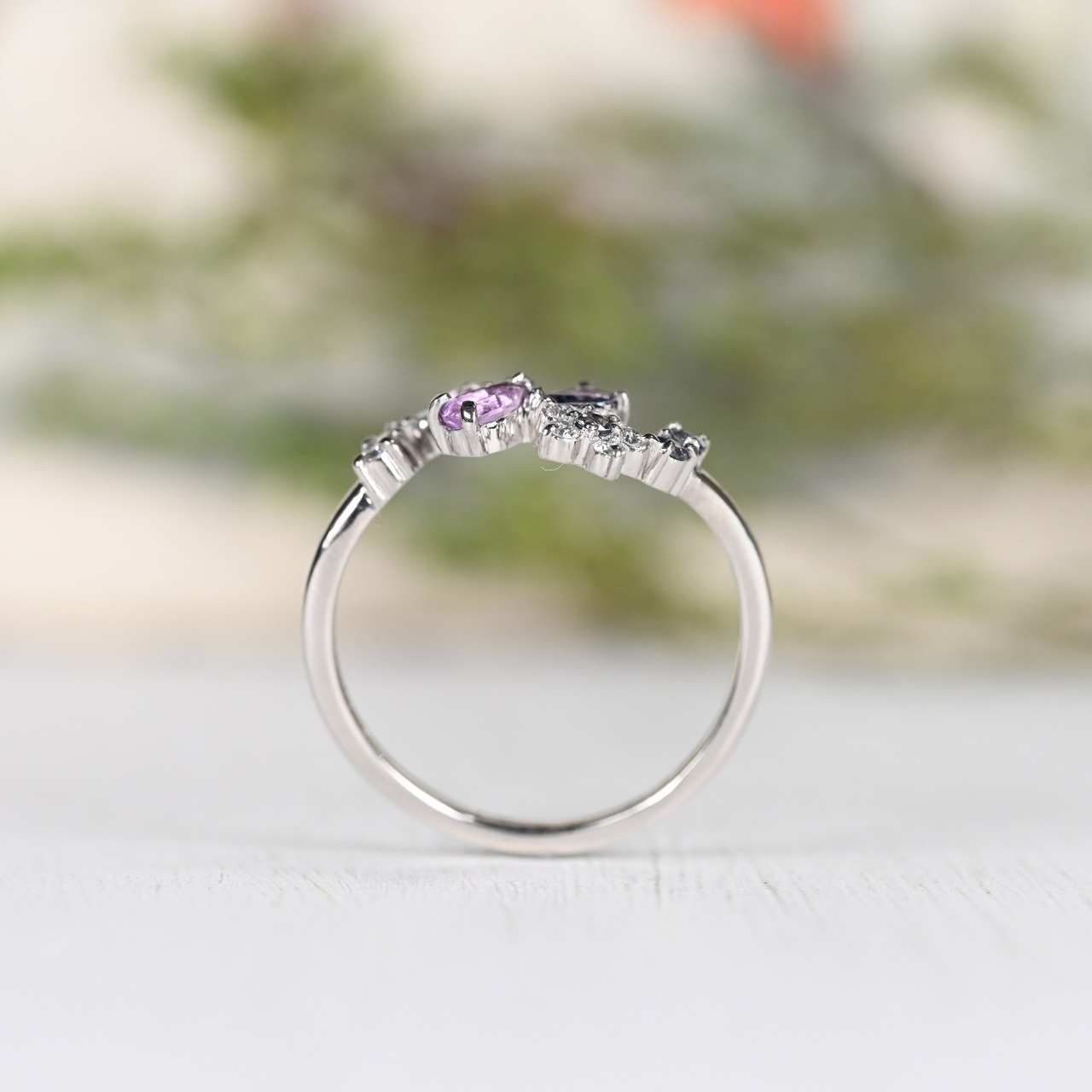 アレキサンドライトの方にはお花の中心と脇石にもあしらいさらに特別感アップ