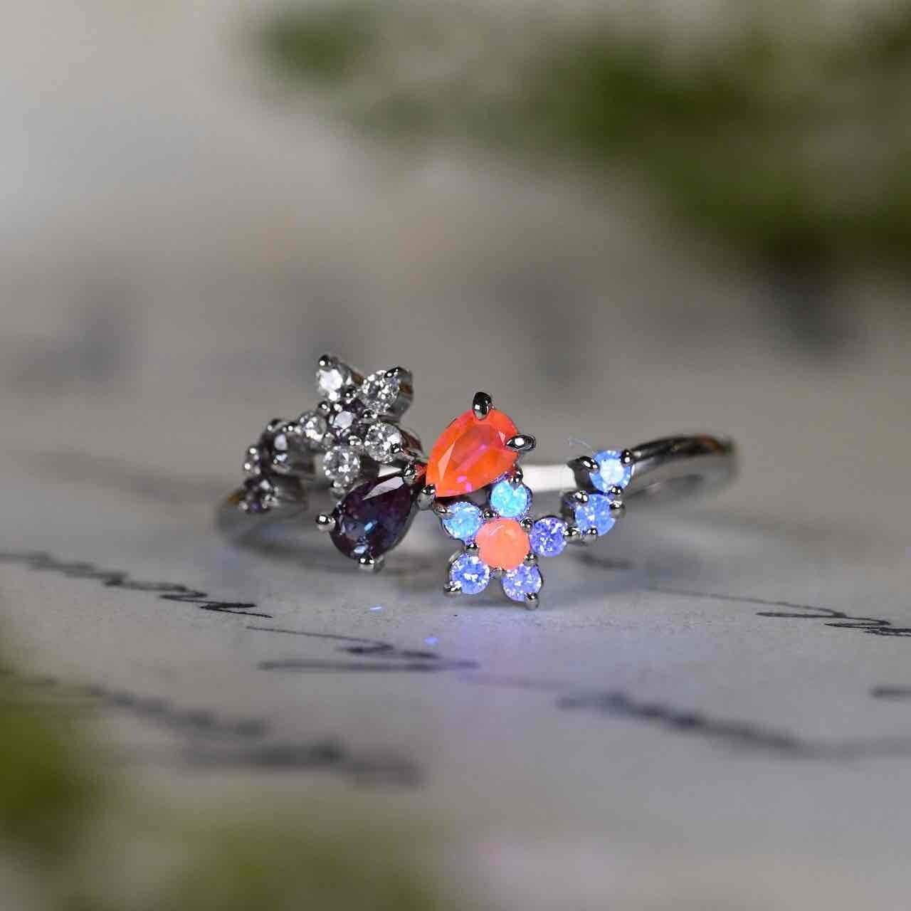 ブルーライトで蛍光し、色が変わる希少石『ハクマナイト』と光りでカラーチェンジする希少石『アレキサンドライト』という魅力的なお石たちを贅沢に使いました♪