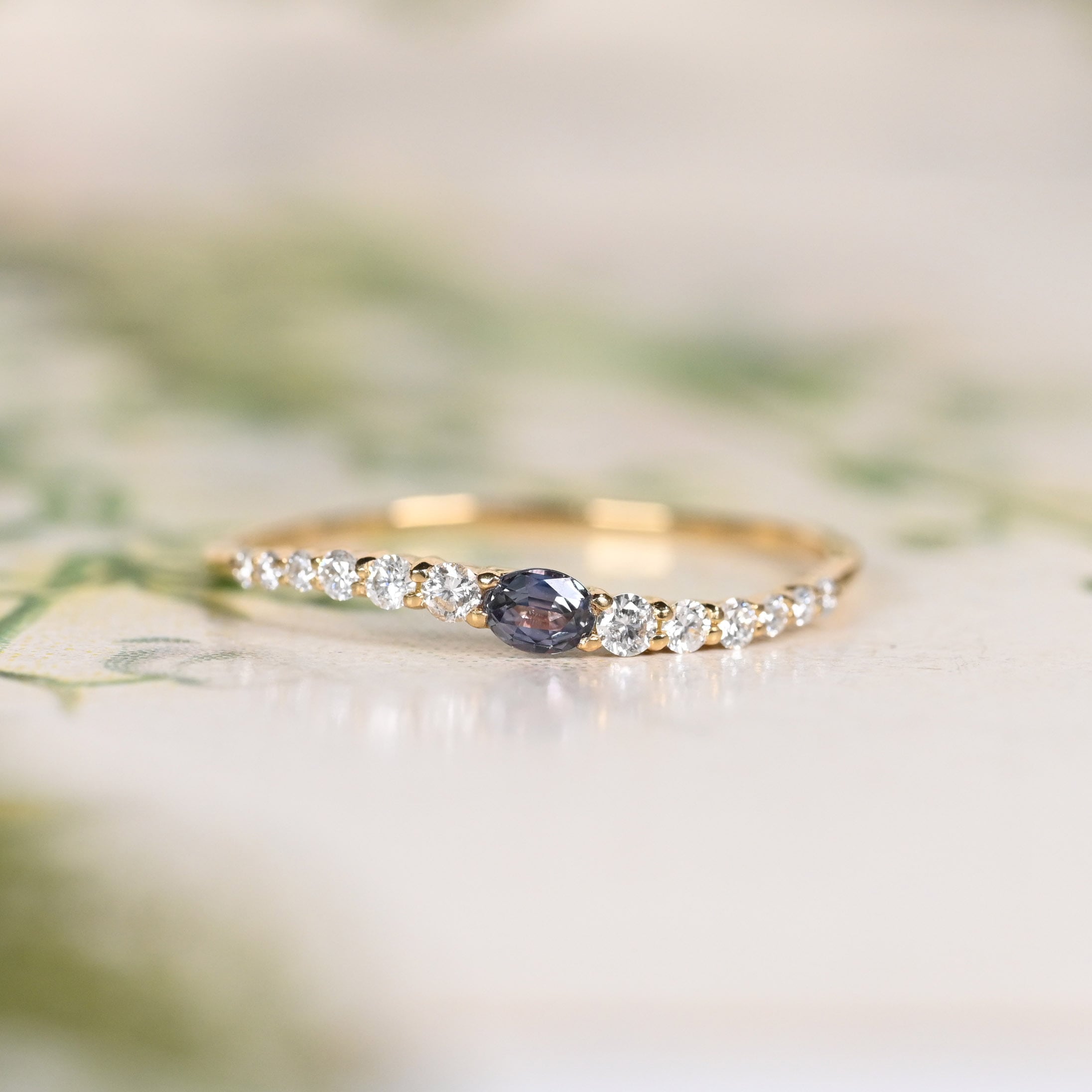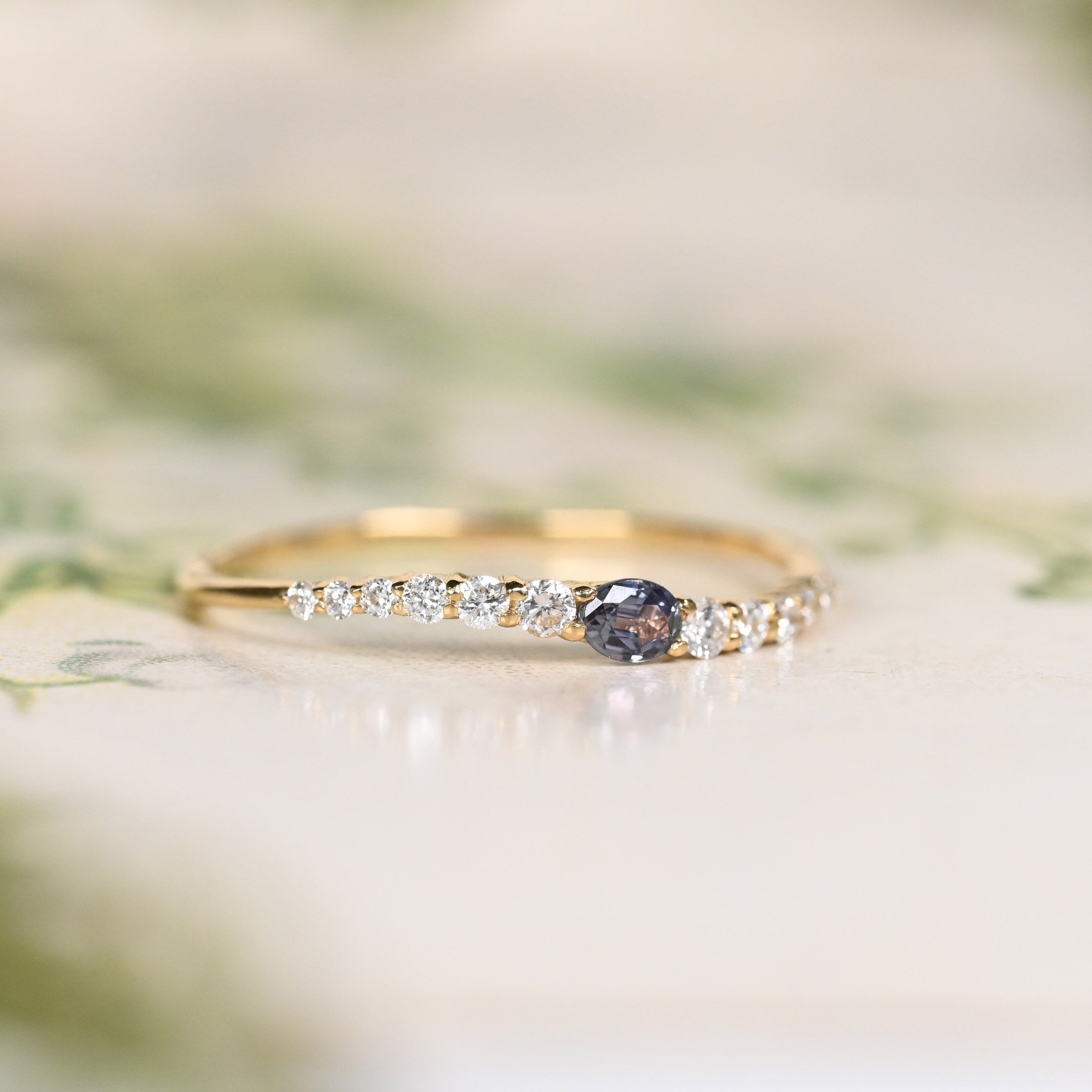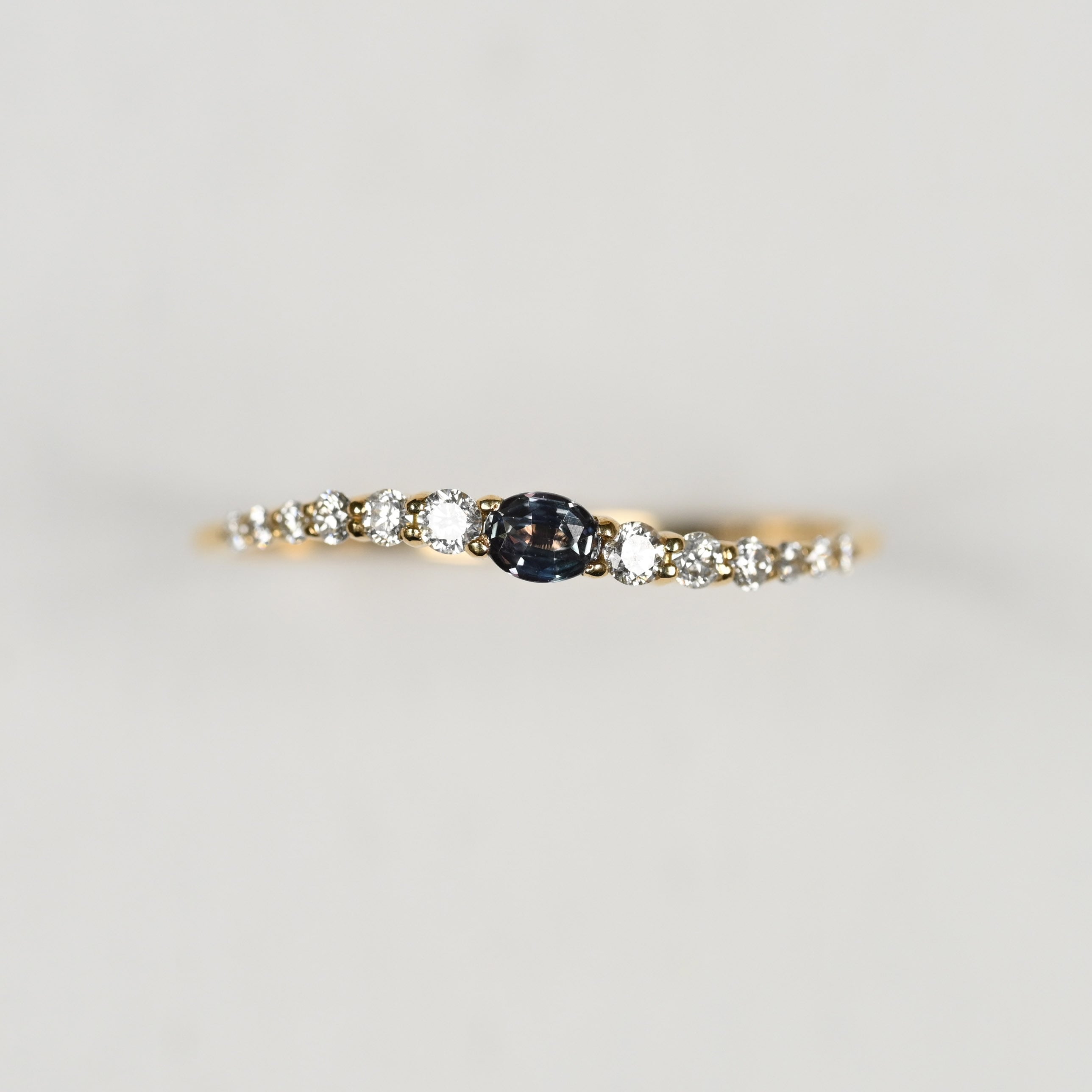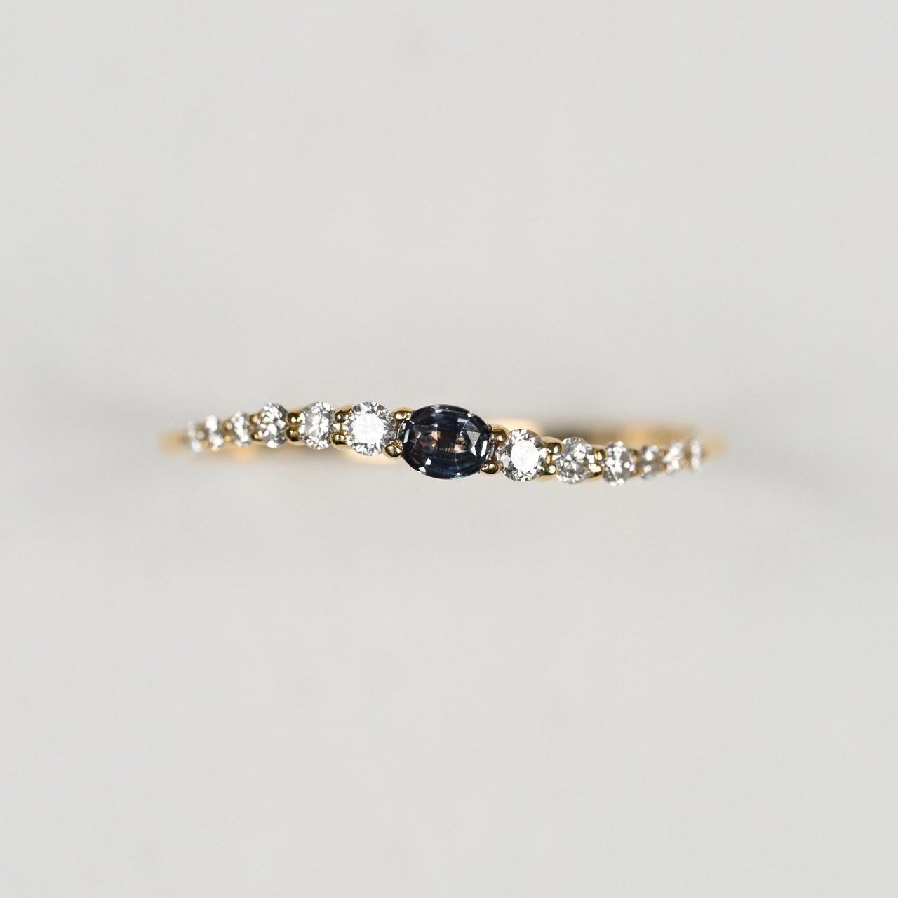 アレキサンドライト自体と指に添うダイヤモンドのラインの美しさを両方楽しめるリングです