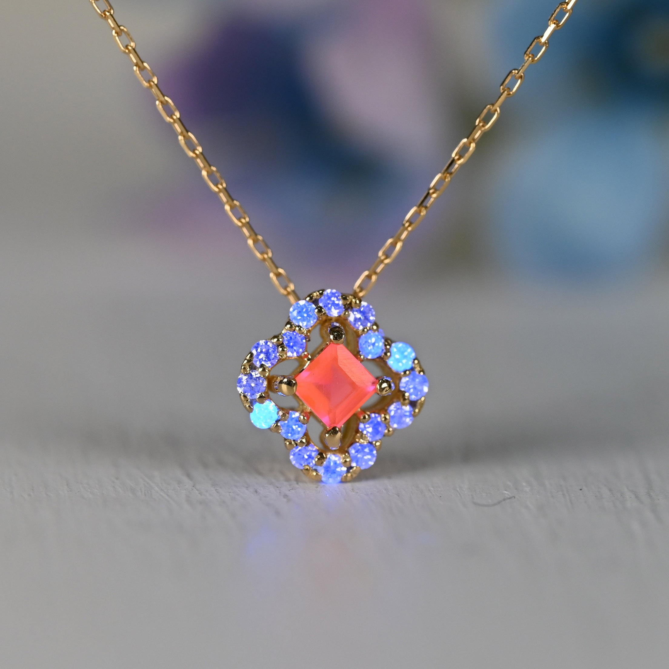 お石を囲むお花のようなダイヤモンドの縁取りデザイン『Fiorettaフィオレッタ』のネックレス