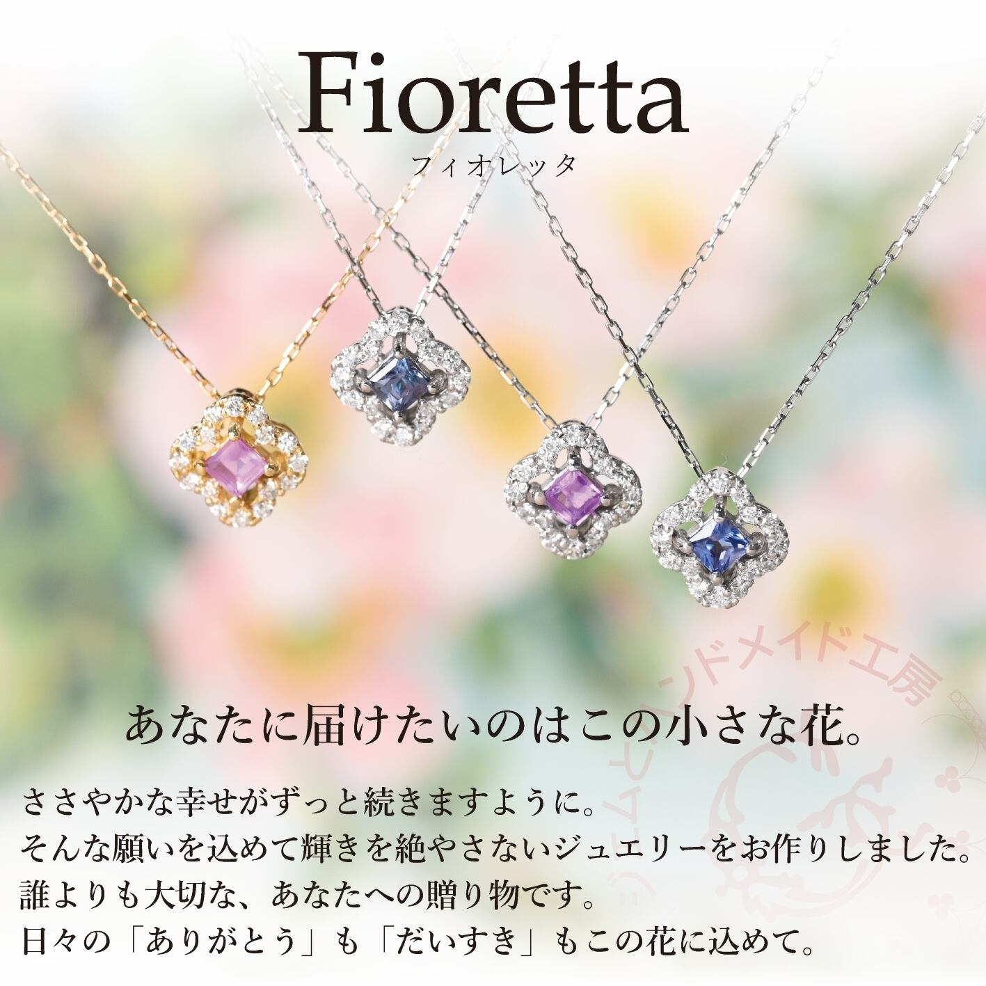 お石を囲むお花のようなダイヤモンドの縁取りデザイン『Fiorettaフィオレッタ』のネックレス