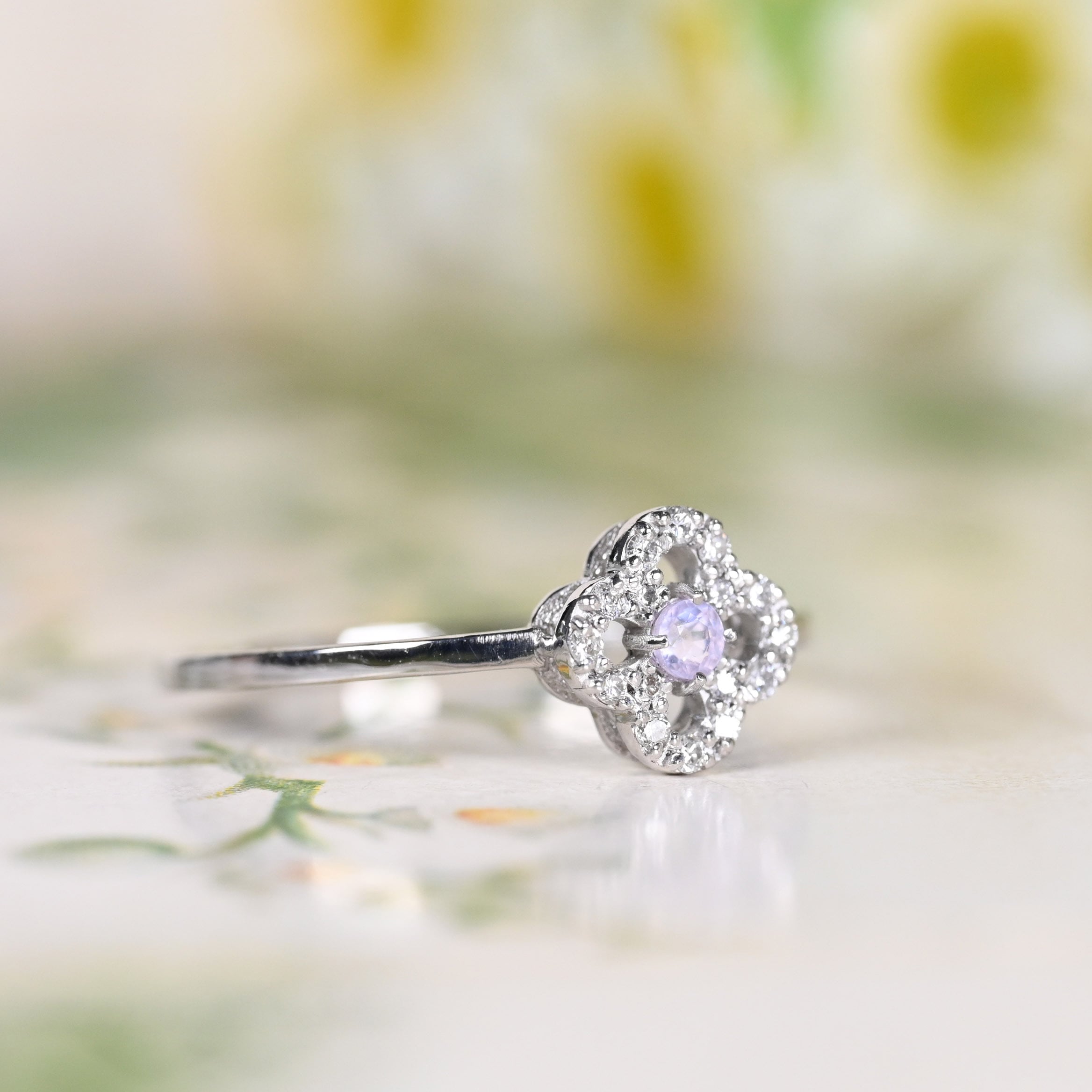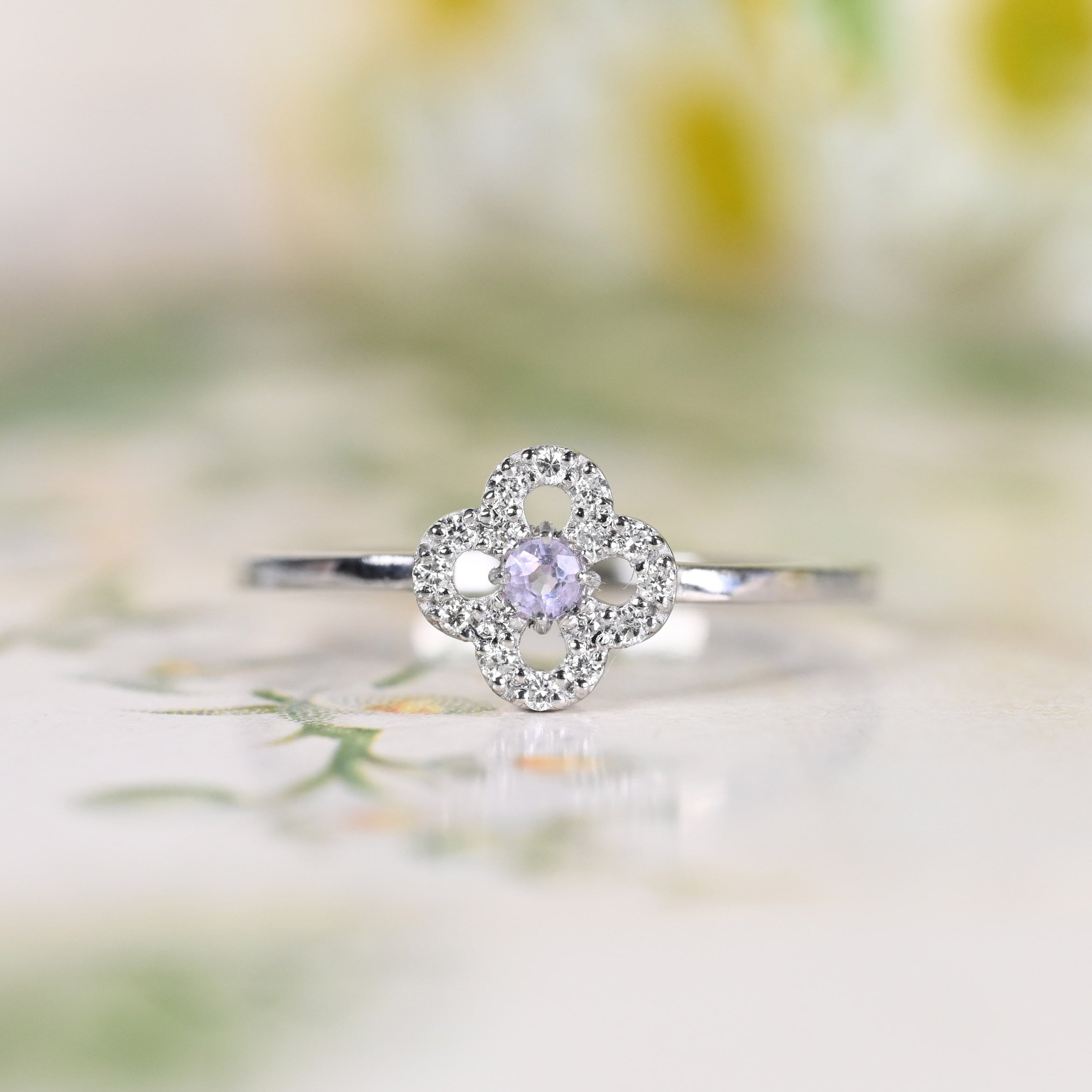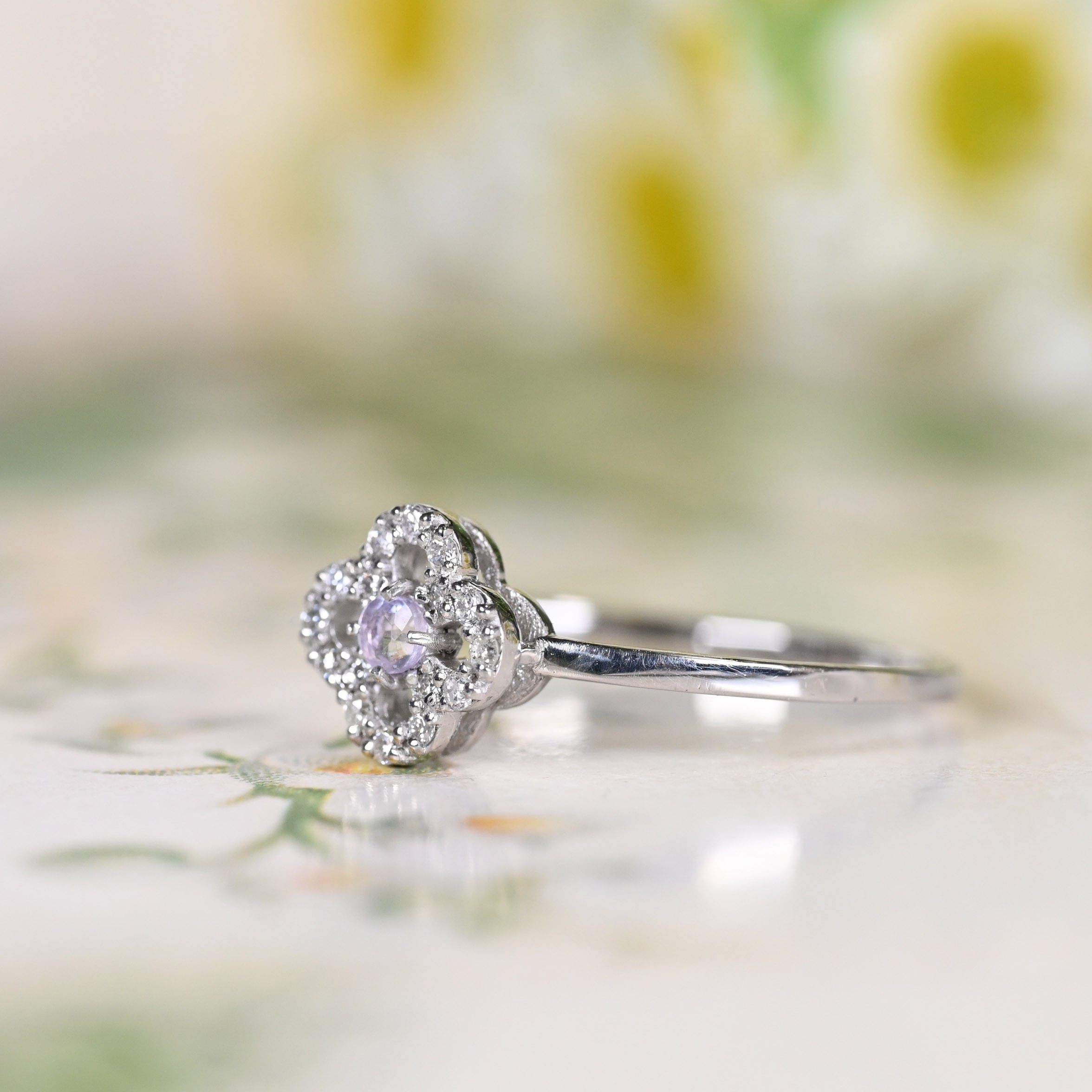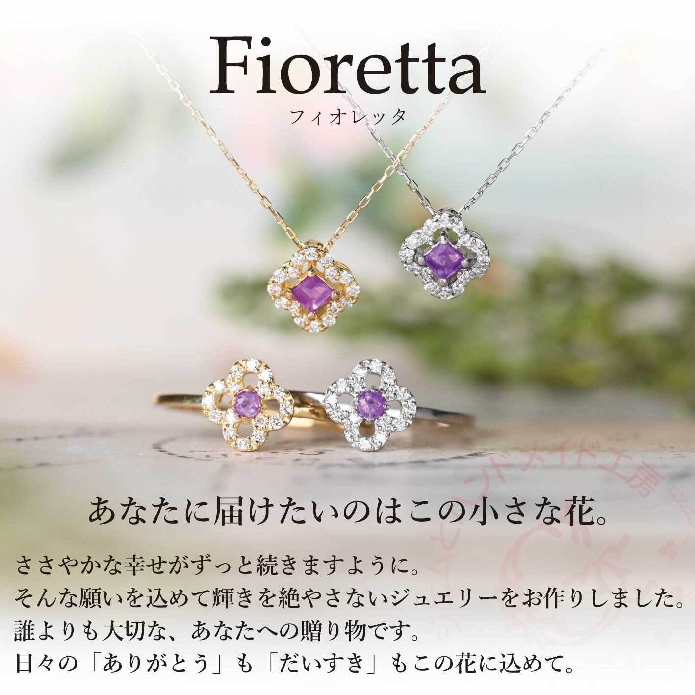 お石を囲むお花のようなダイヤモンドの縁取りデザイン『Fiorettaフィオレッタ』