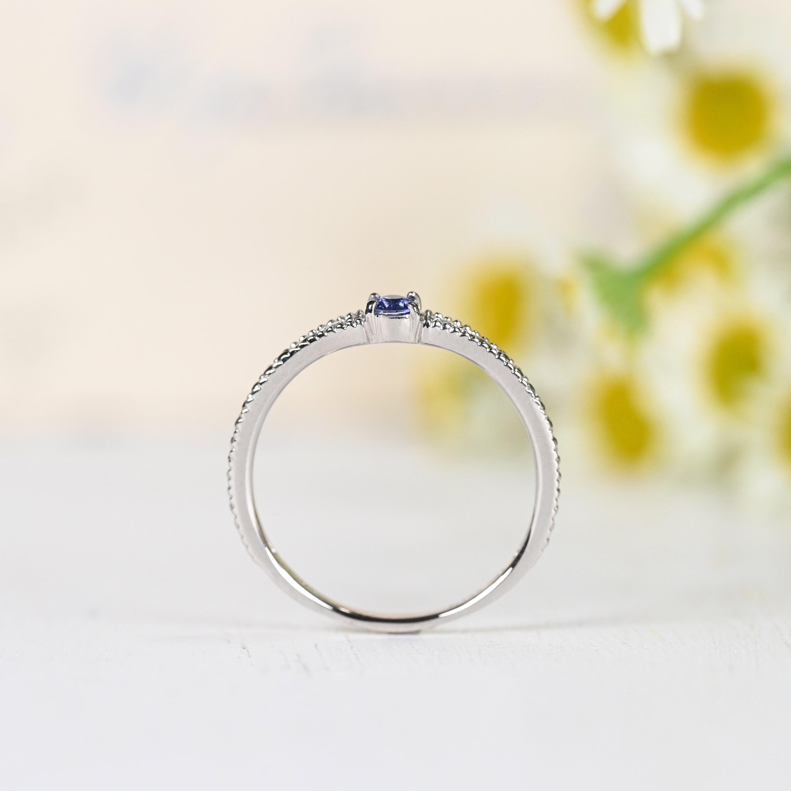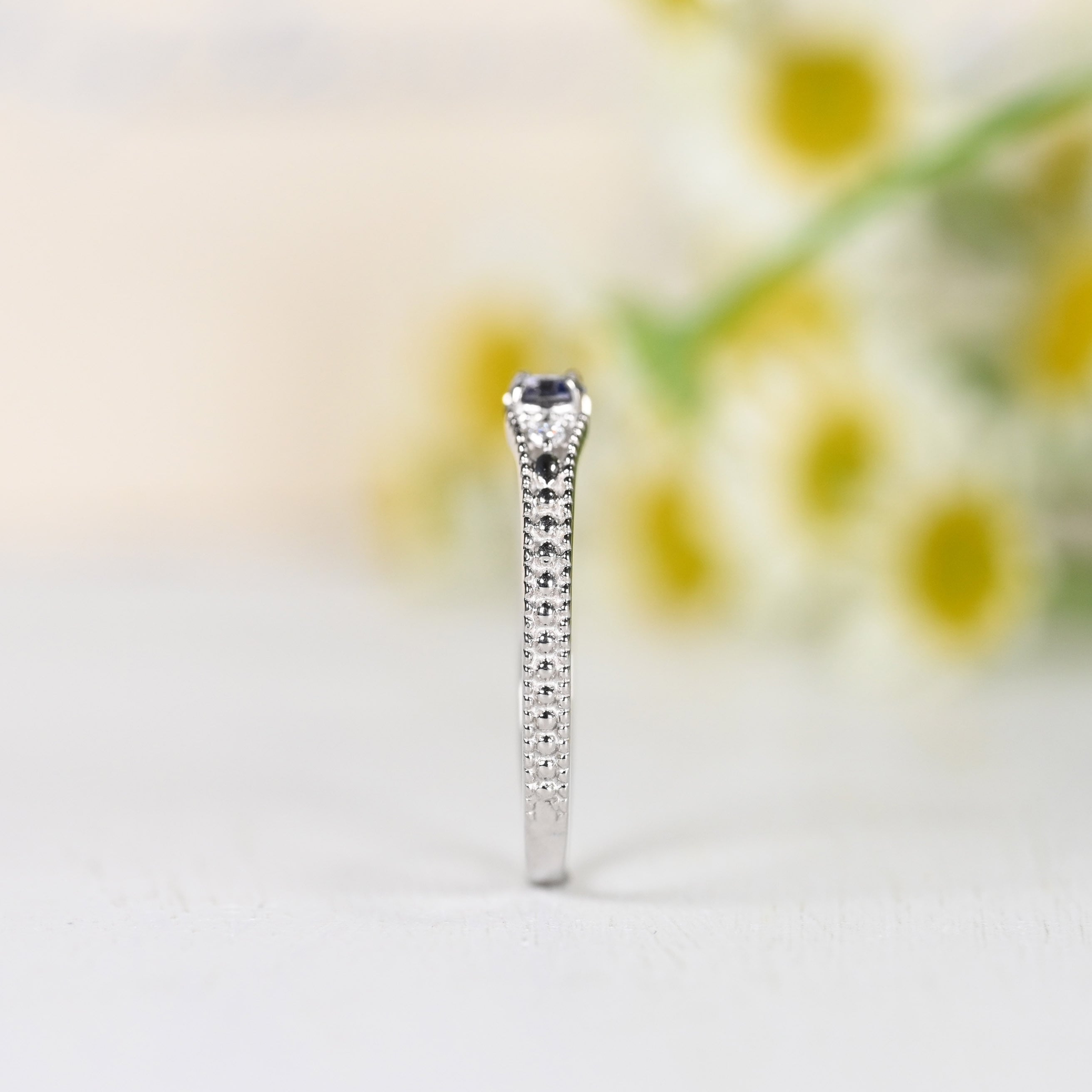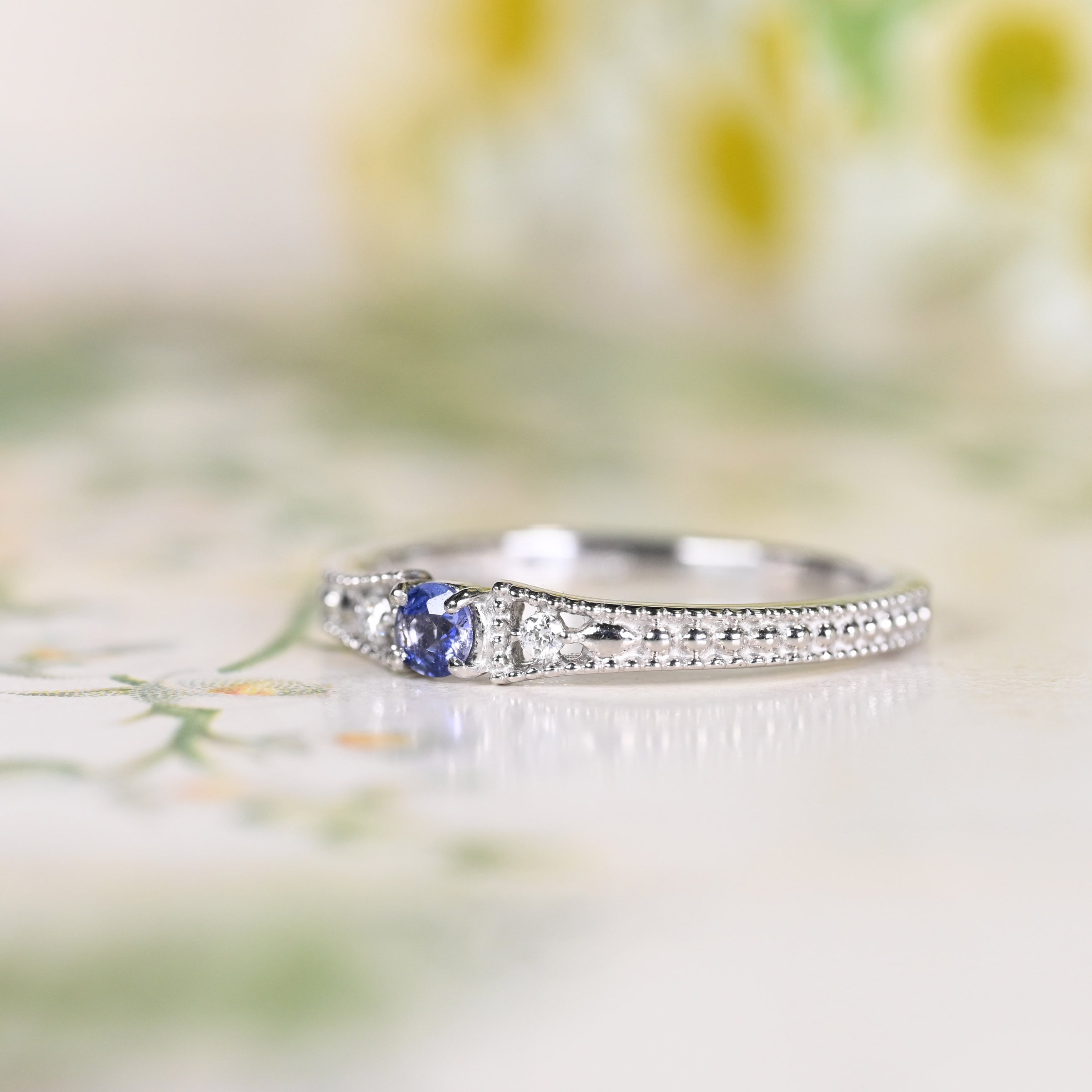 青紫色の美しいお石を地金しっかりめでミルのデザインが印象的なリングでお作りしました♪