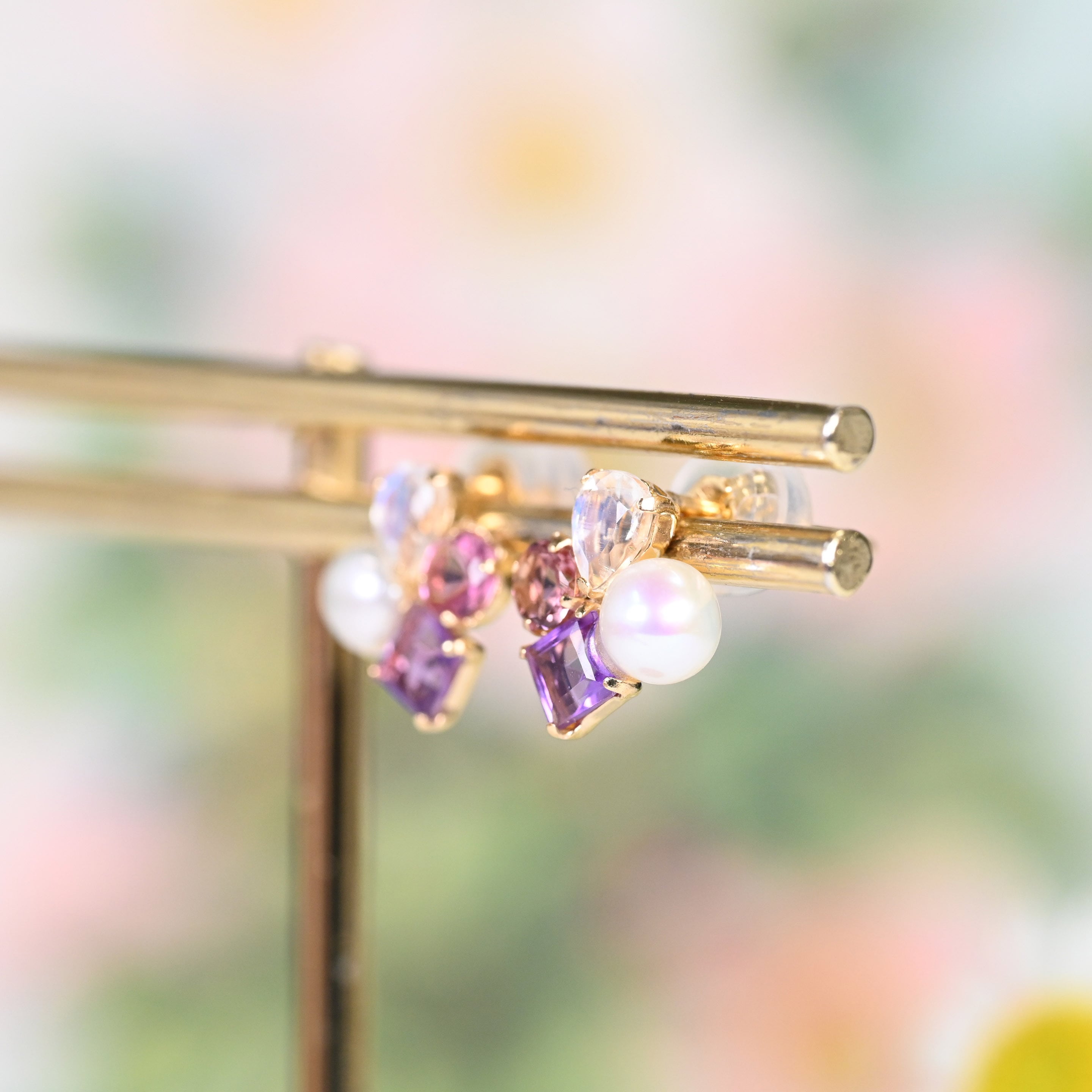♡♥マルチストーンピアス(レディ・パール) K18YG(GH3188)♥♡