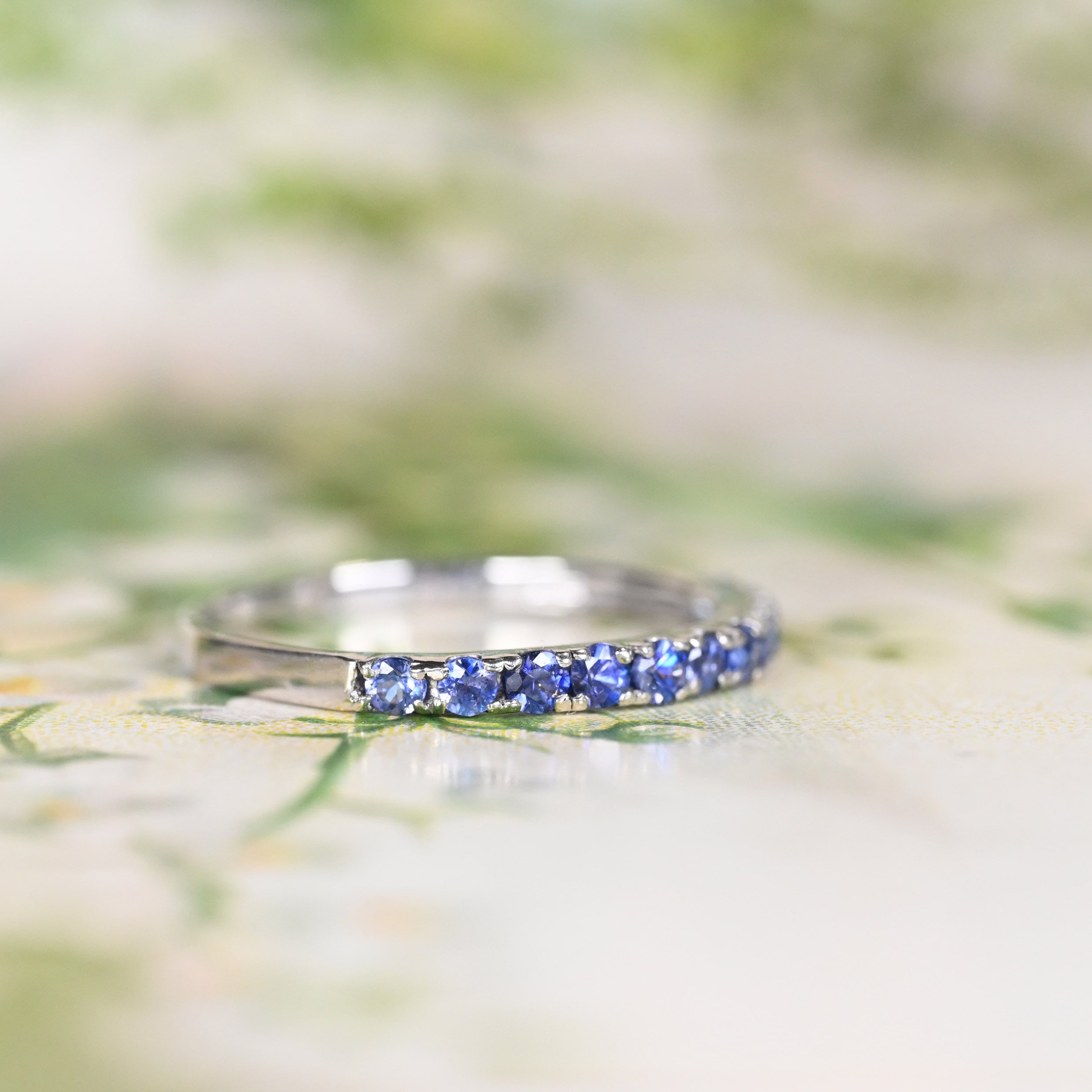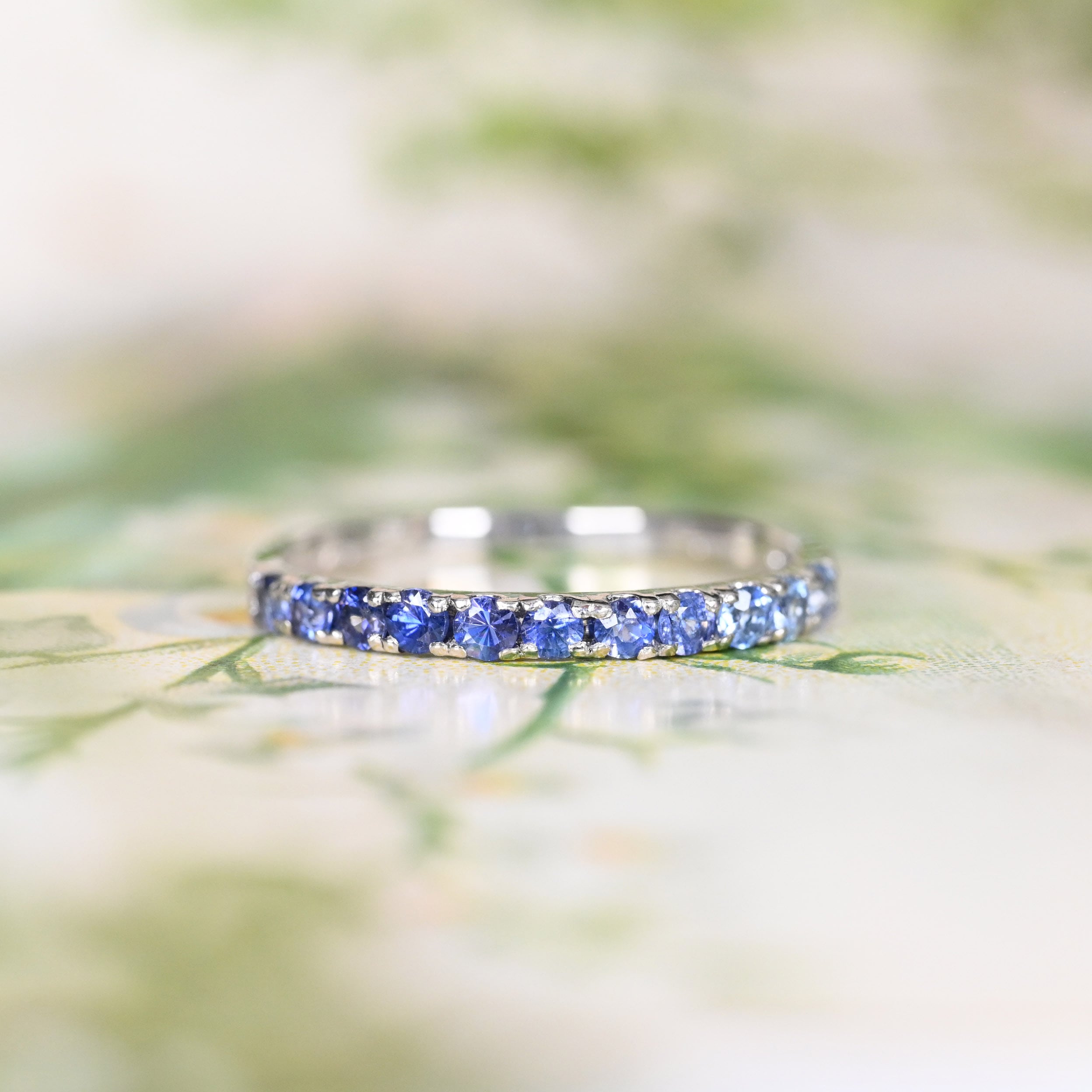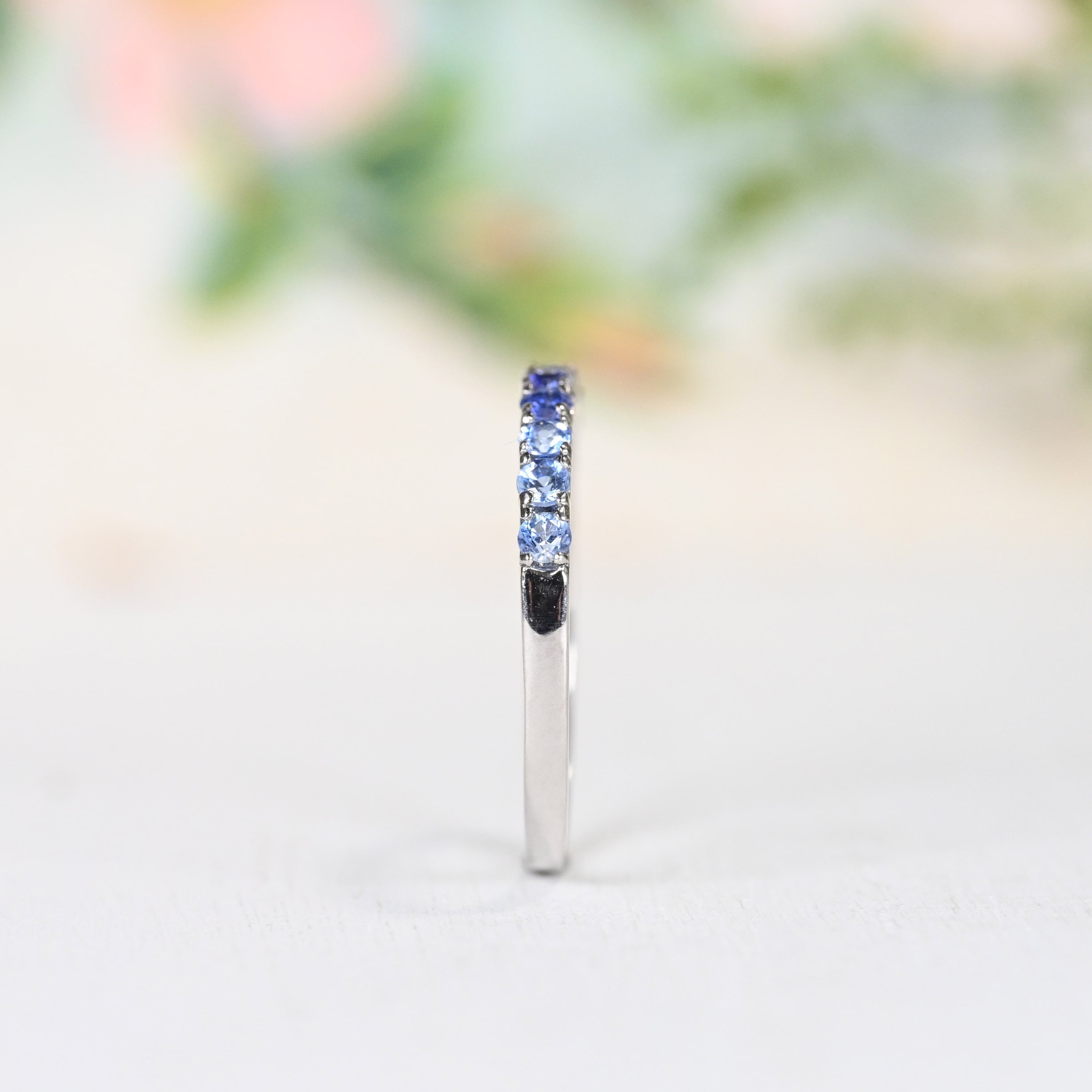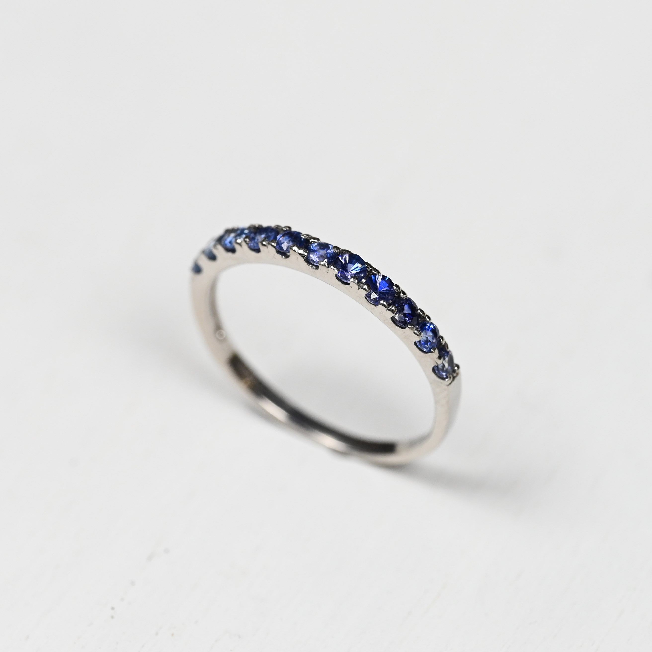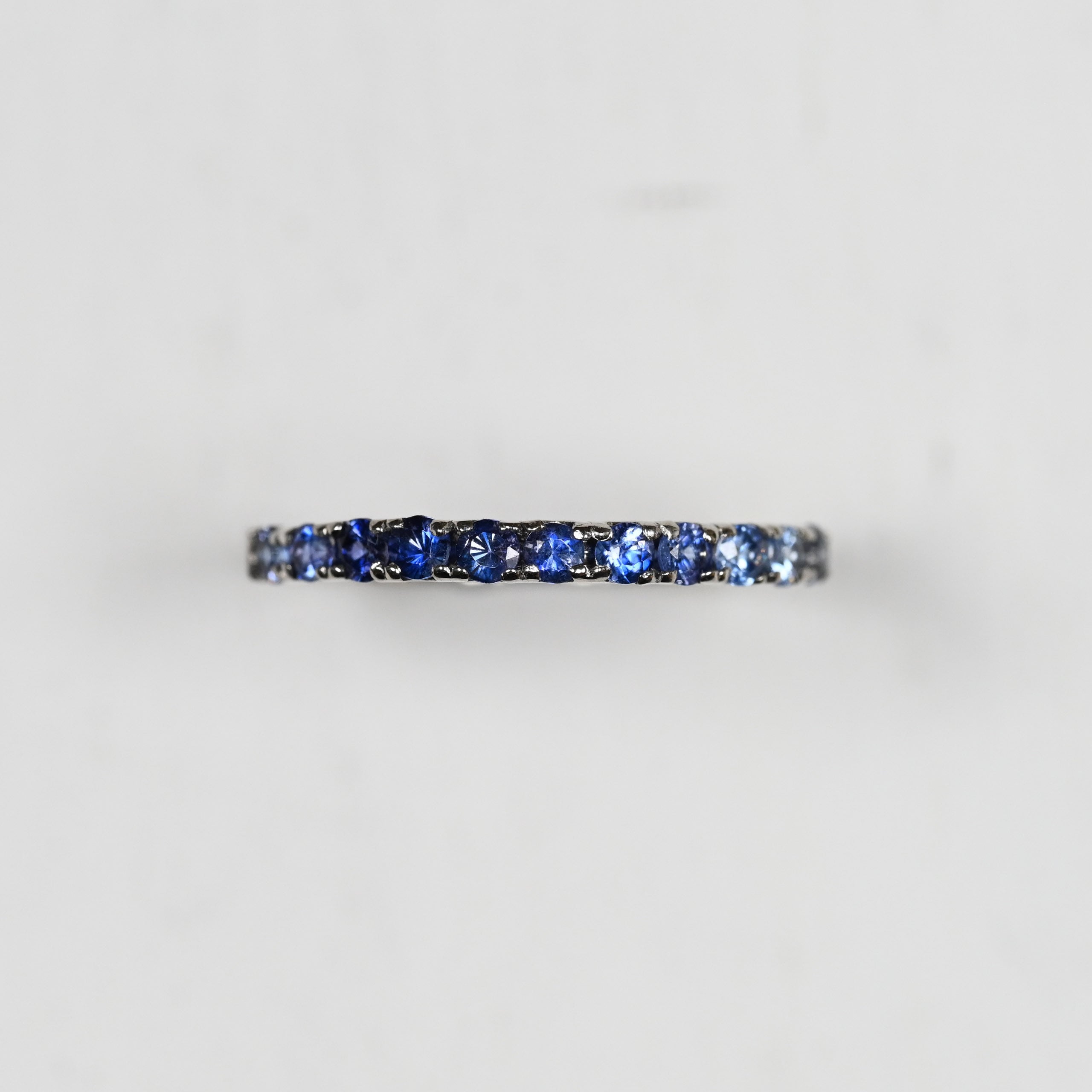 淡い青紫から濃い青紫へのグラデーションで並べた贅沢なハーフエタニティリング