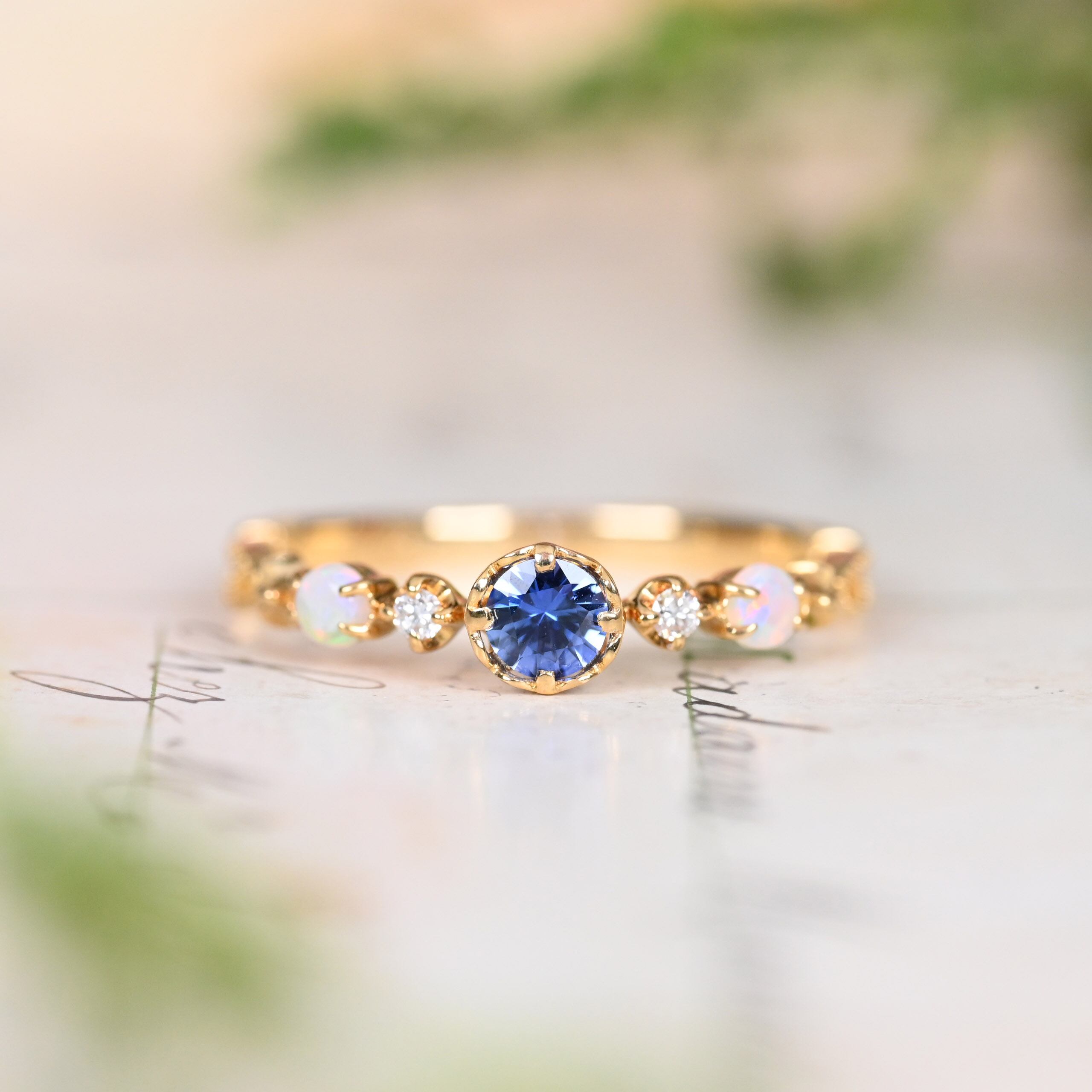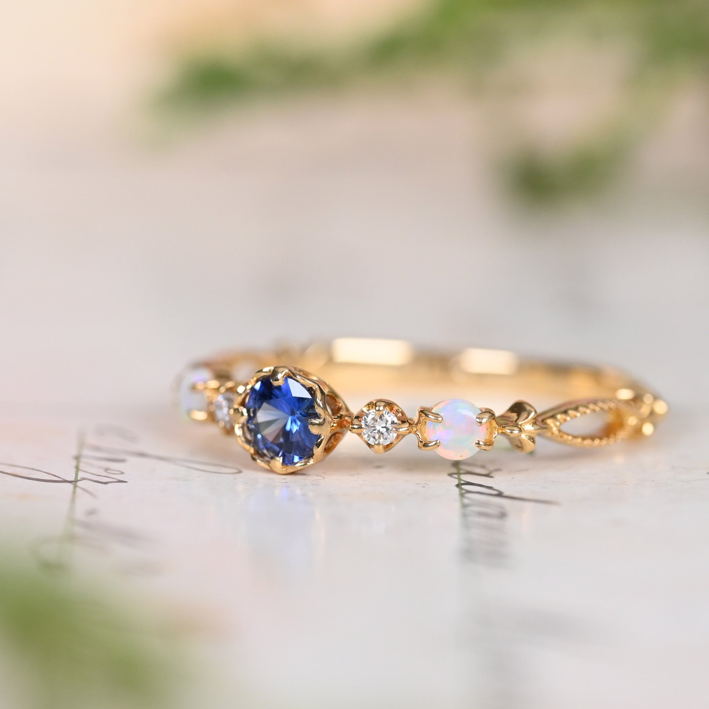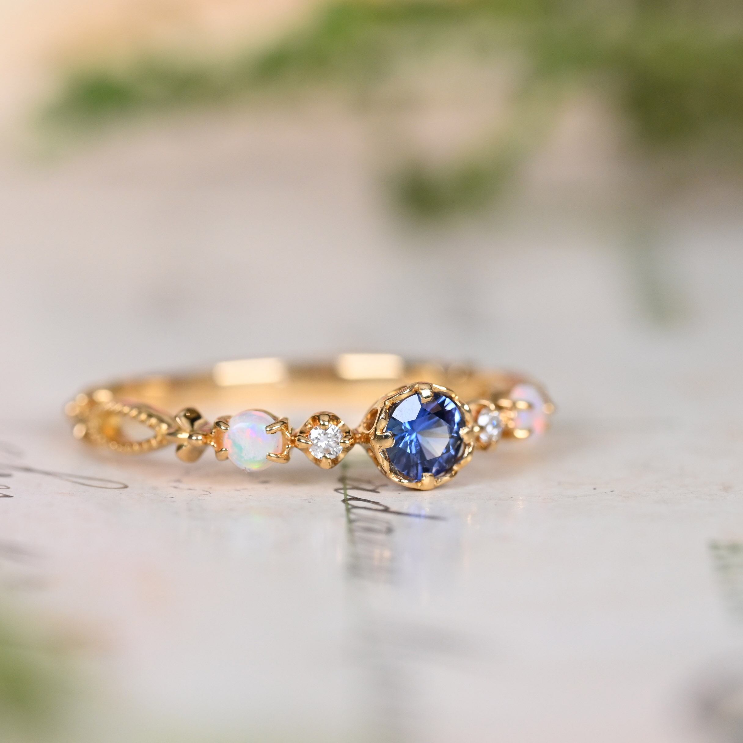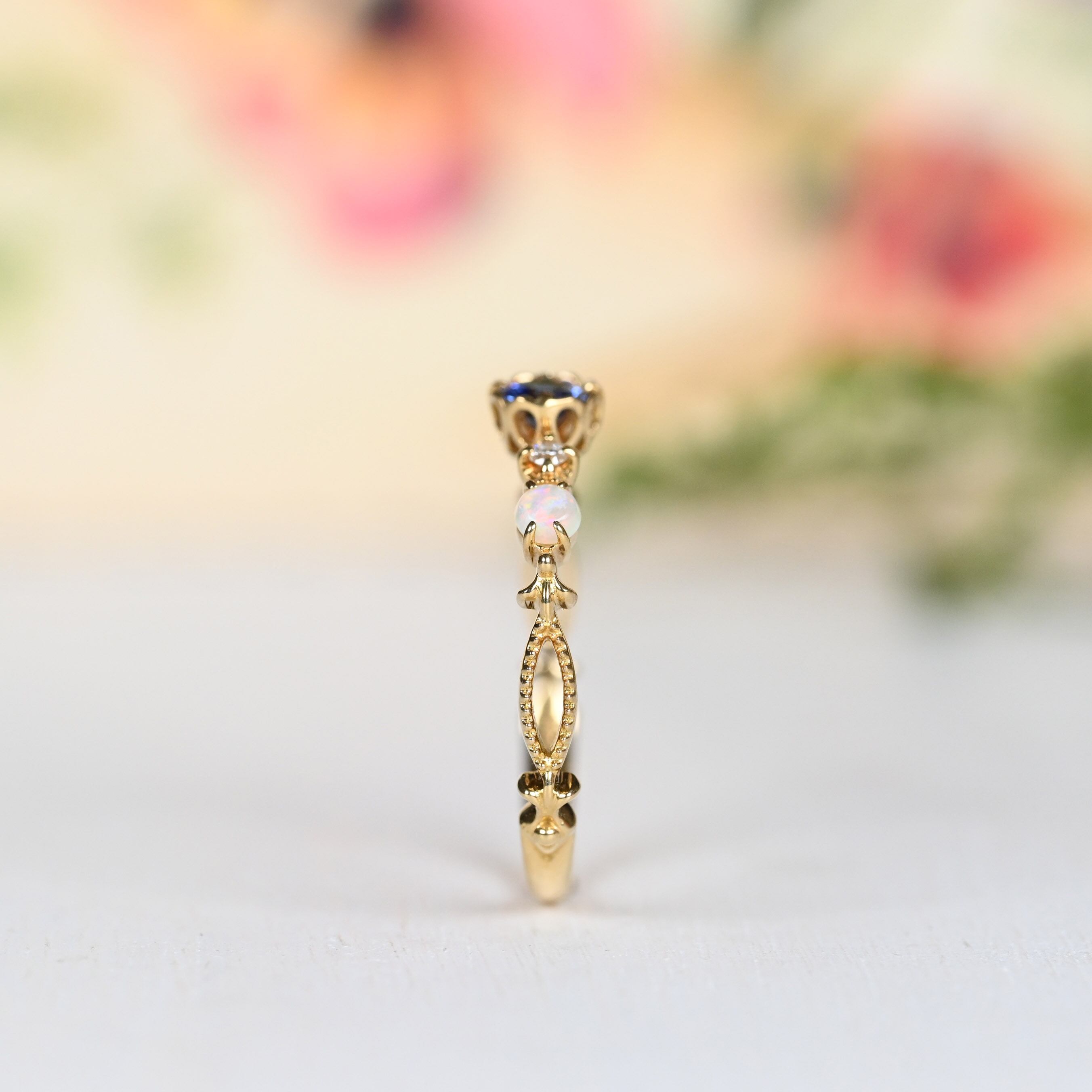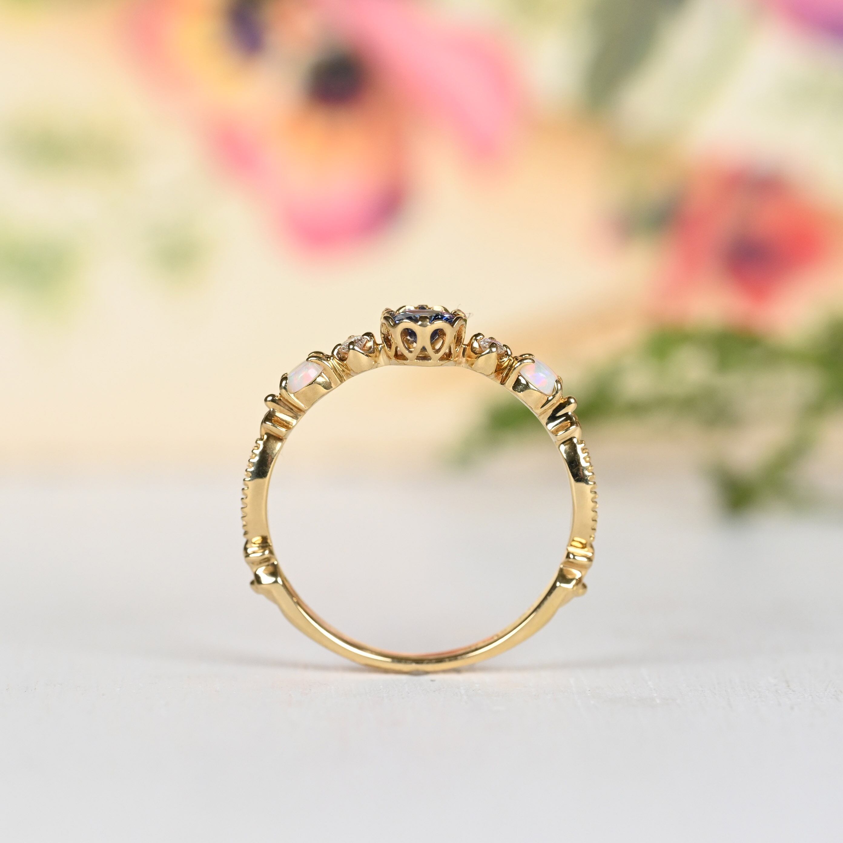 脇石にオパールの留まった珍しいデザインも魅力