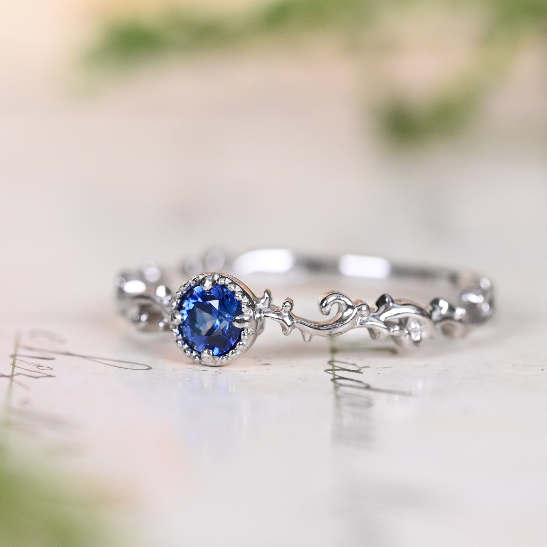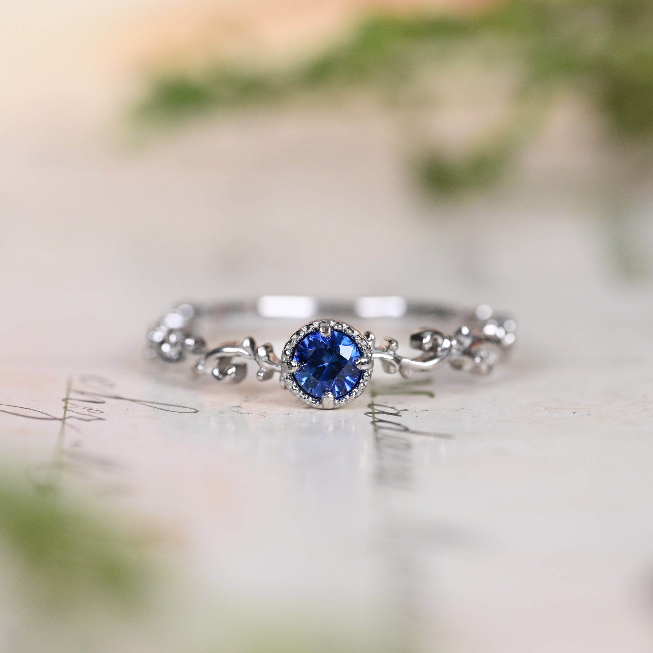 コーンフラワーブルーサファイア Pt900 リング 10号(GH1027アカンサス)