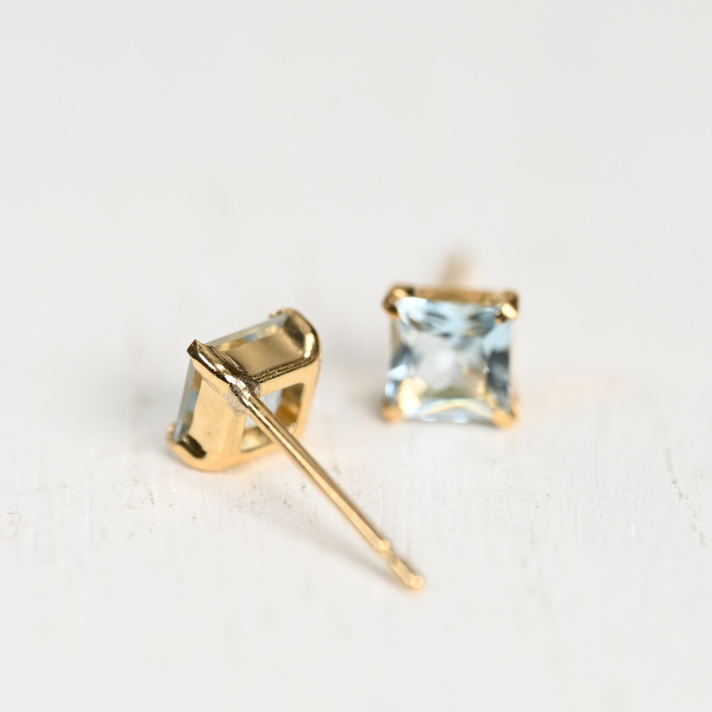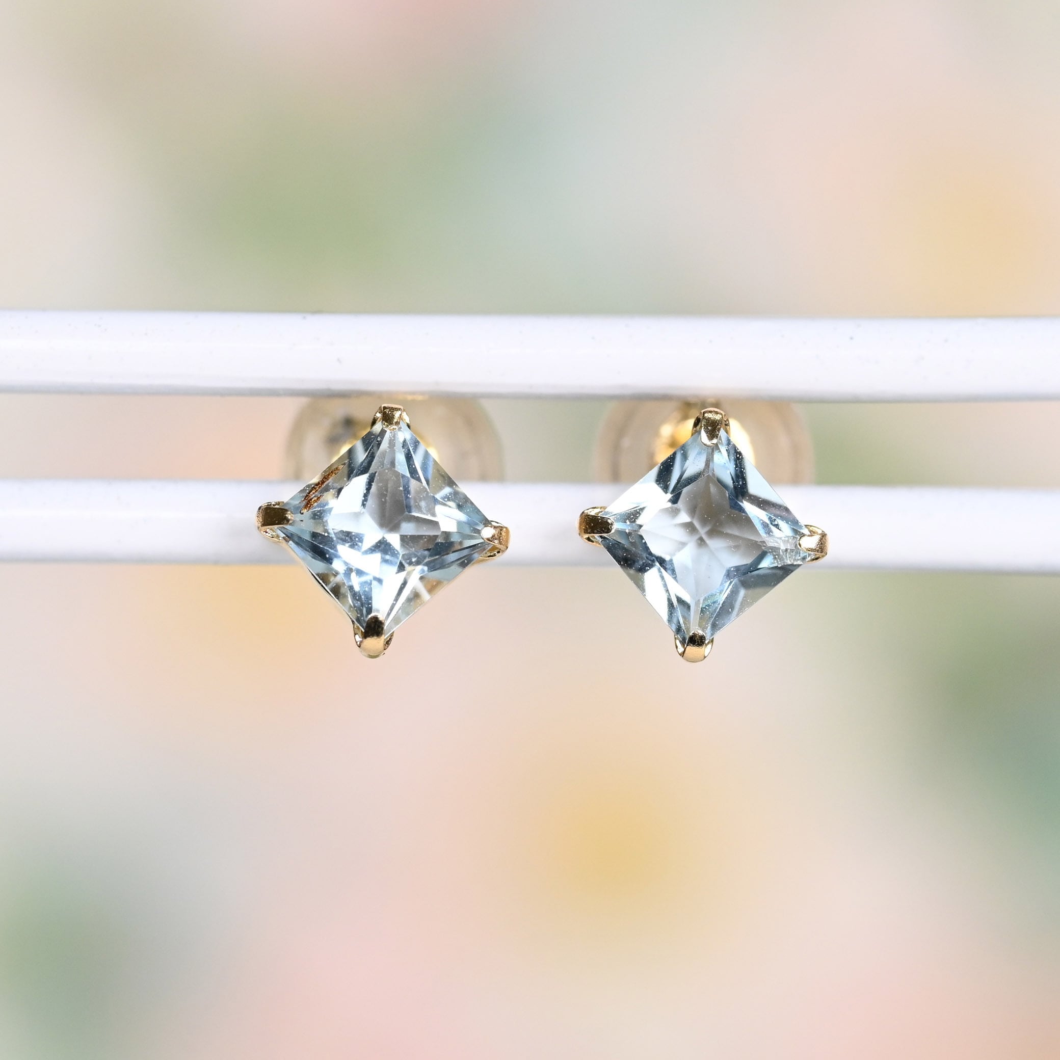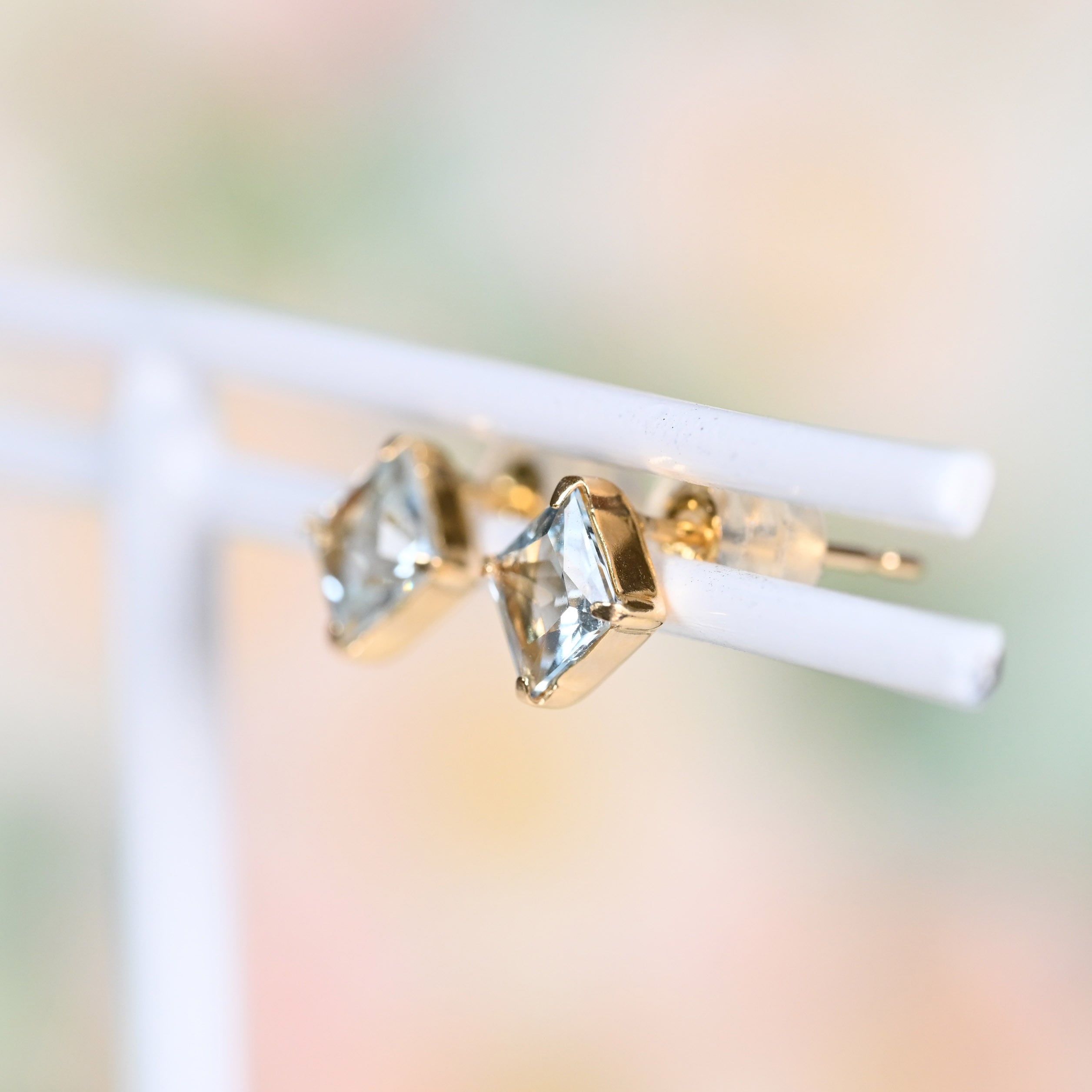 アクアマリン角ピアス K18YG(GH3162)