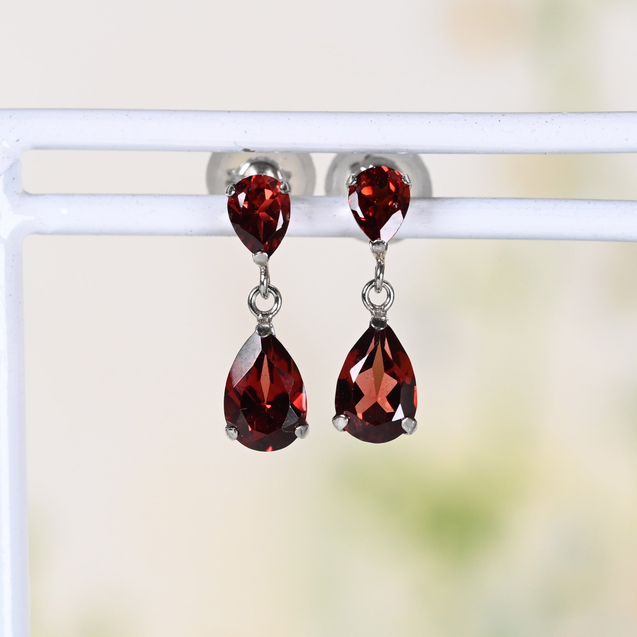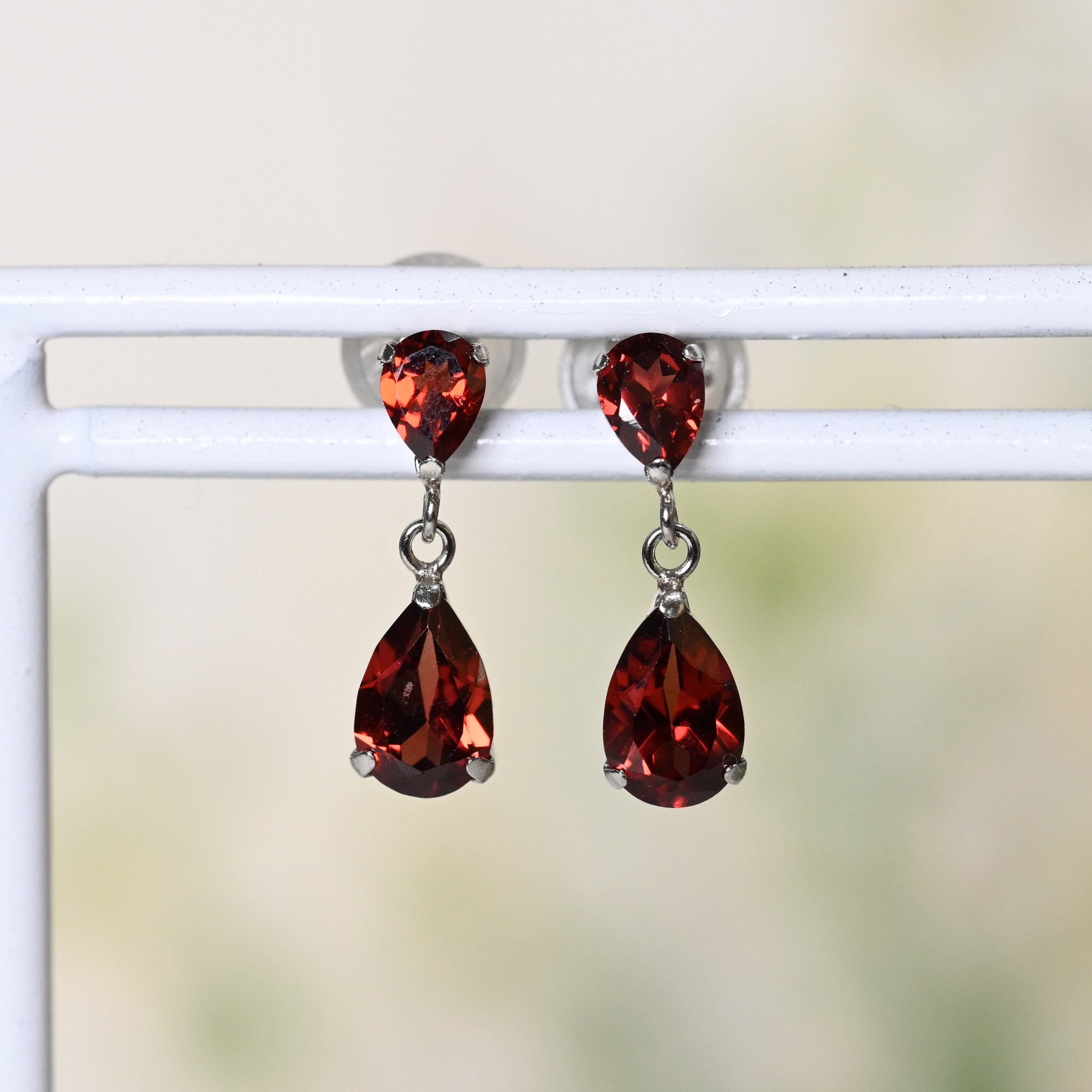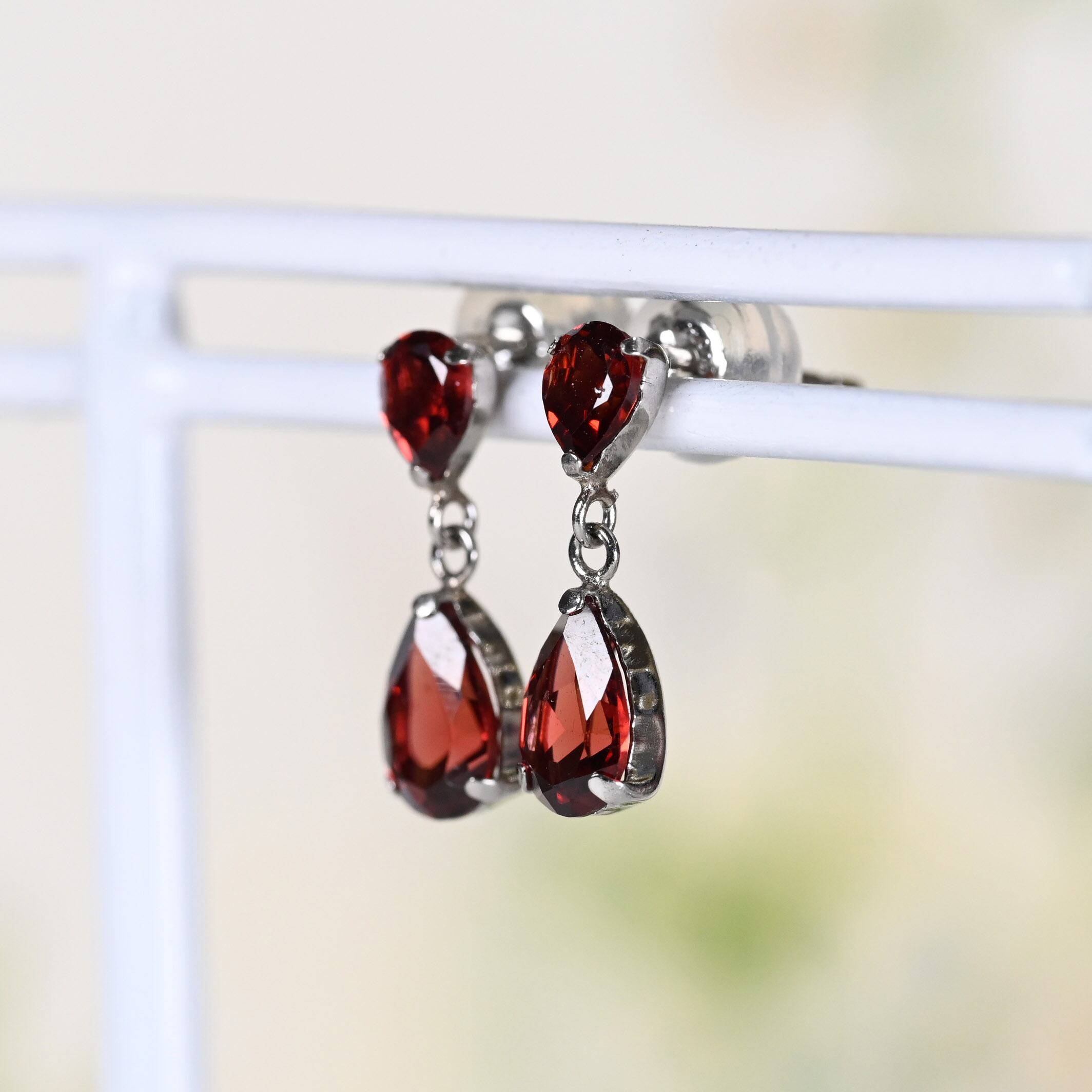 大小の雫型のガーネットを使ったピアス