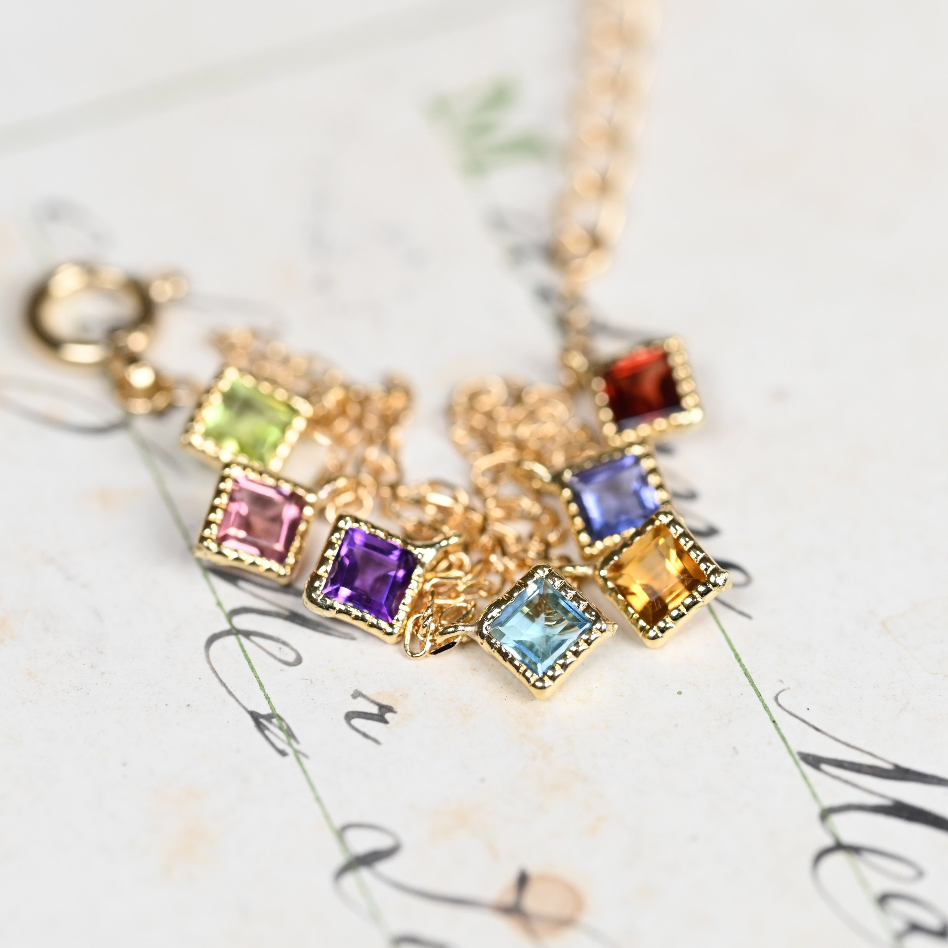 7石のお石が繊細に揺れるスウィング仕様のアミュレットブレスレット