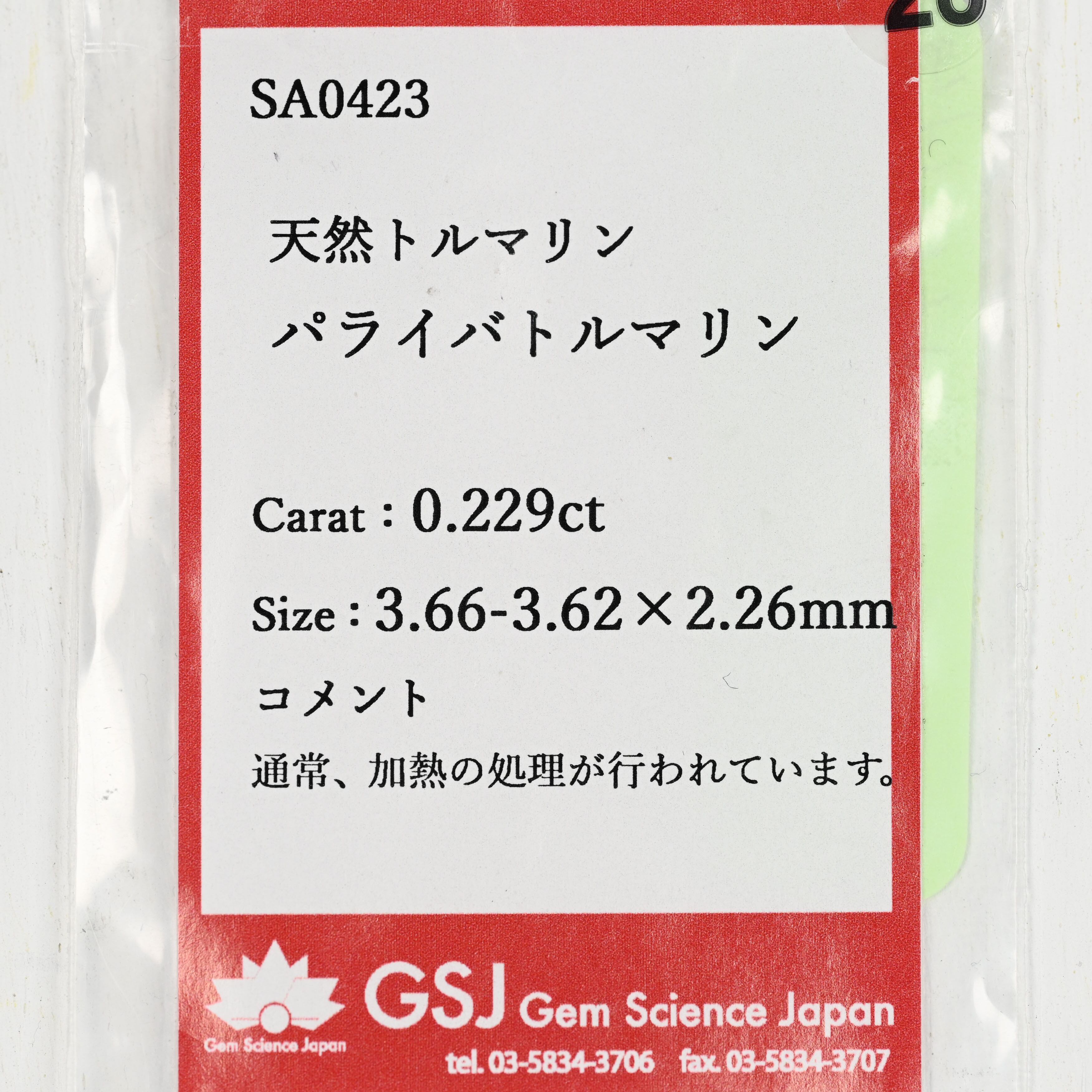 ☆お石:パライバトルマリン 0.229ct(スクエアカット)