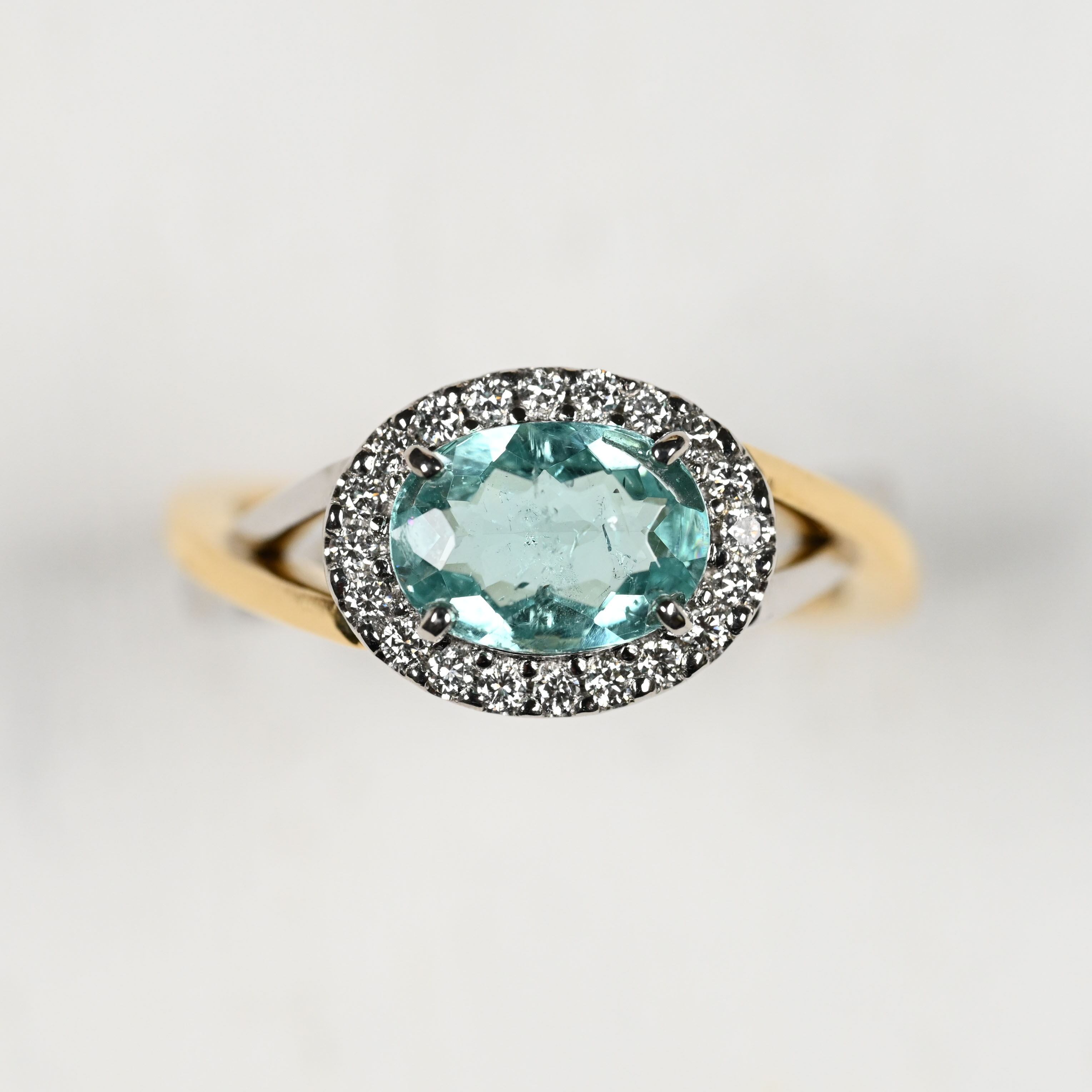 1ctの大きなパライバトルマリンをVSクラスの綺麗なダイヤモンドで取り巻き