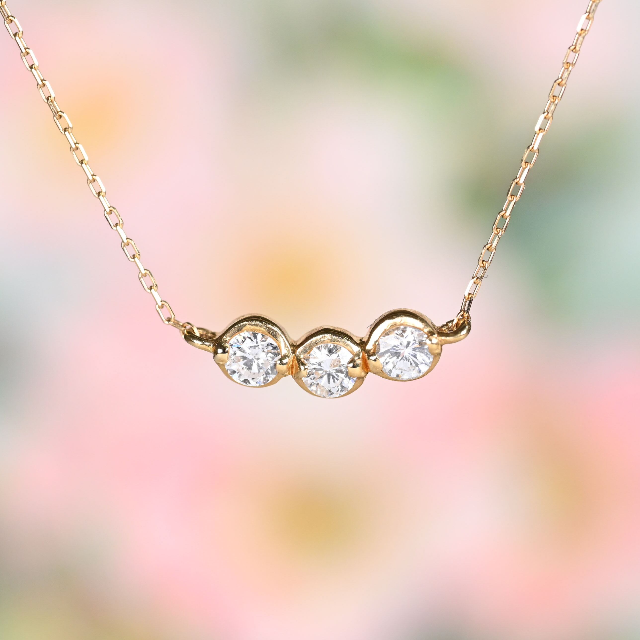 シンプルにダイヤモンドを三粒並べたネックレス