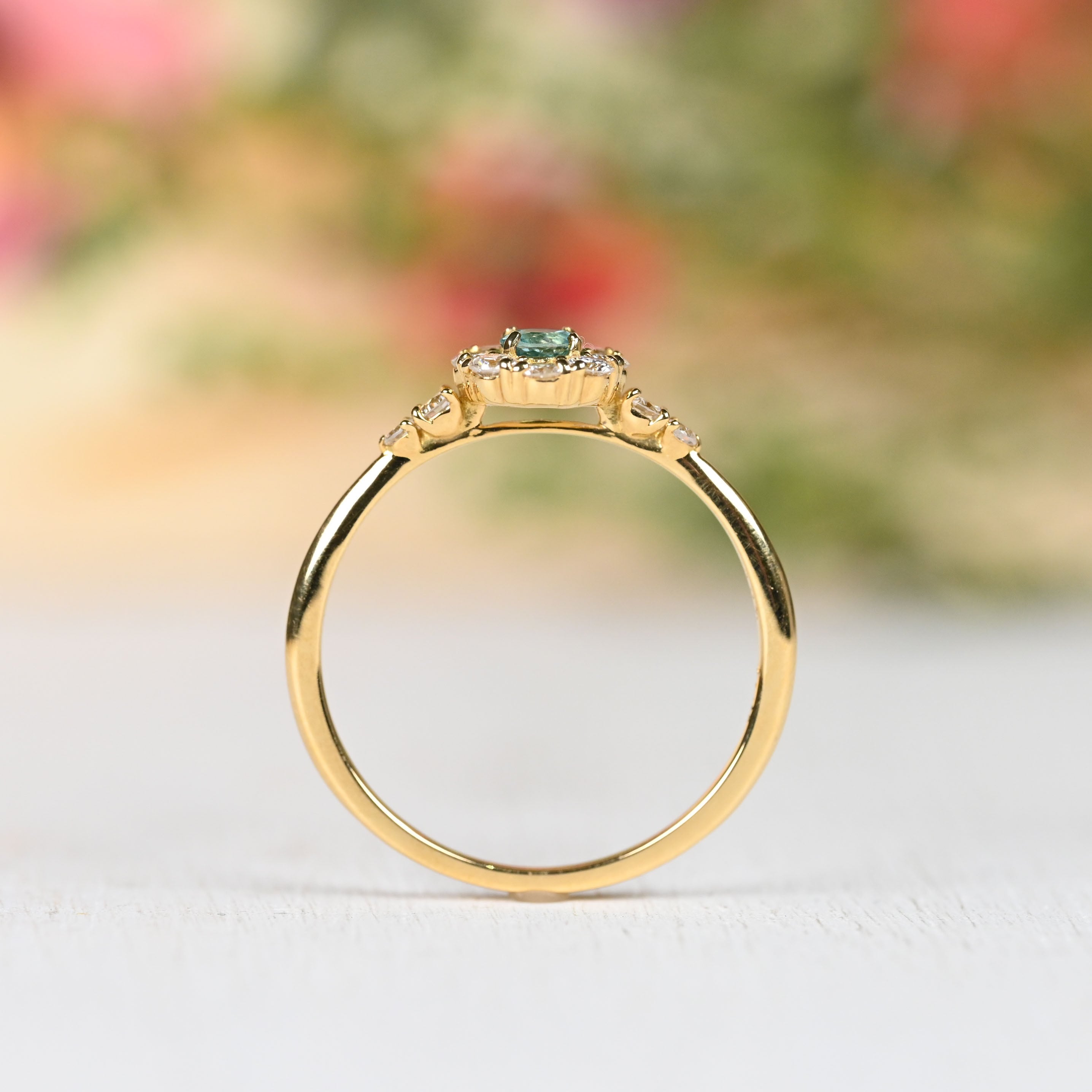ダイヤモンドの煌めきとシンプルなアーム部分のコントラストがきいた素敵なリングです