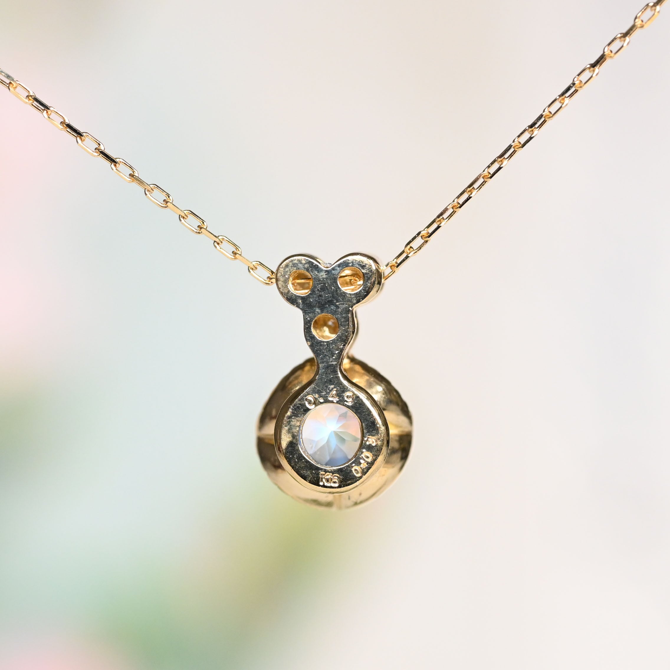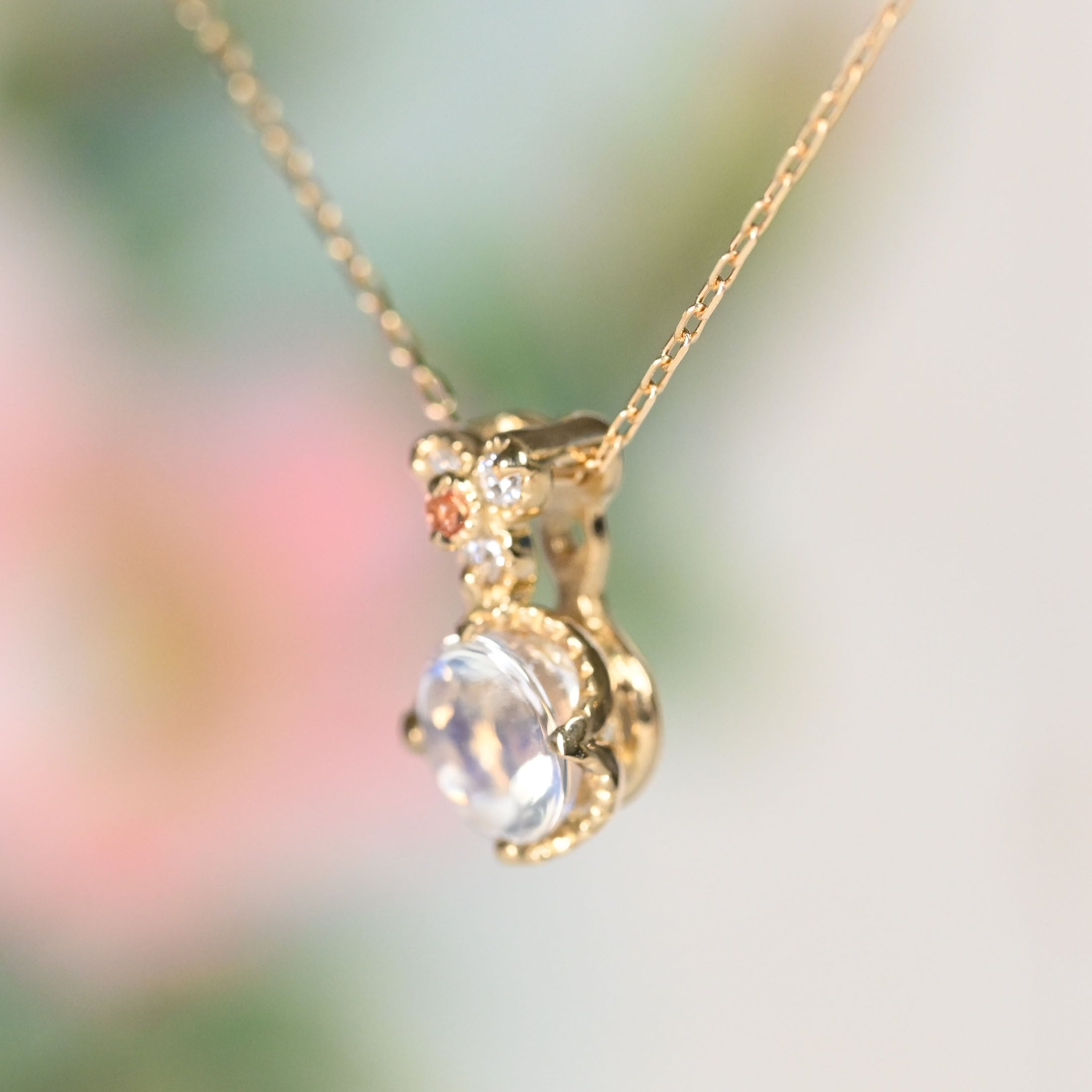 ●チェーン:アズキ(素材:K18YG・太さ-線形:約0.20mm・長さ(全体)約40cm・アジャスター3㎝)