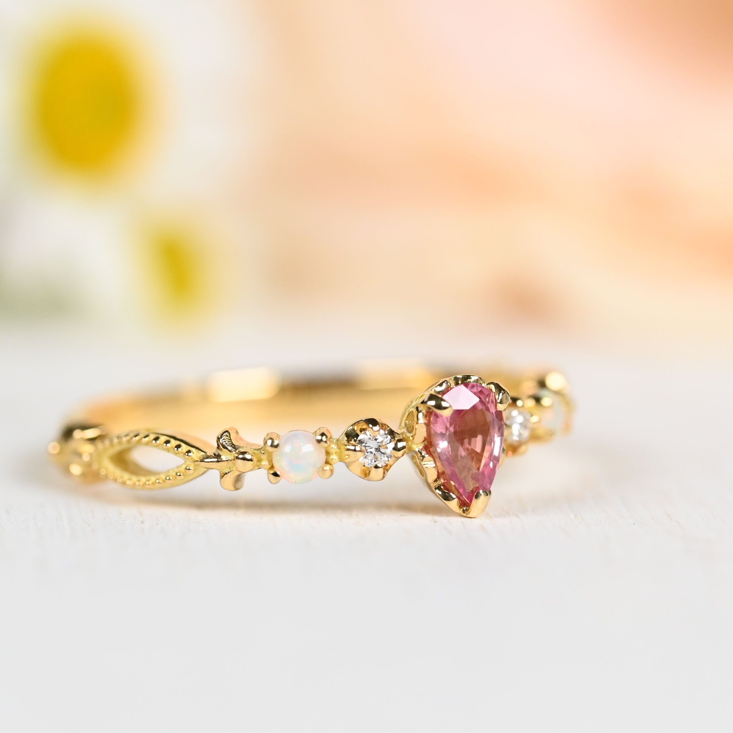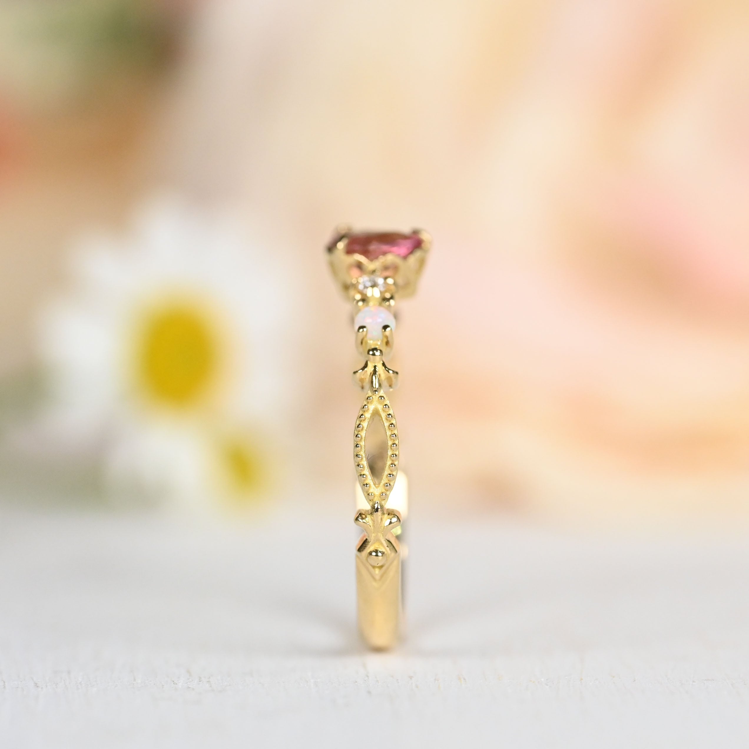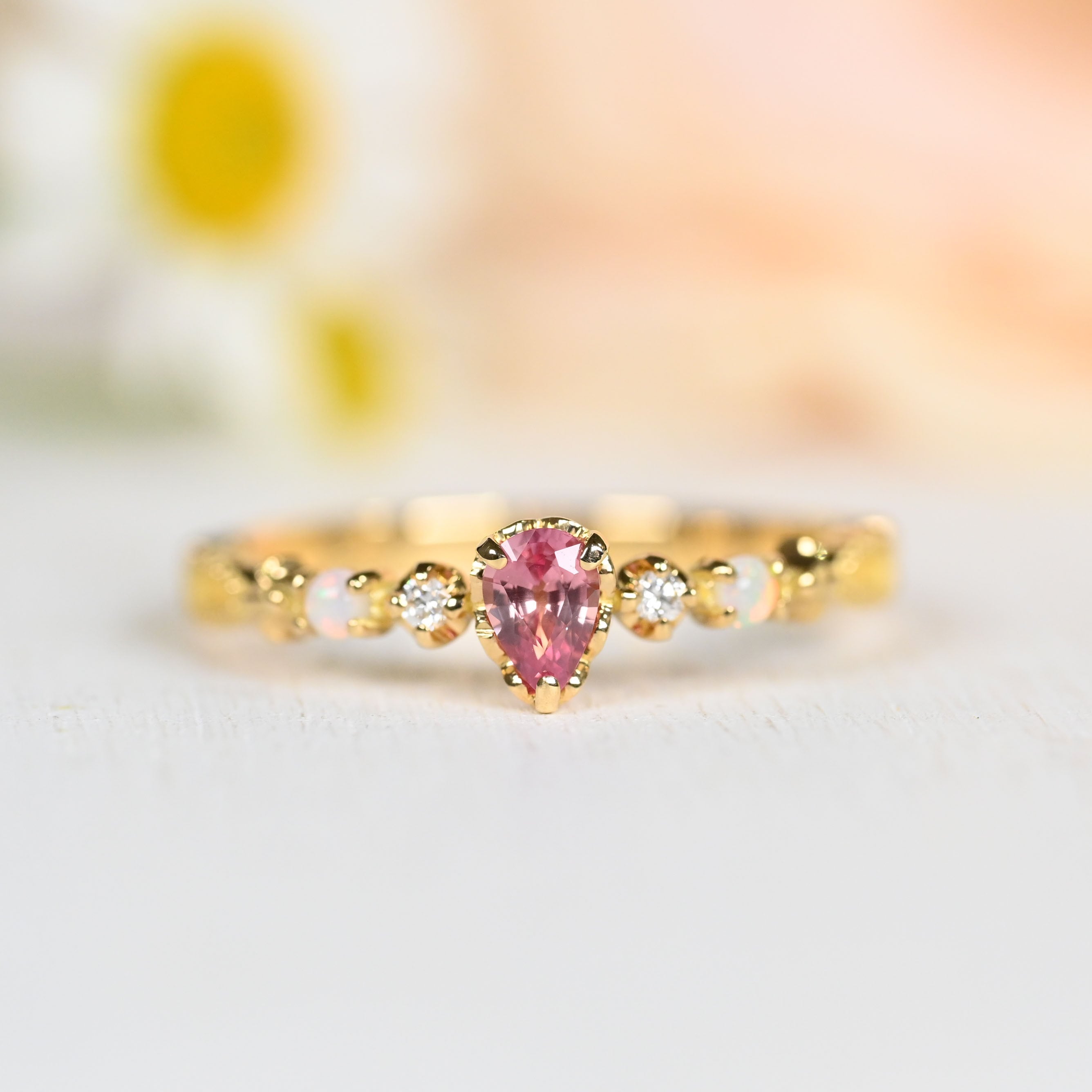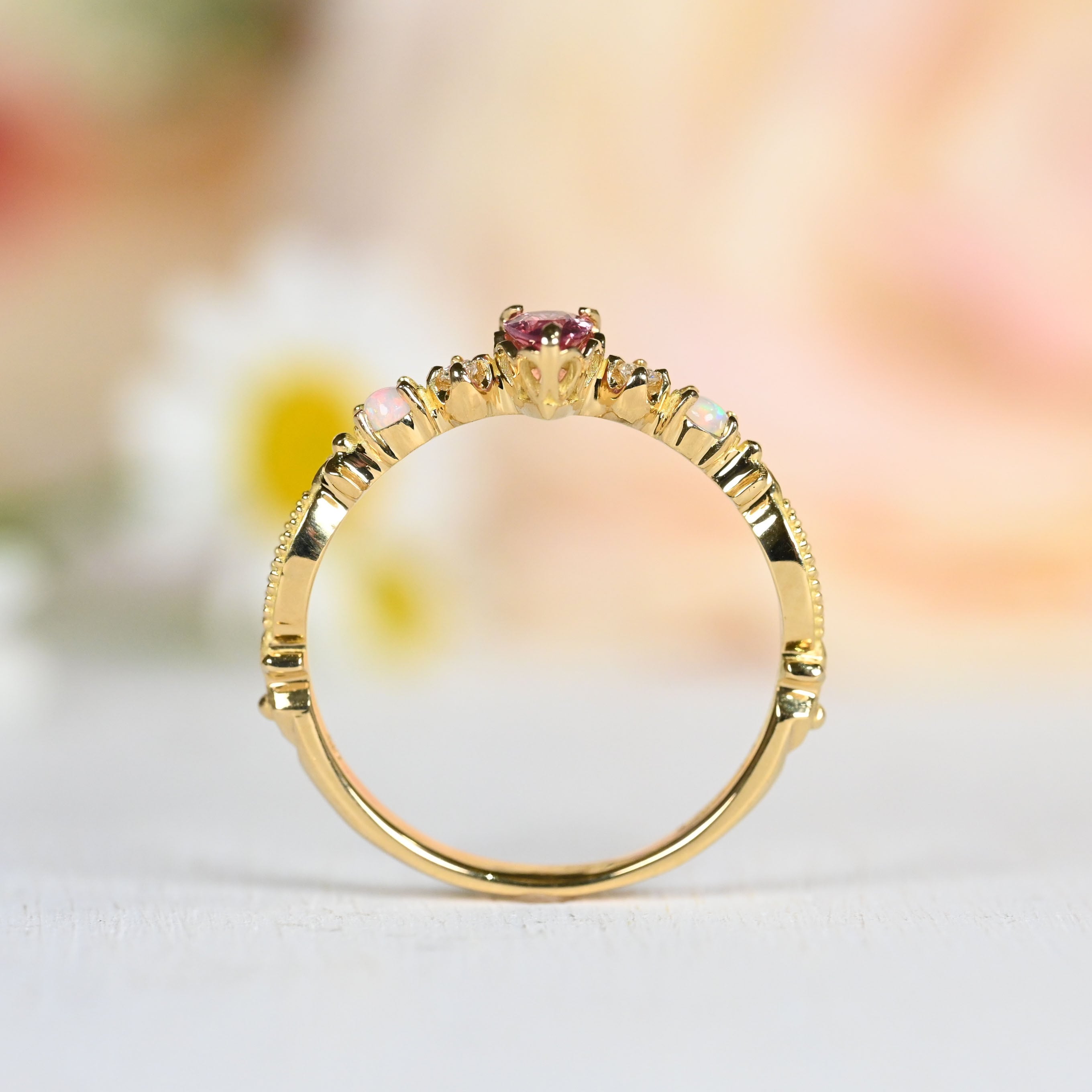 脇石にダイヤモンドとオパールを留めたリングとの組み合わせも素敵です