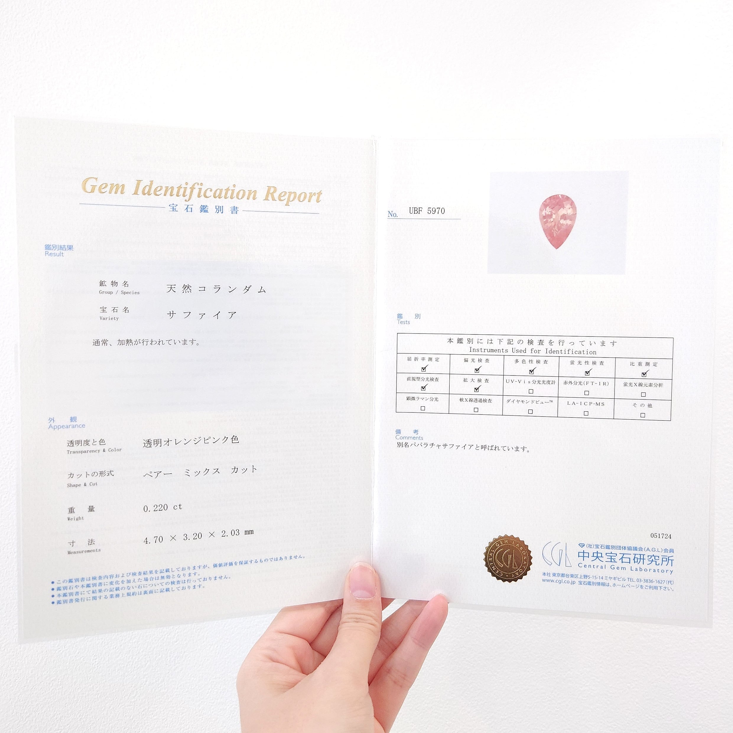 ☆お石:パパラチアサファイア 0.220ct(ペアシェイプカット)